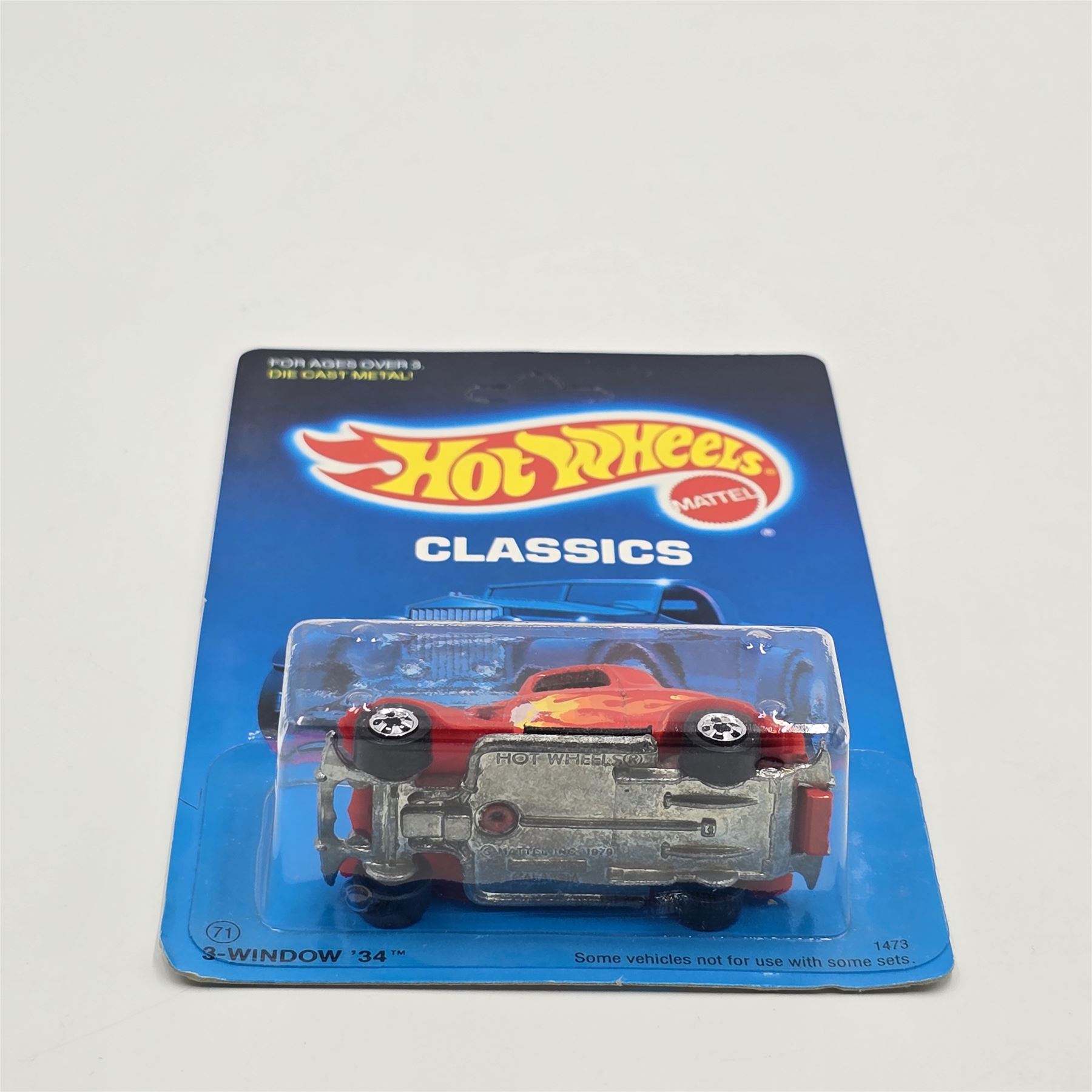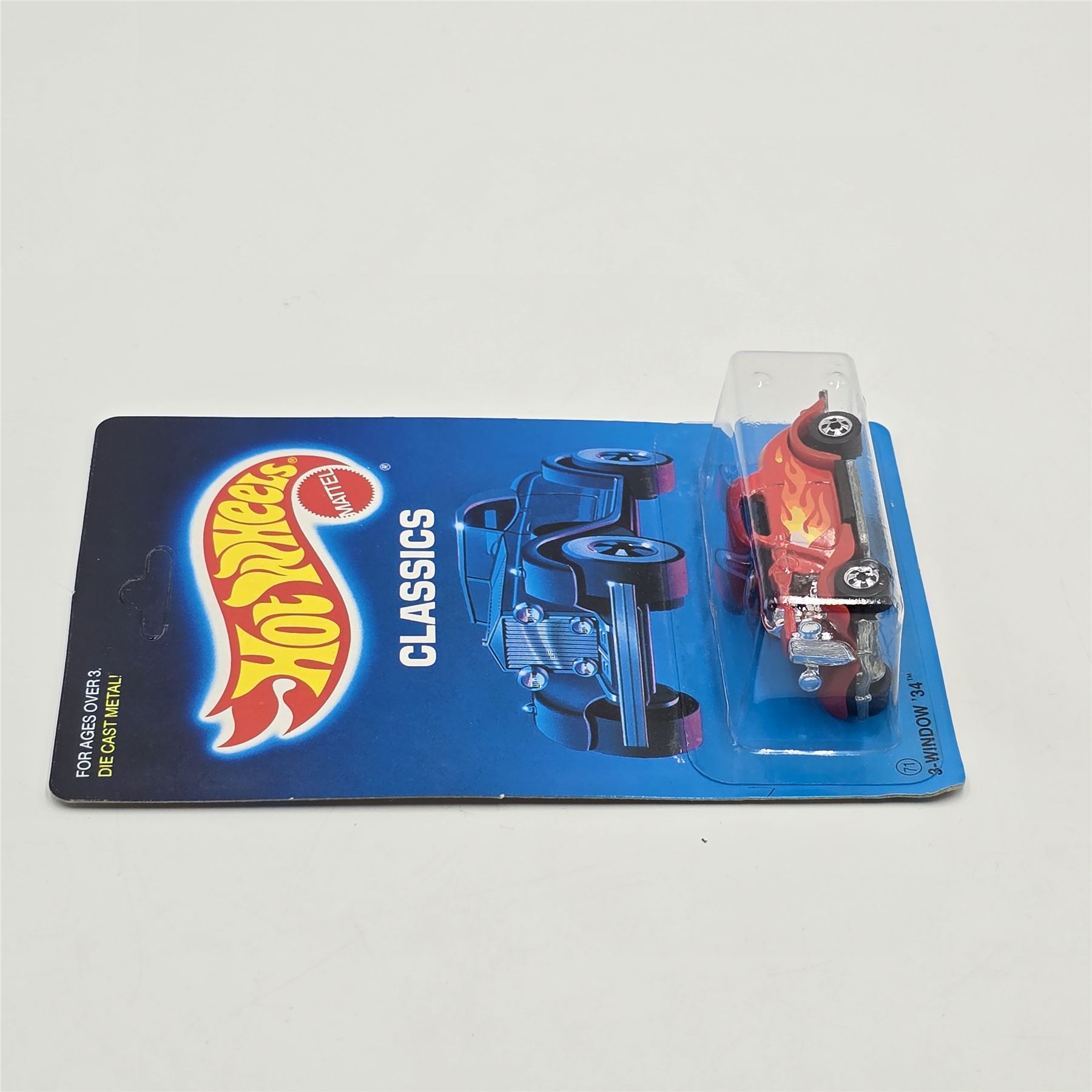 Hot Wheels red with flames 3 Window 34 on unpunched Classics card