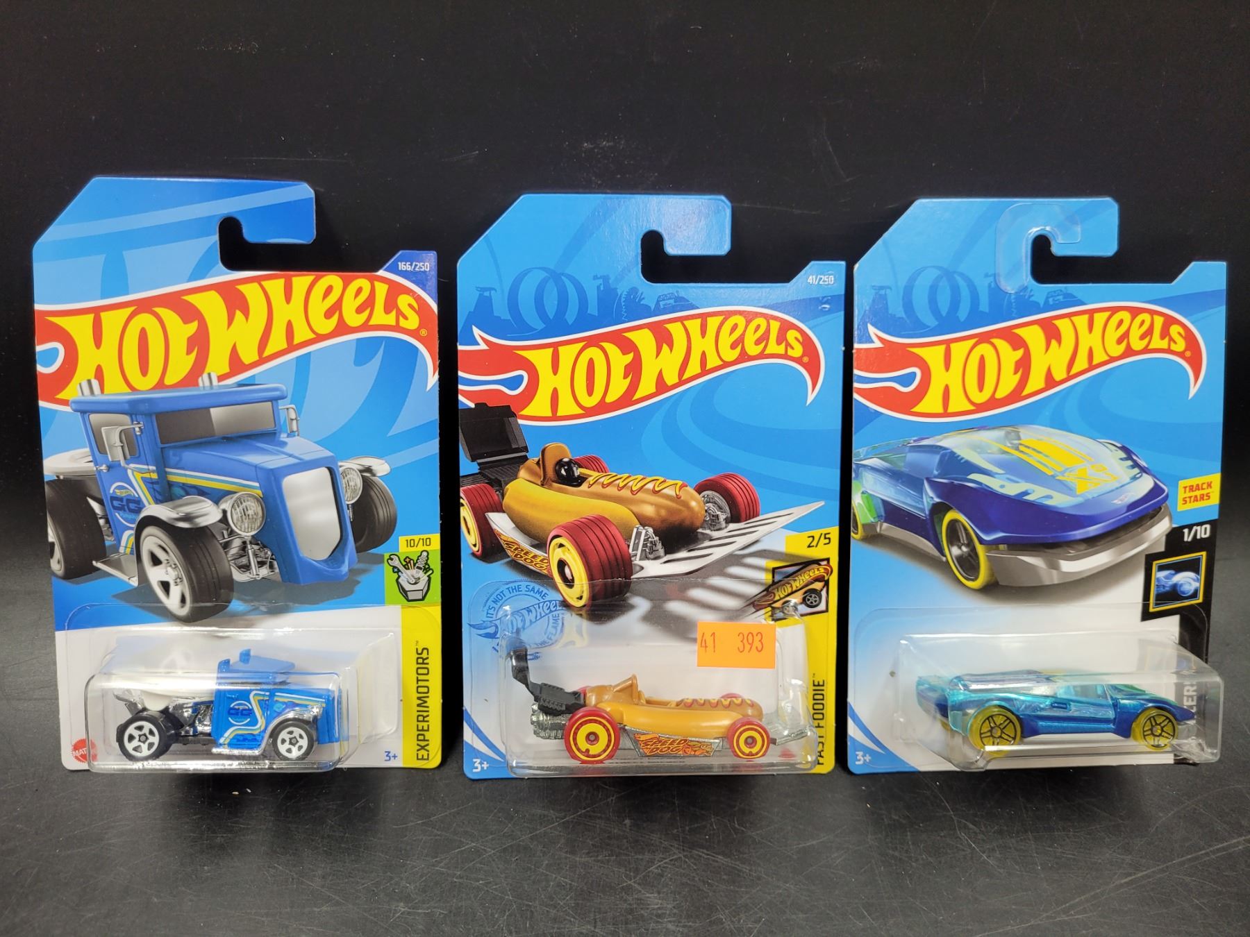 Hot Wheels Experimotors Gotta Go, Fast Foodie Street Wiener, & X-Raycers El Viento