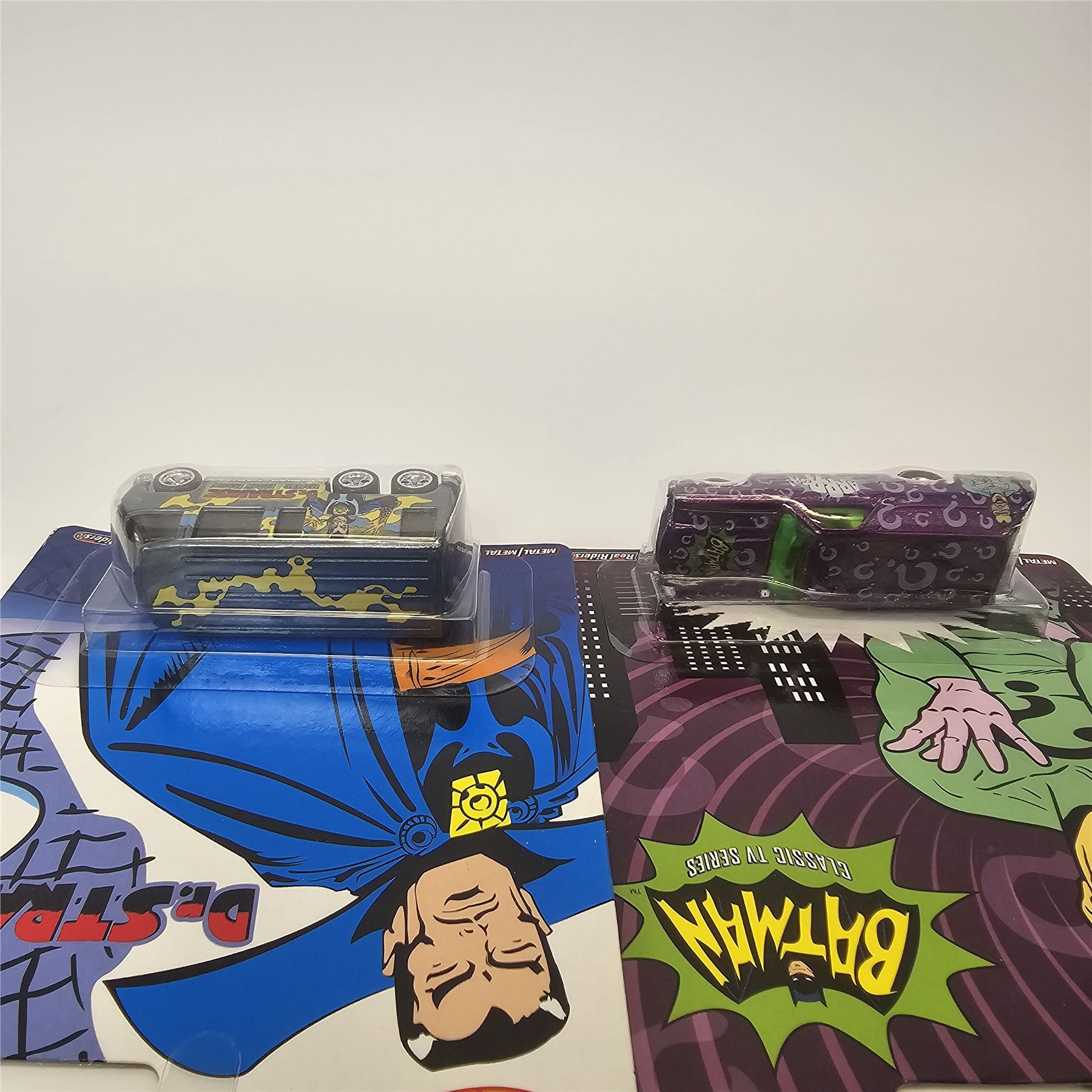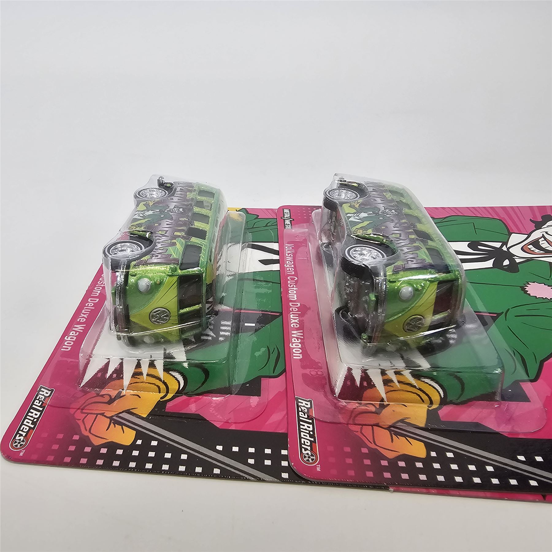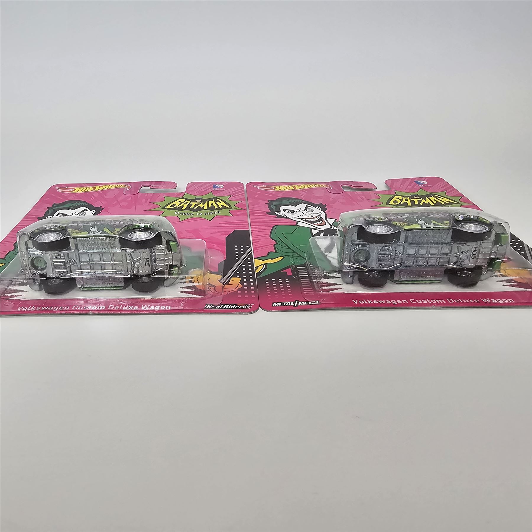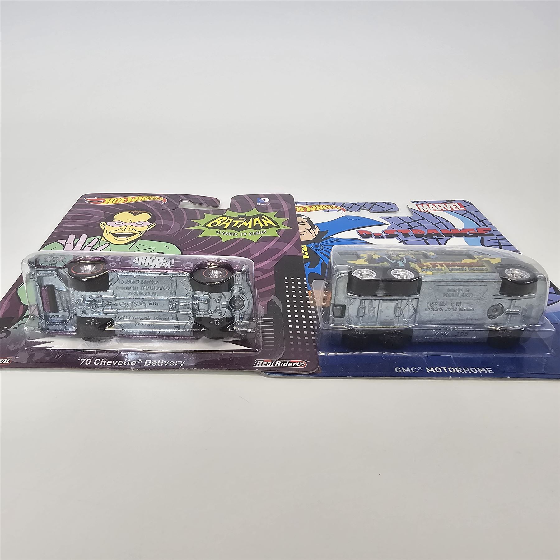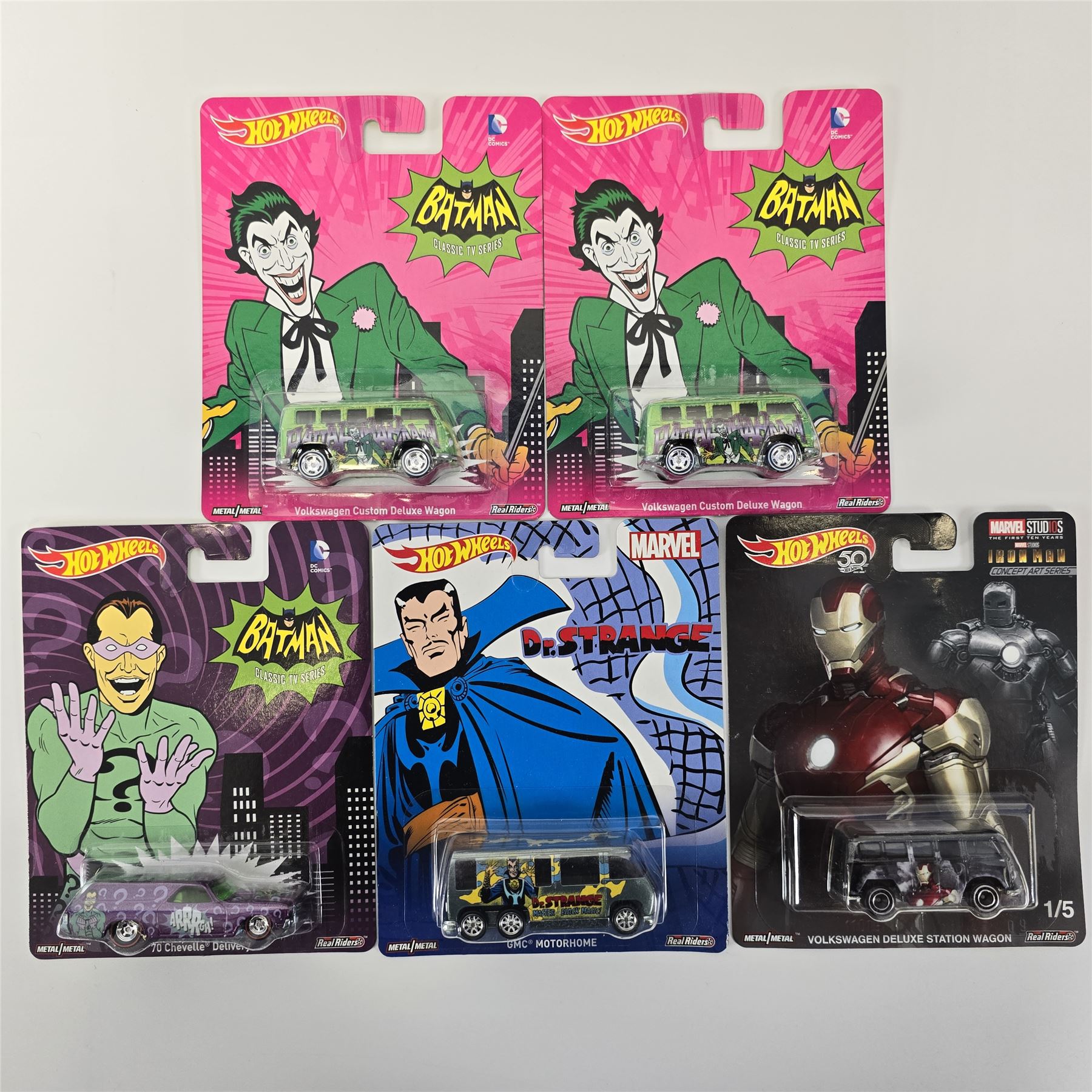 Hot Wheels Entertainment lot of 5 including, (2) Batman Joker Volkswagen Custom Deluxe Wagons, Batman Riddler '70 Chevelle Delivery, Dr. Strange GMC Motorhome and Iron Man Volkswagen Deluxe Station Wagon