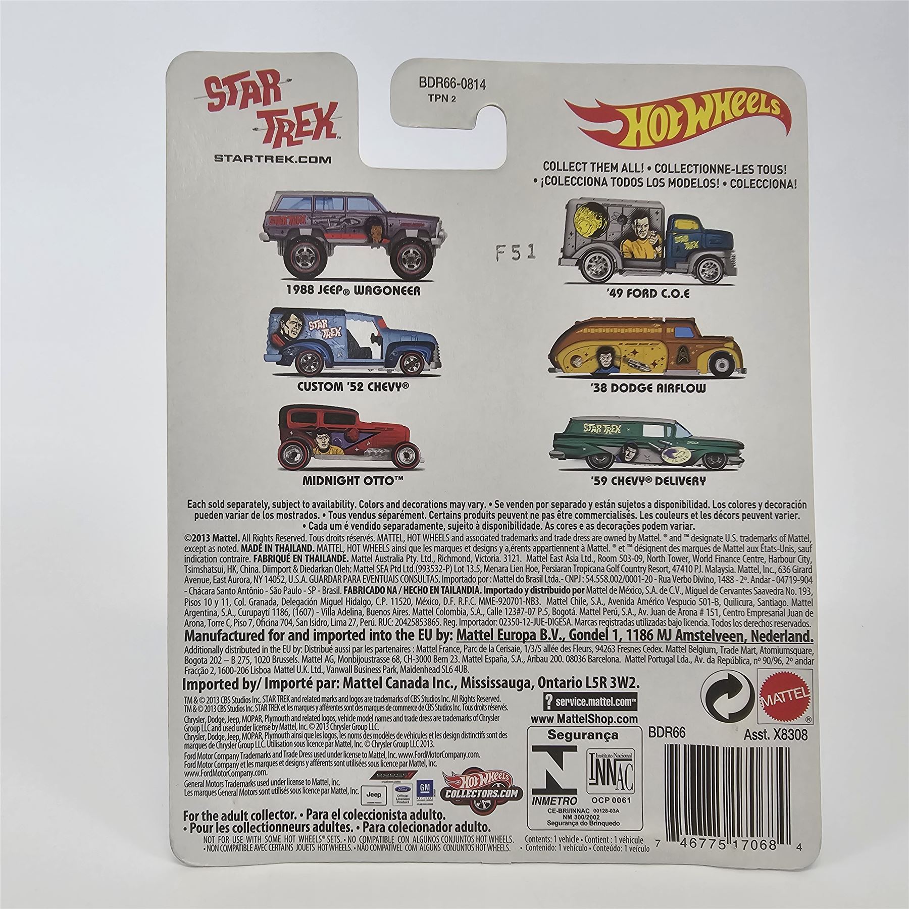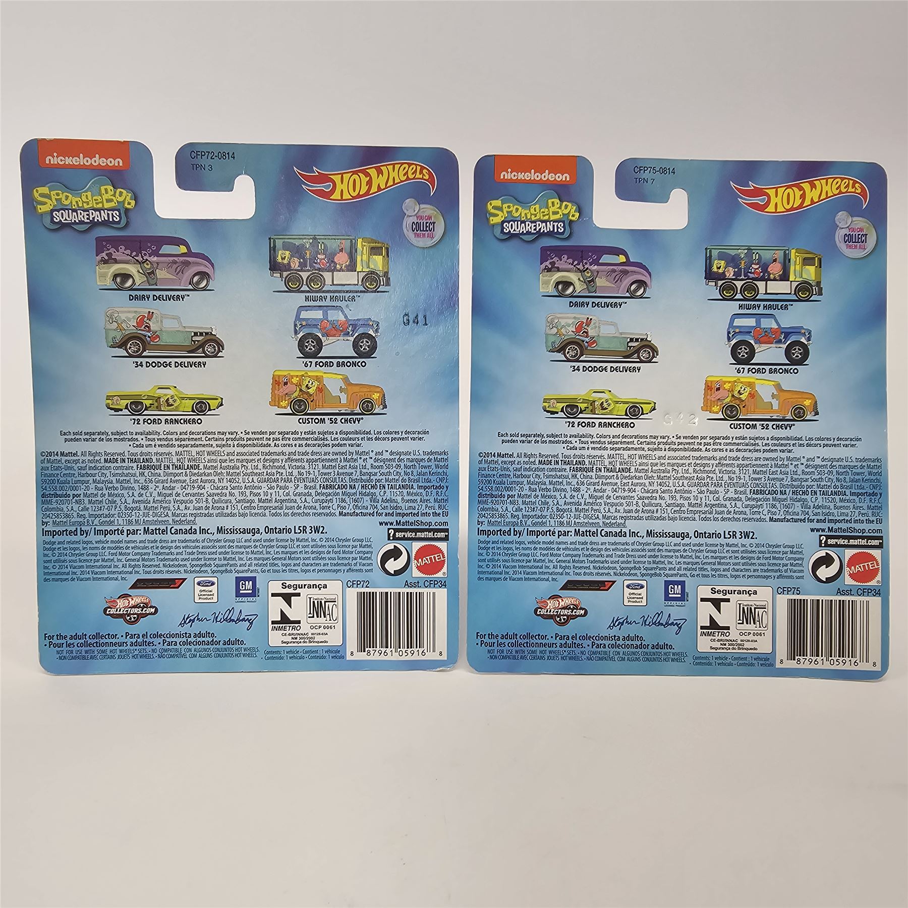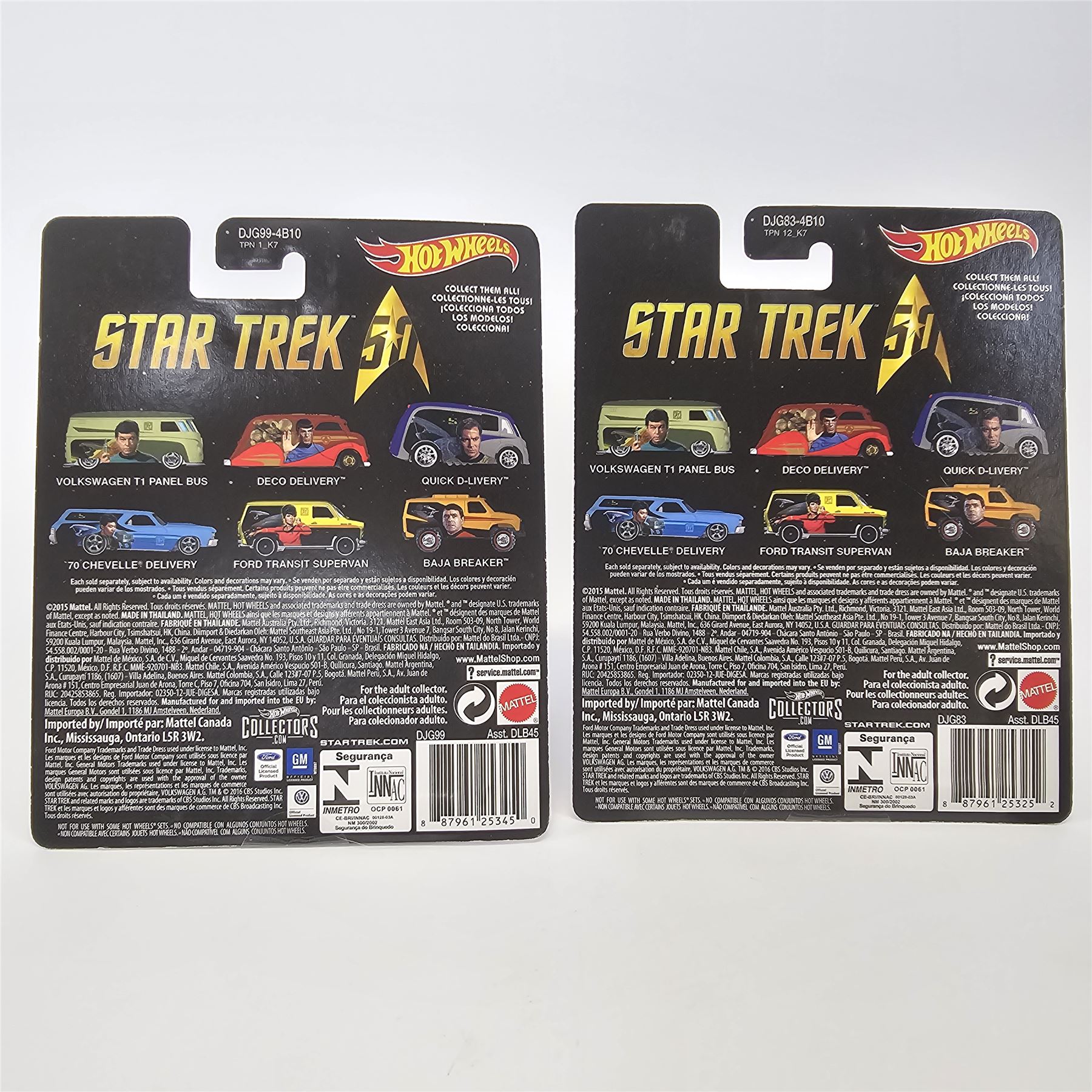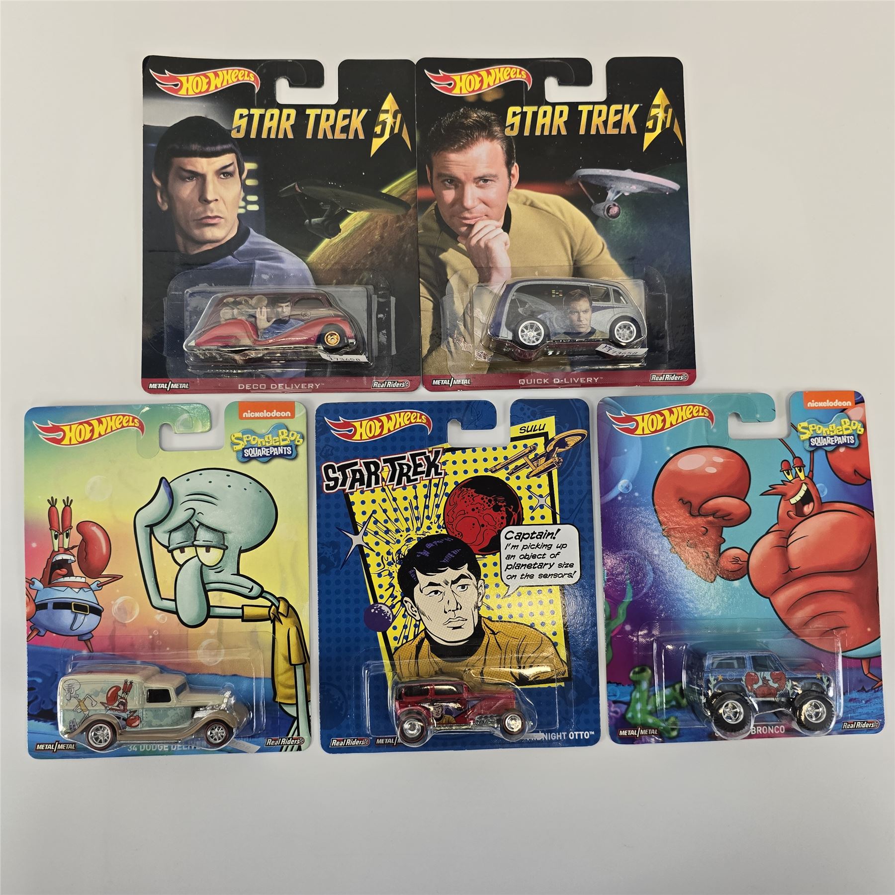 Hot Wheels Entertainment lot of 5 cars including, (3) Star Trek - Midnight Otto, Deco Delivery and Quick D-Livery, (2) Sponge Bob - Dodge Delivery and Ford Bronco