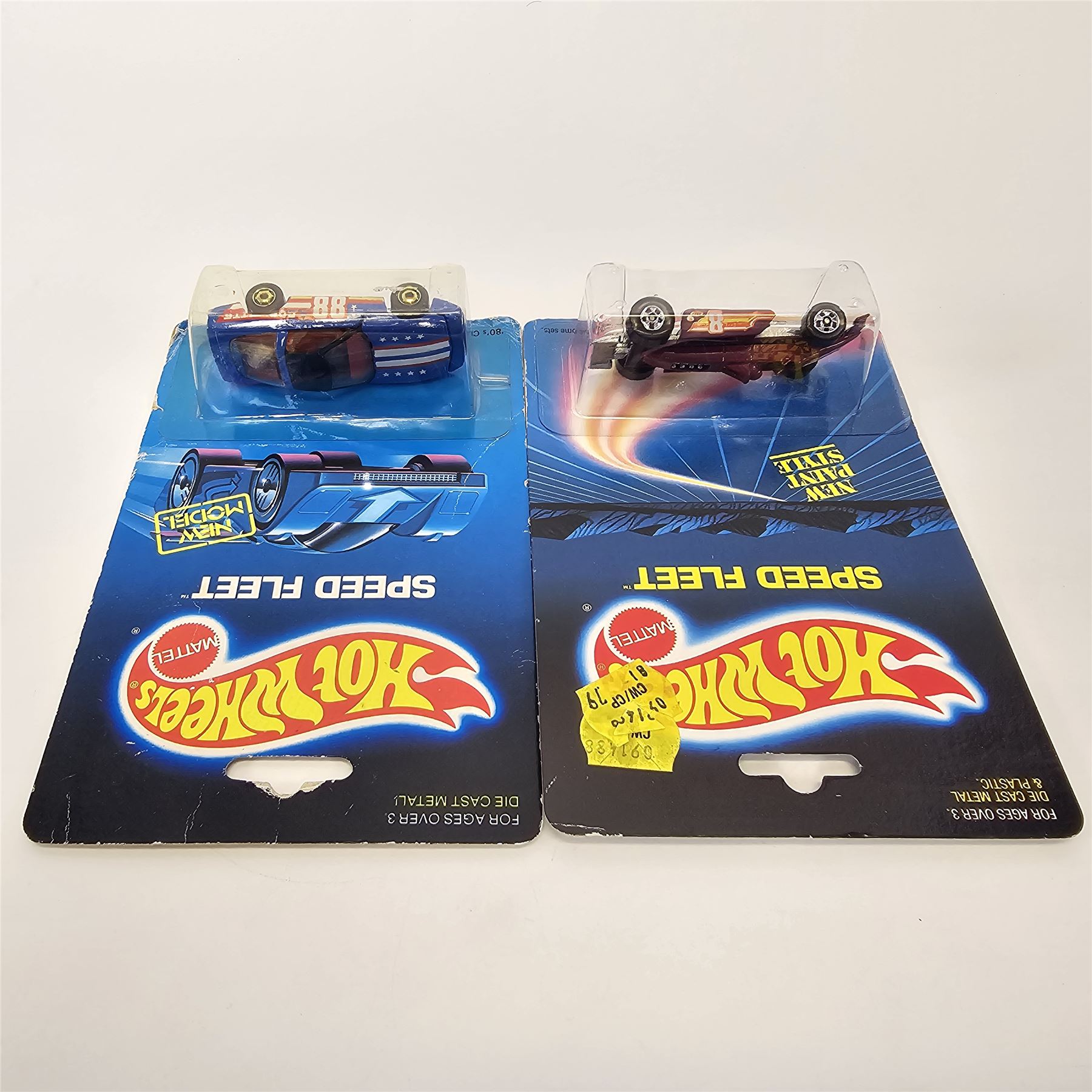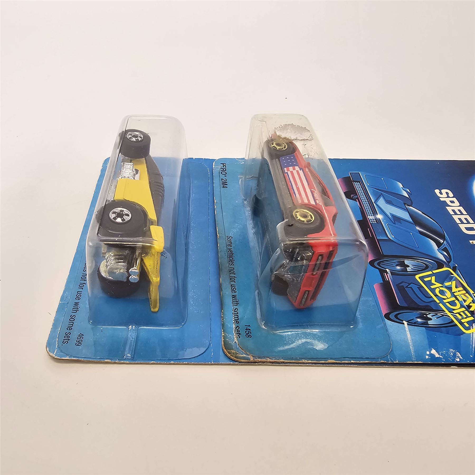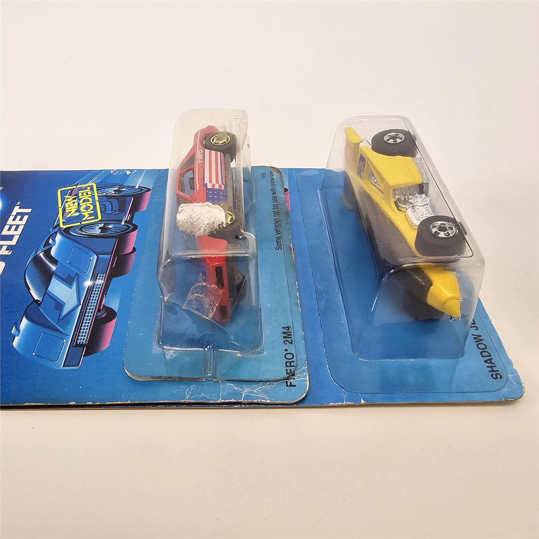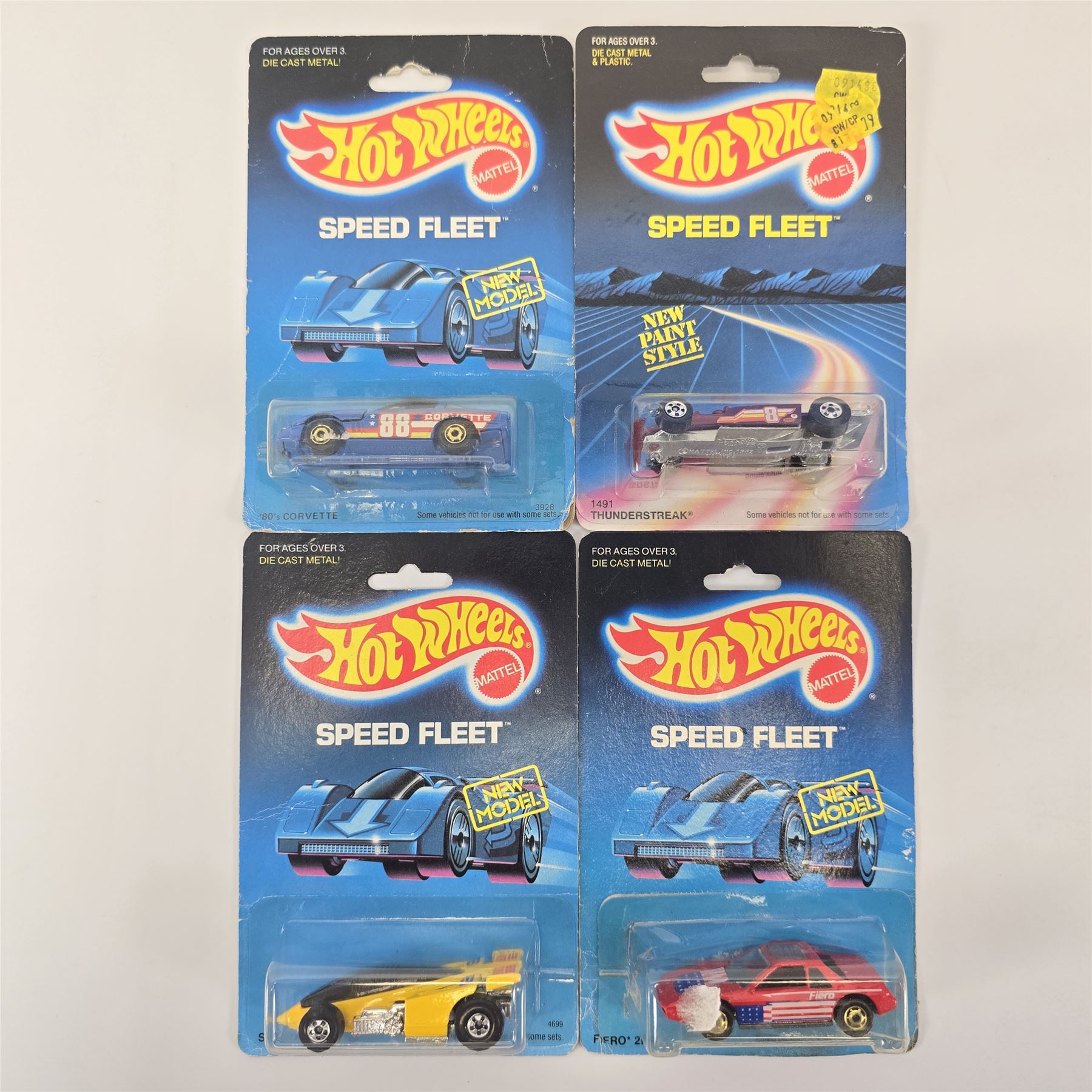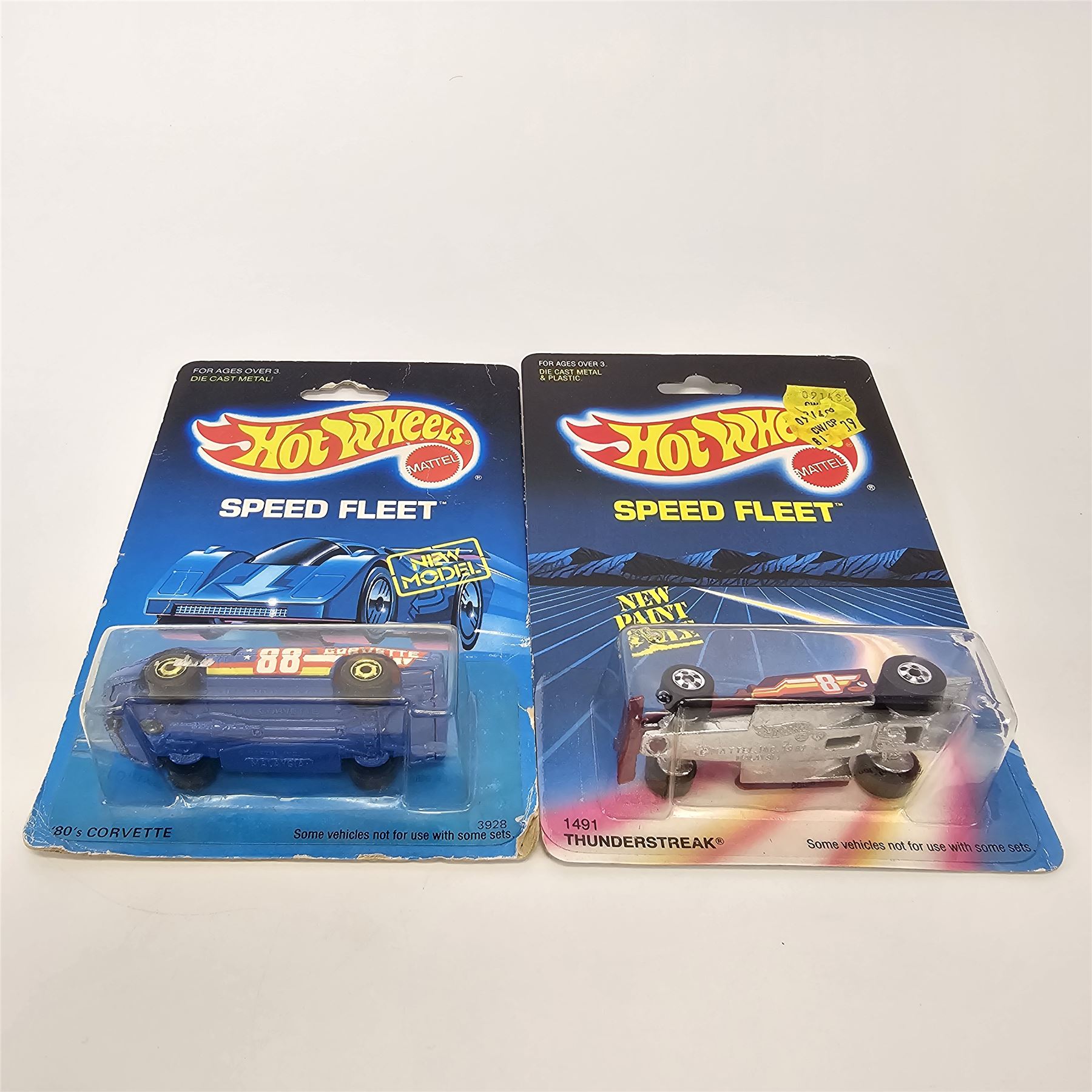 Hot Wheels Blackwall Speed Fleet lot of 4 cars including, Thunderstreak on Rainbow Road card, Fiero, Shadow Jet and 80's Corvette