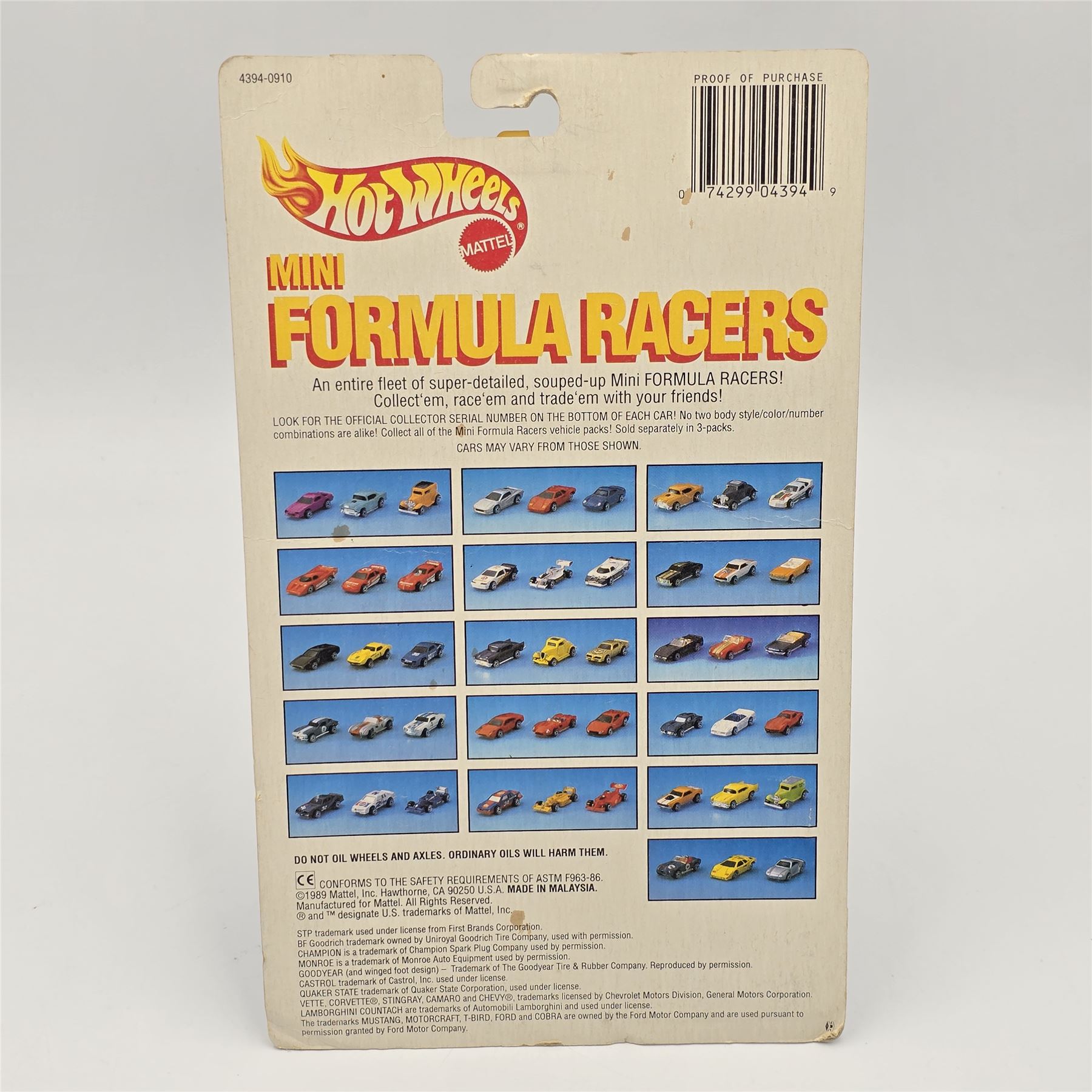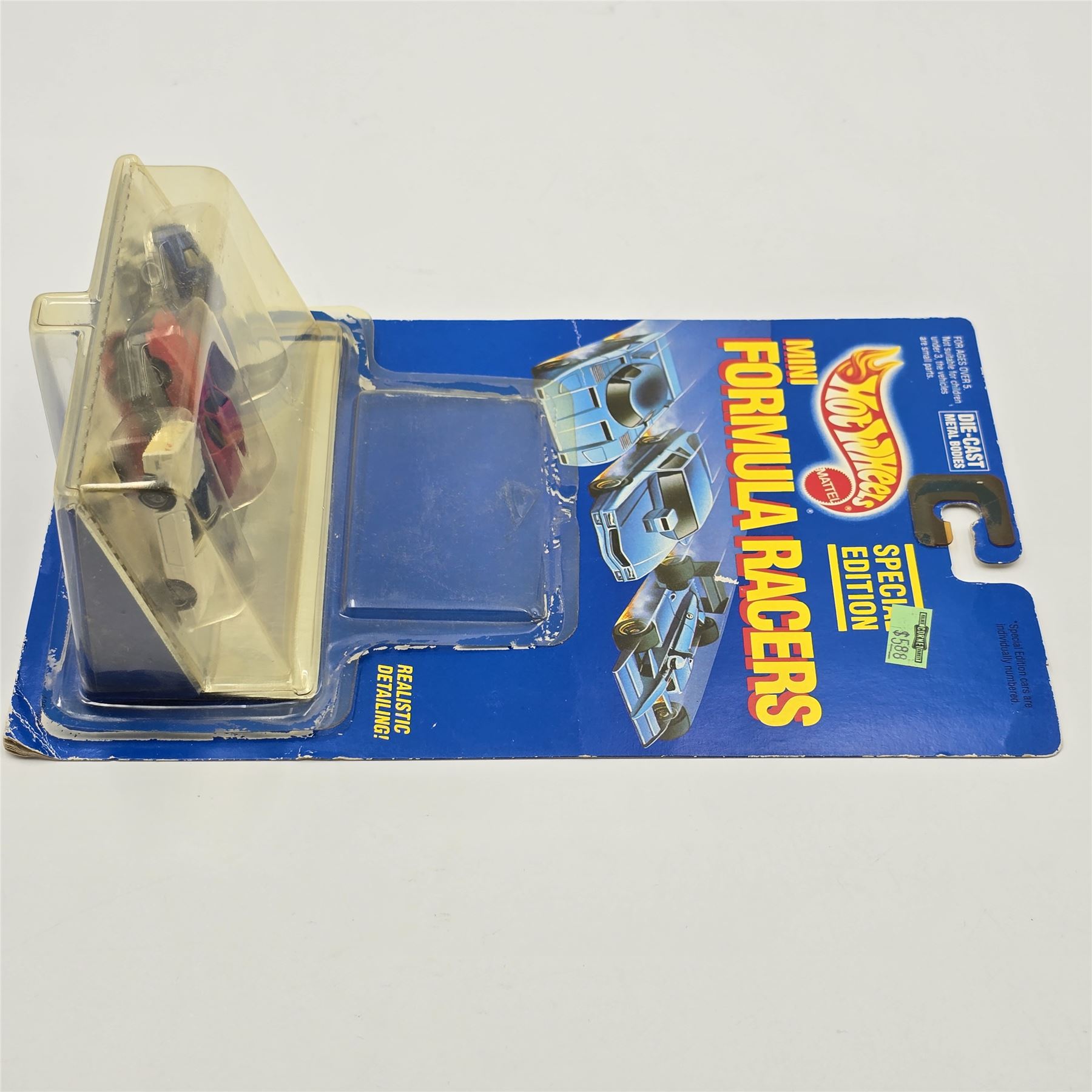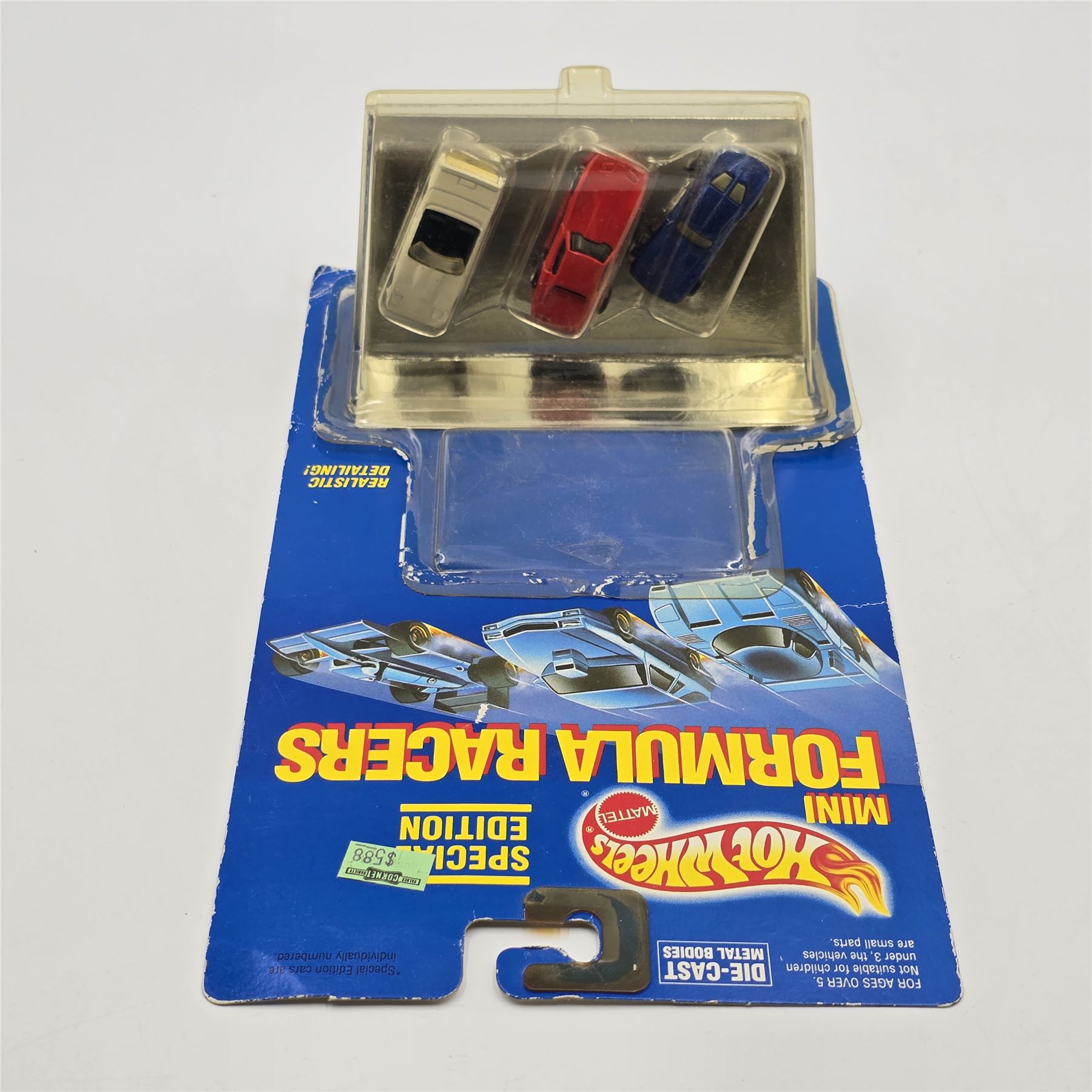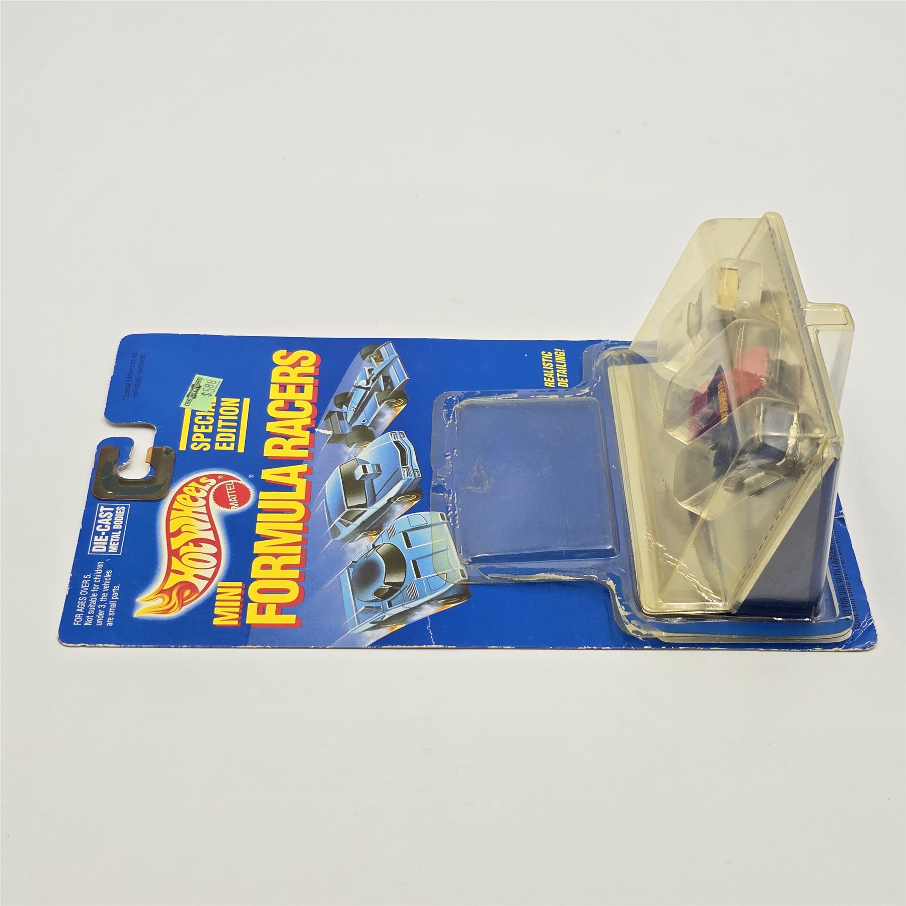 Blister: Appears lightly yellowed, it has cracked and pulled away from the card allowing cars to be removed