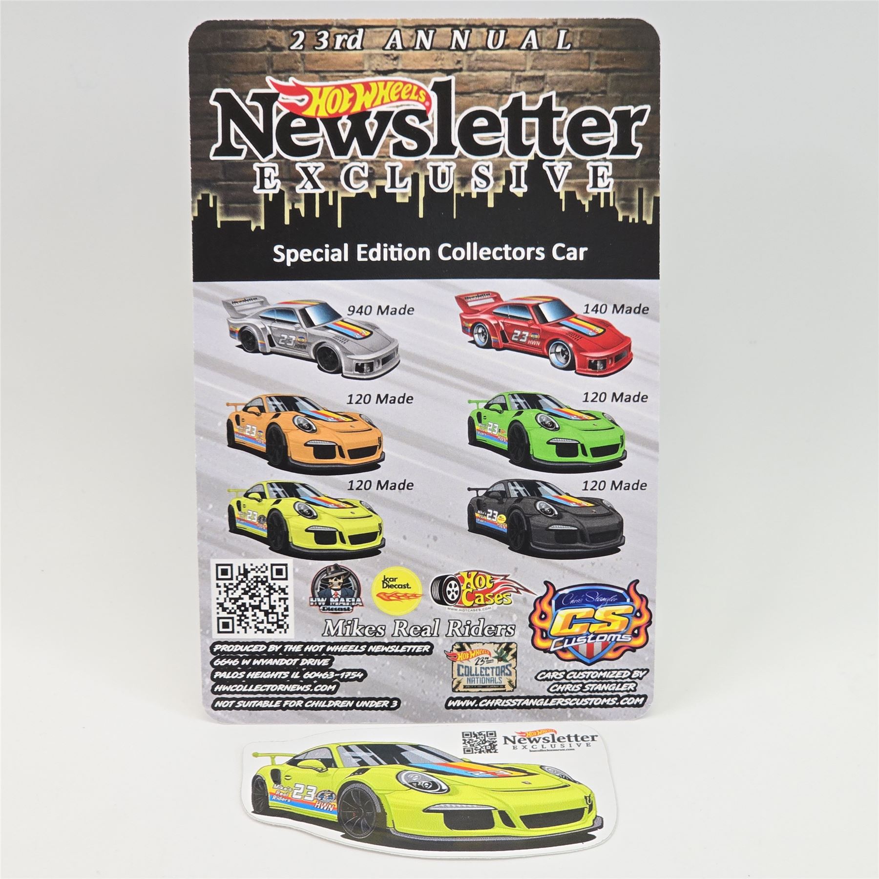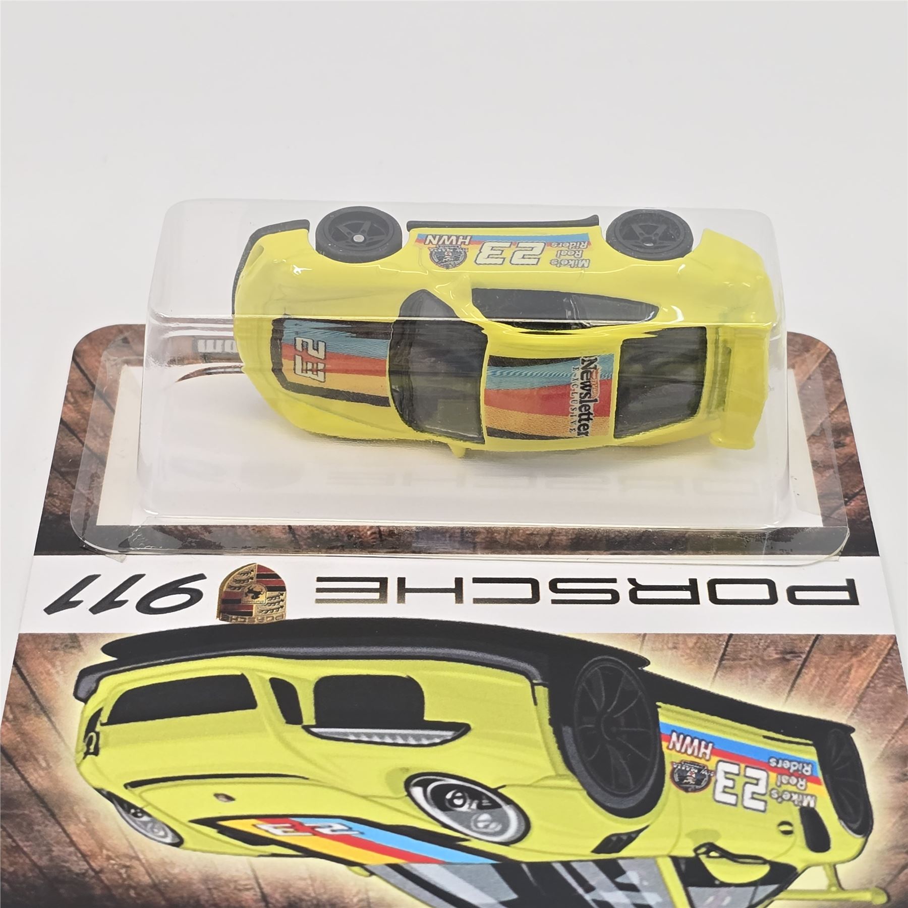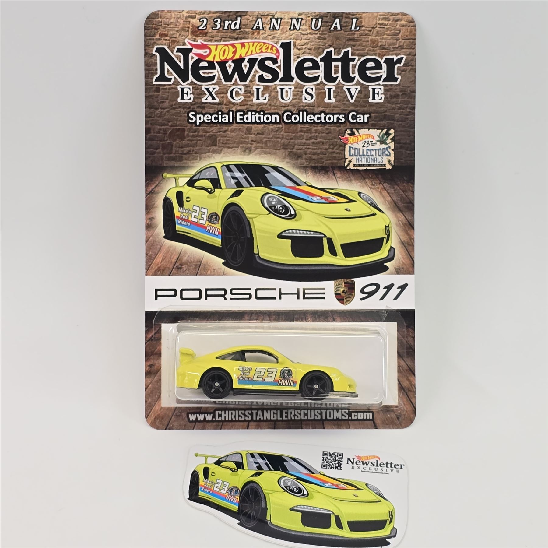 Hot Wheels 23rd Collectors Nationals Yellow Newsletter Porsche 911 - includes matching decal - Chris Stangler Custom