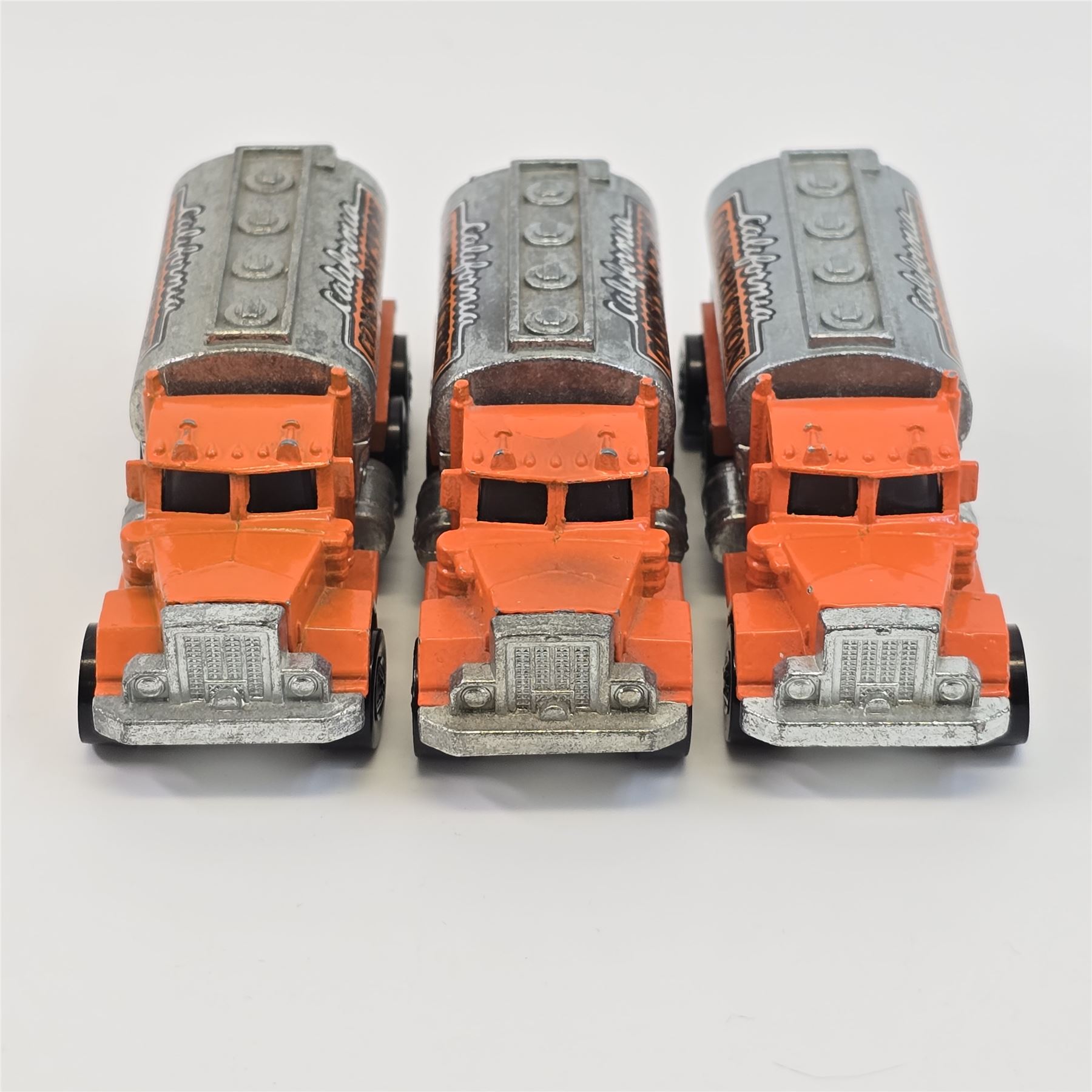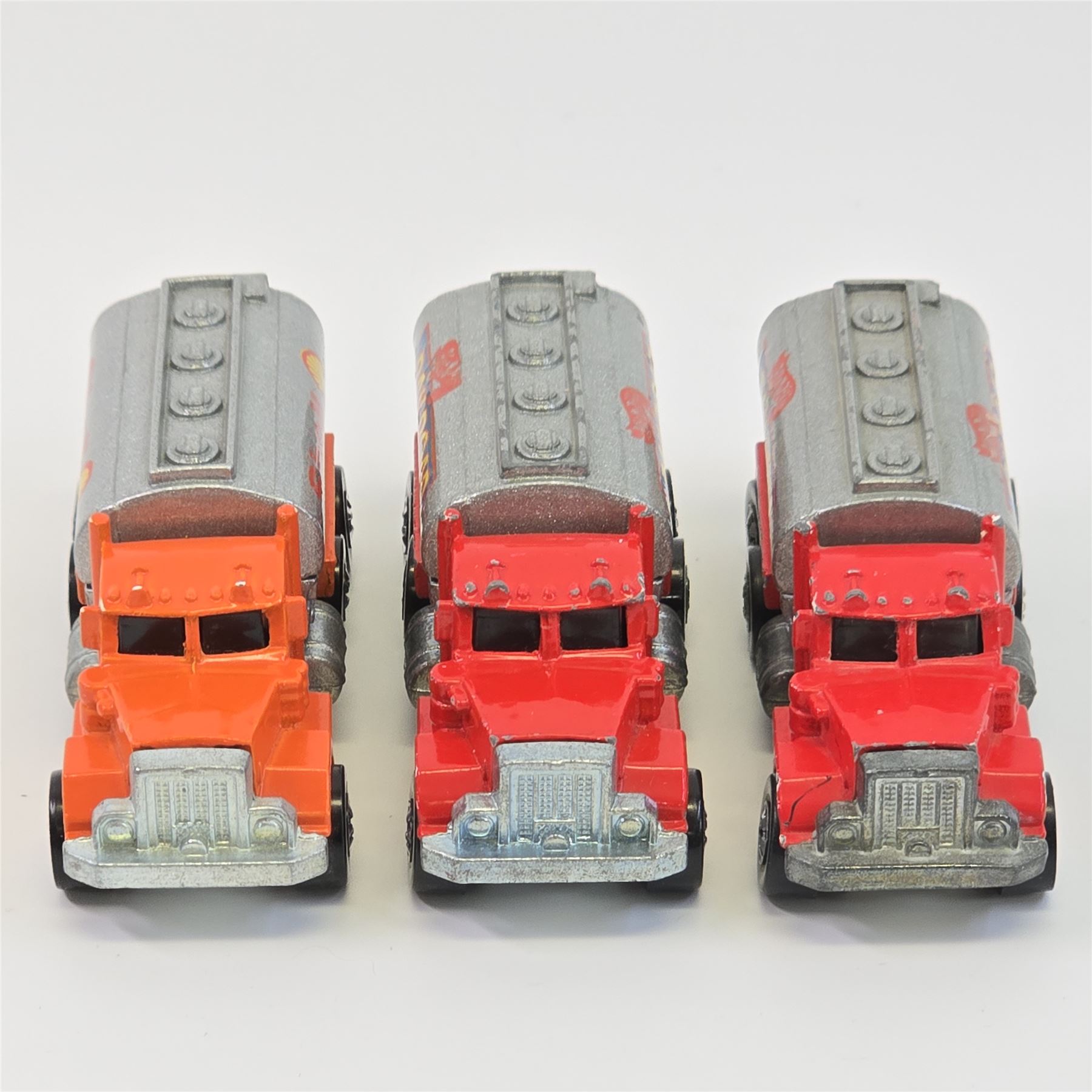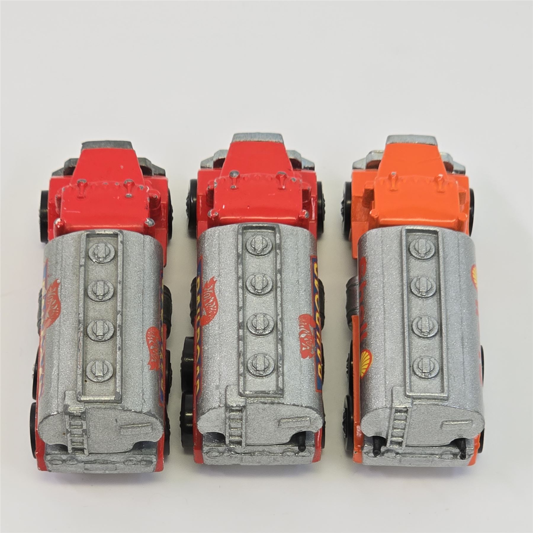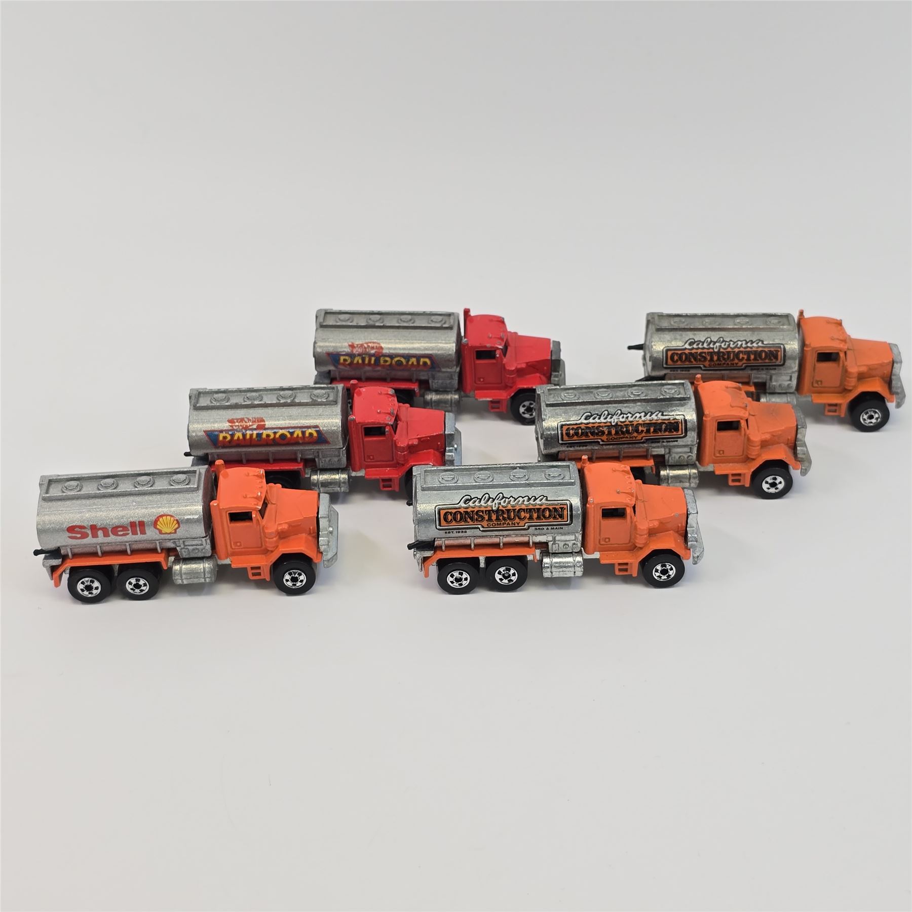 Hot Wheels Peterbilt lot of 6 including (2) red Railroad tankers (3) orange Construction tanker (1) orange Shell tanker