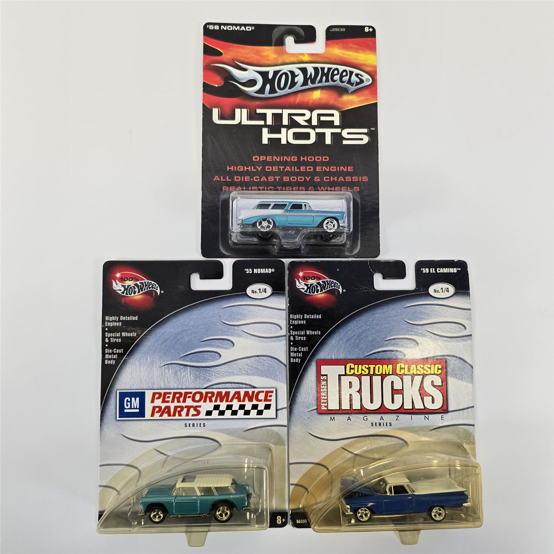 Hot Wheels premium lot of 3 including, Ultra Hots 55 Chevy Nomad, 100% GM Performance Parts 55 Nomad and Custom Classics Trucks '59 El Camino