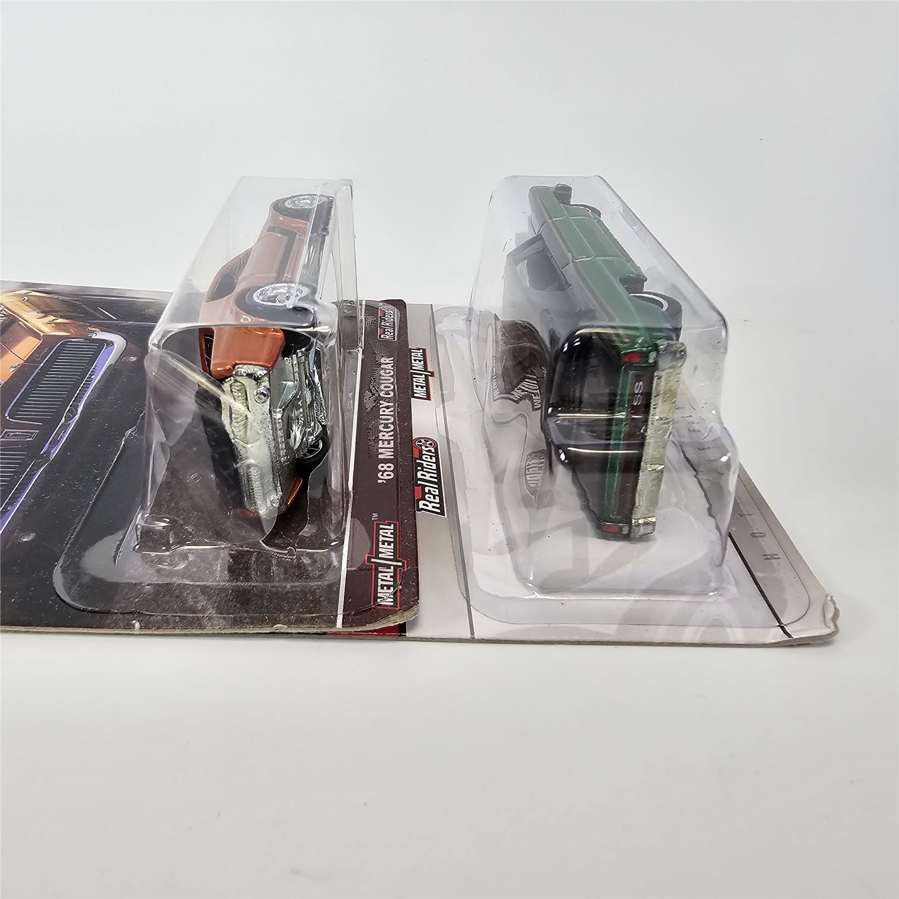 Blister/Bubbles: clear, crack free and firmly attached to the card, the only exception is the HW Redliners 68 Cougar has a blown out left side as seen in the photo