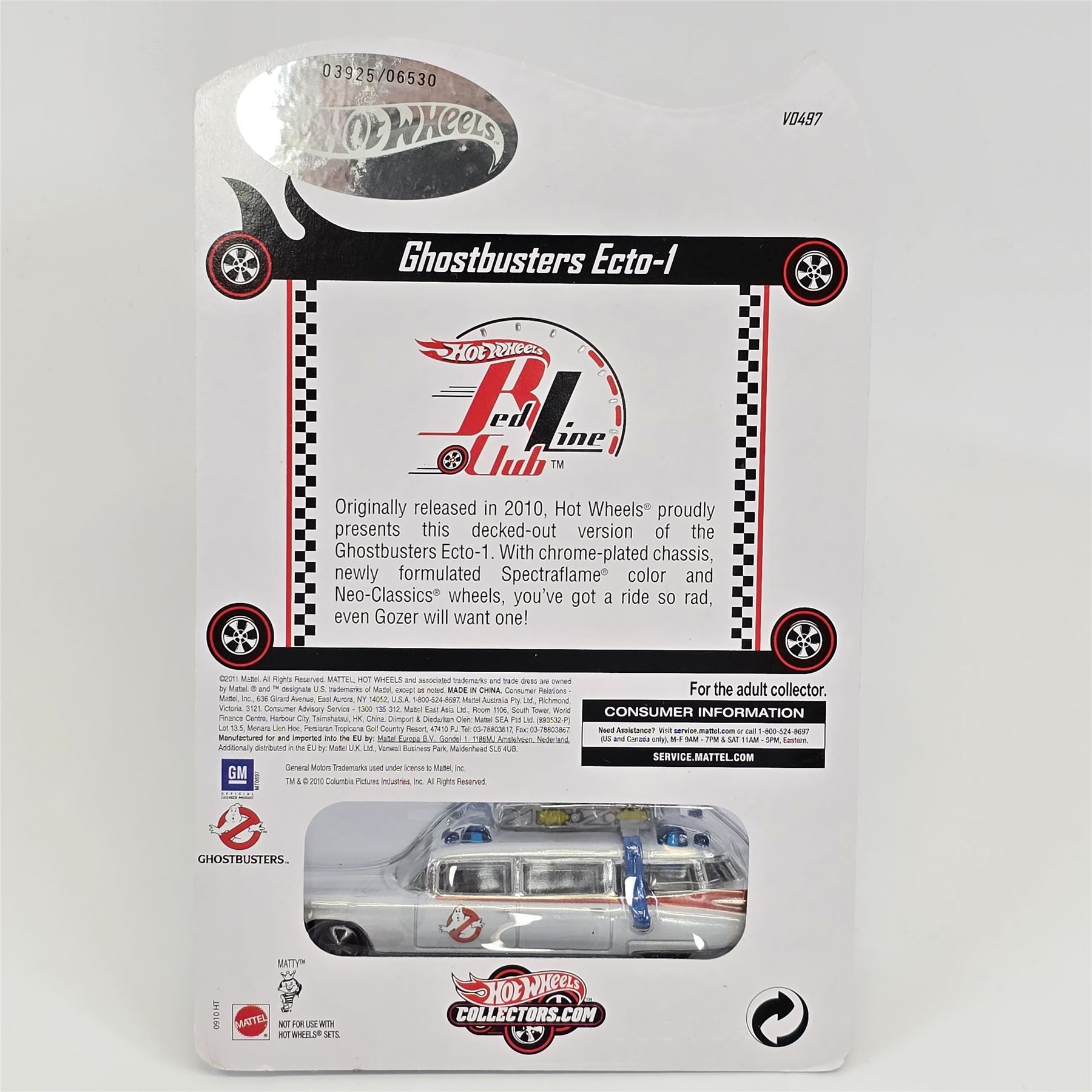 2011 Hot Wheels Red Line Club Ghostbusters Ecto-1 #03925/06530 & amp; E-Sheet