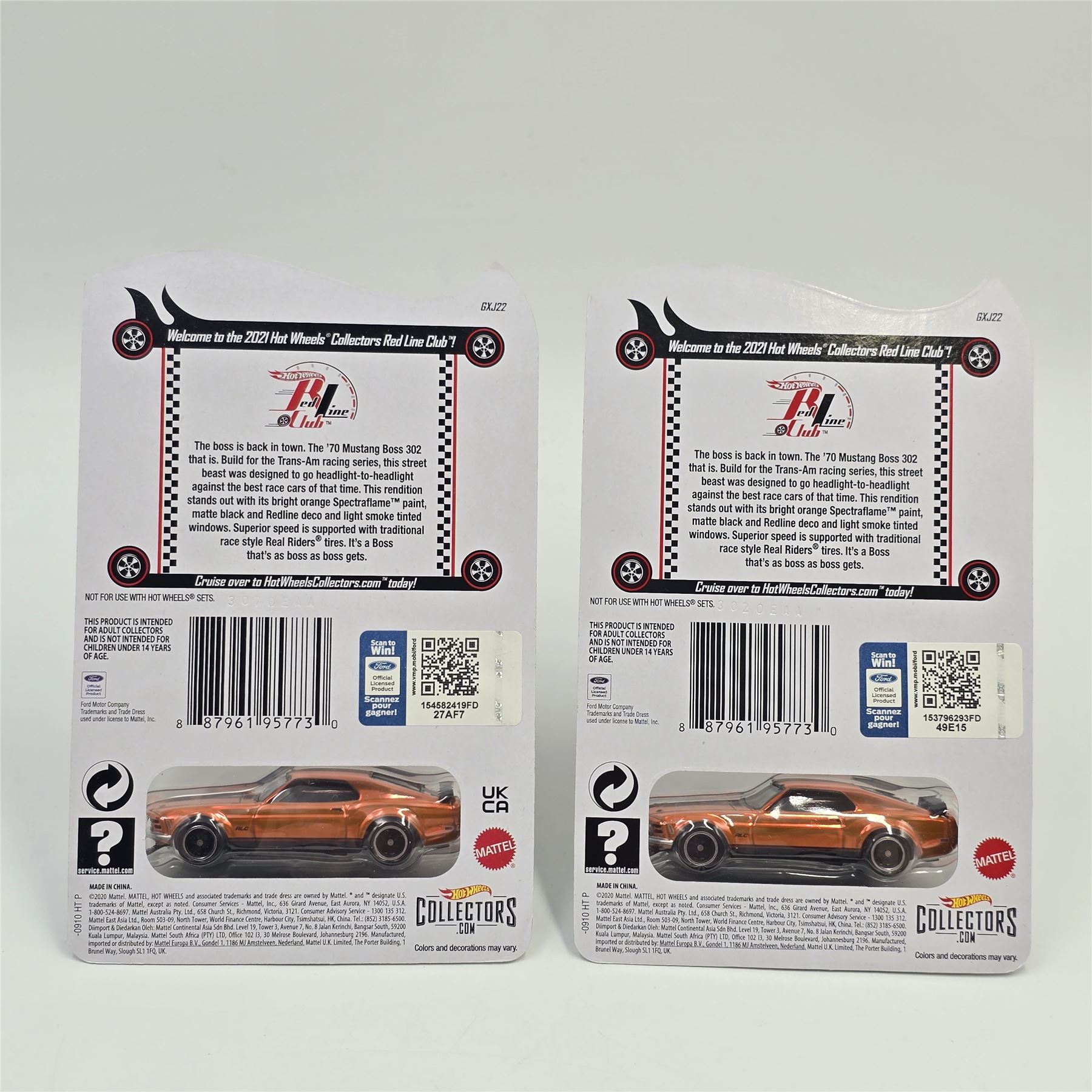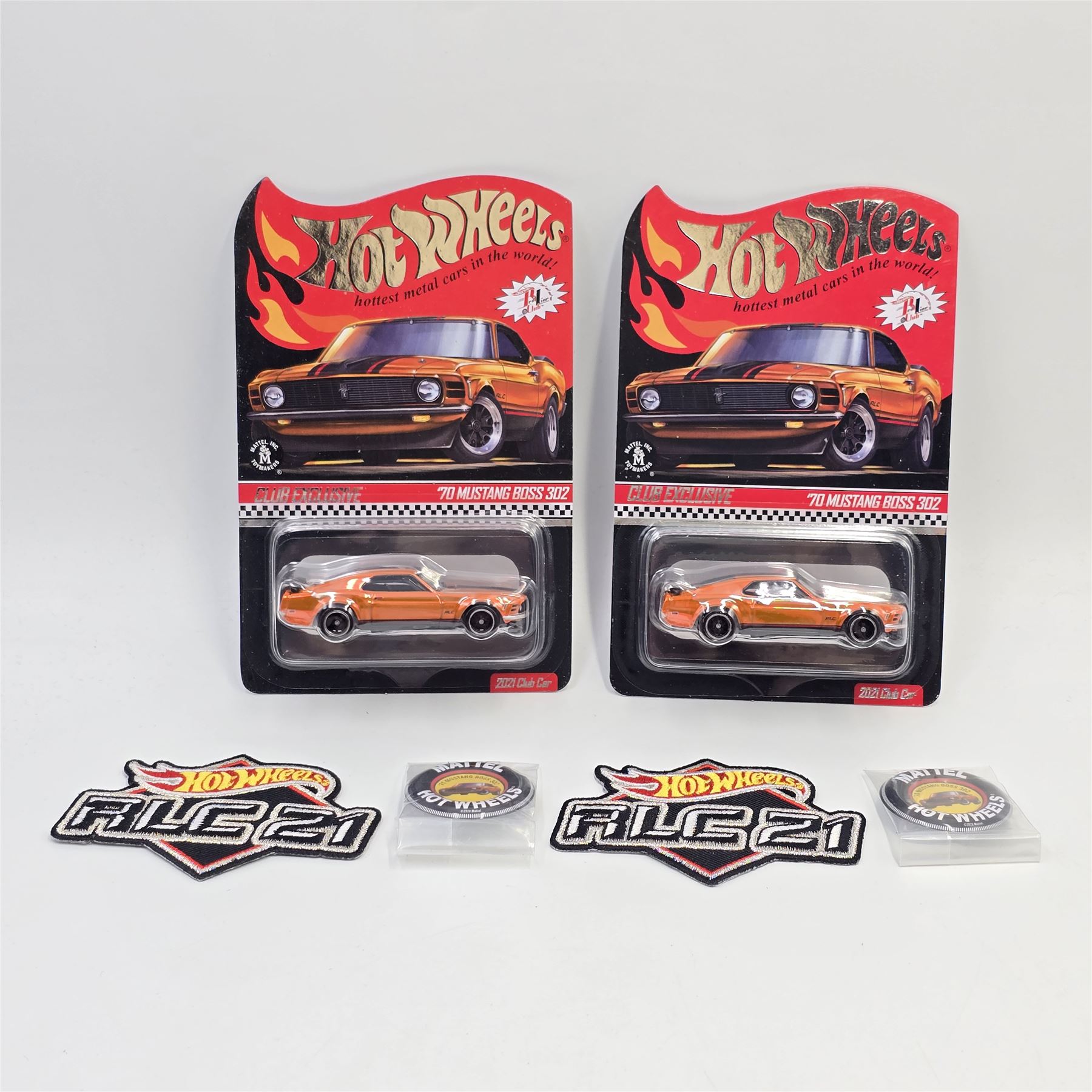 Hot Wheels RLC Club Car Orange '70 Mustang Boss 302 pair - these both include Club pins and patches as seen