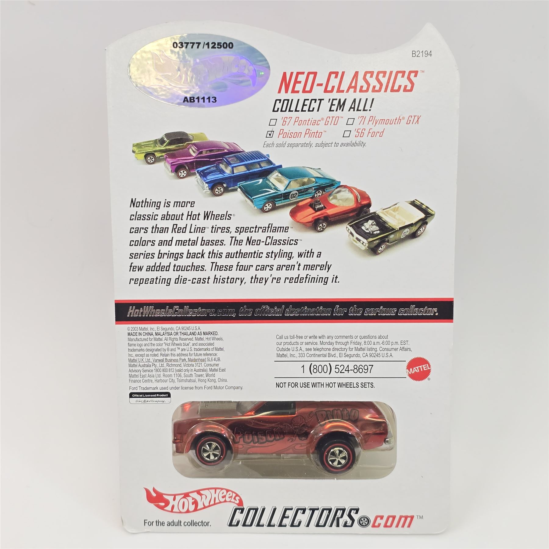Hot Wheels RLC Neo Classic Series Poison Pinto - 3777/12500 - seems to be an error?& nbsp; unchromed base