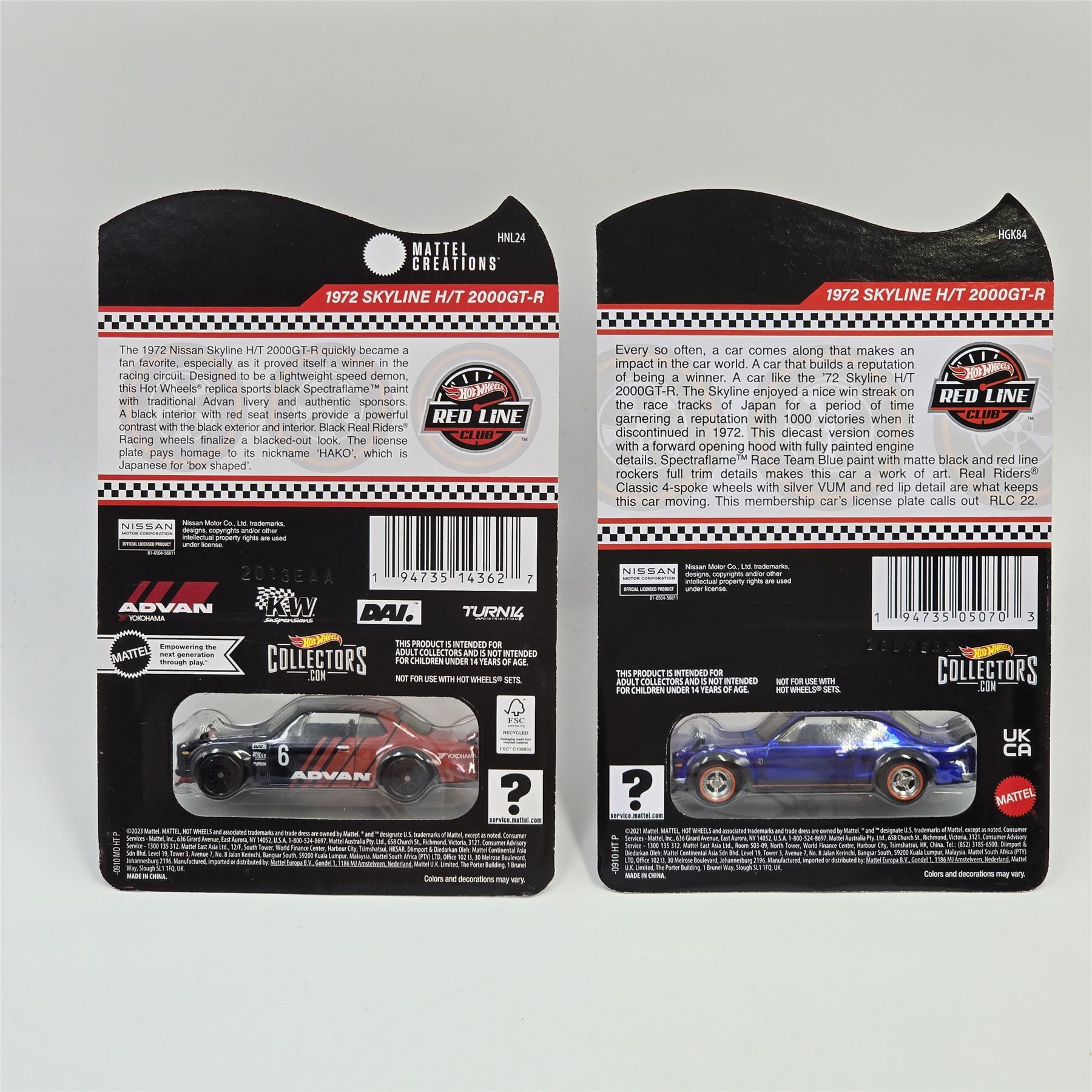 Hot Wheels Nissan Skyline H/T 2000GT-R pair - includes 2022 Club Car with patch and button and regular RLC
