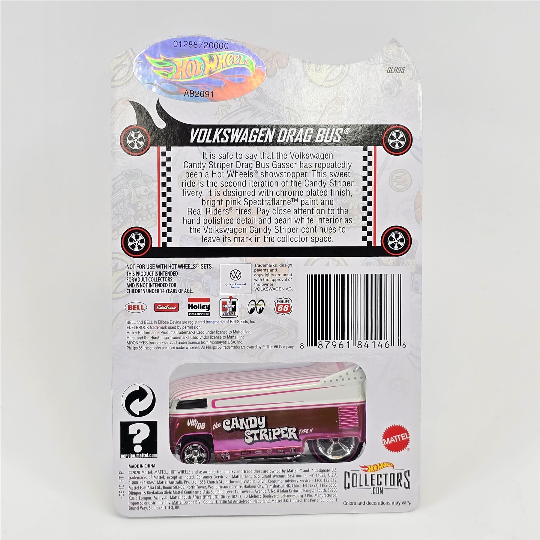 20201 Hot Wheels Red Line Club Exclusive Volkswagen Drag Bus, Spectraflame Pink & quot;Candy Striper& quot; #01288/20000