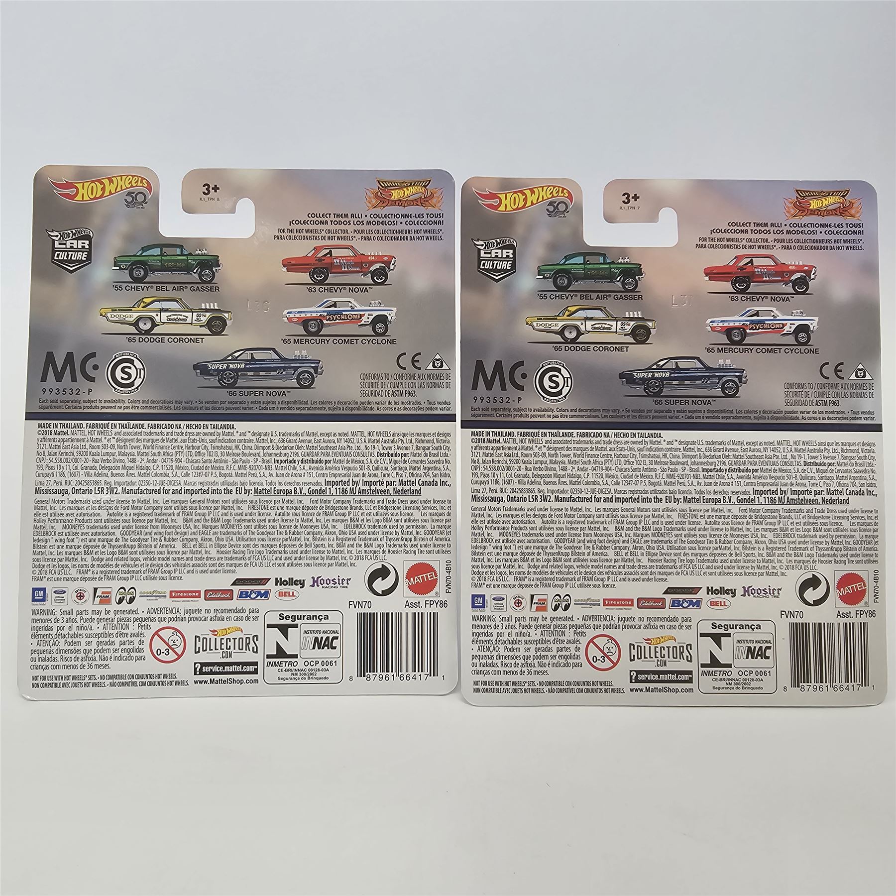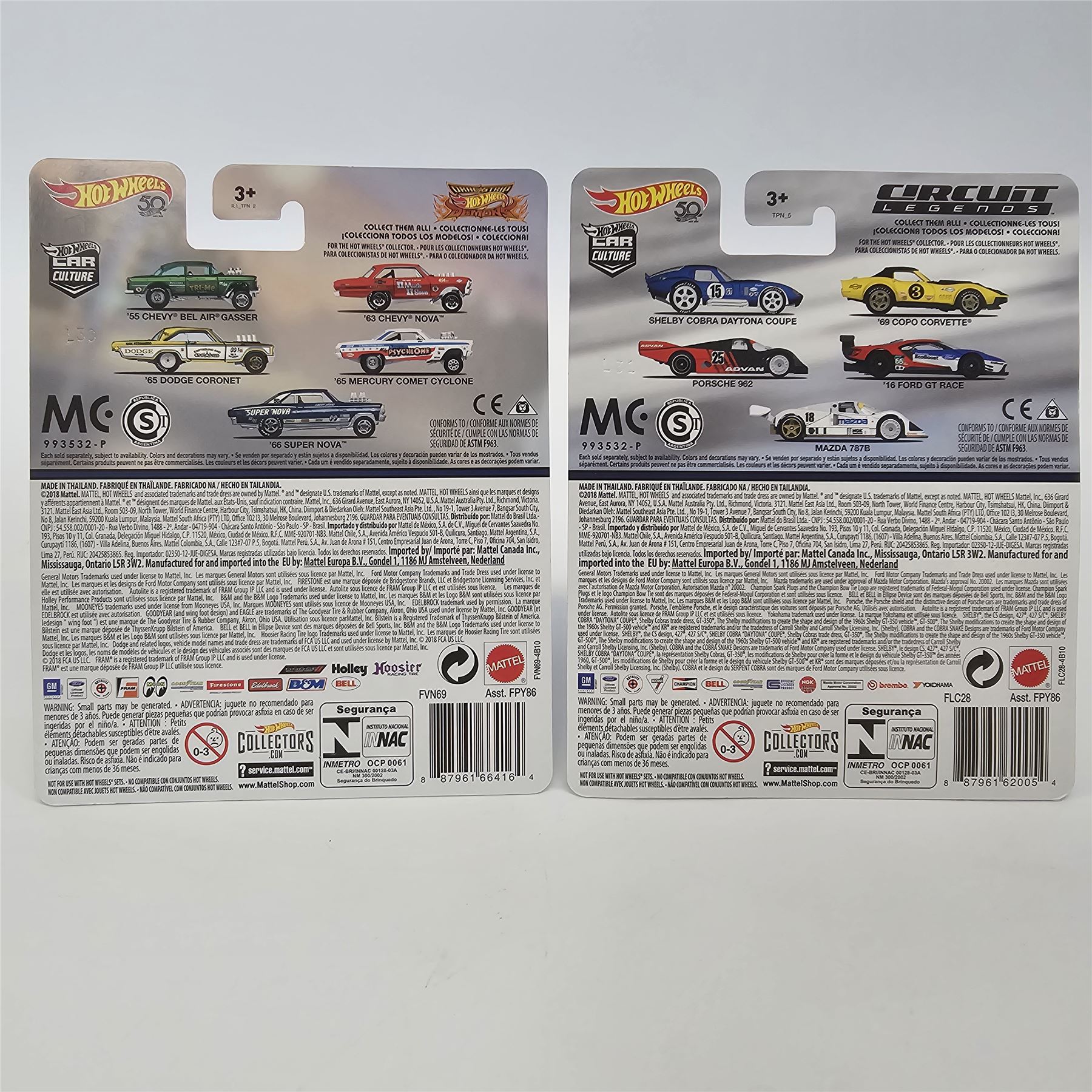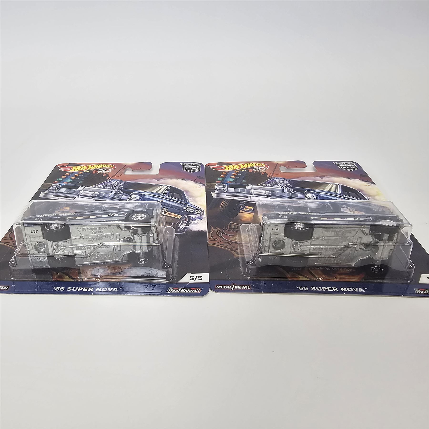 Hot Wheels Real Riders Car Culture 5 car lot including, (3) '66 Chevy Super Novas, '55 Chevy Bel Air Gasser and a Circuit Legends Shelby Cobra Daytona Coupe