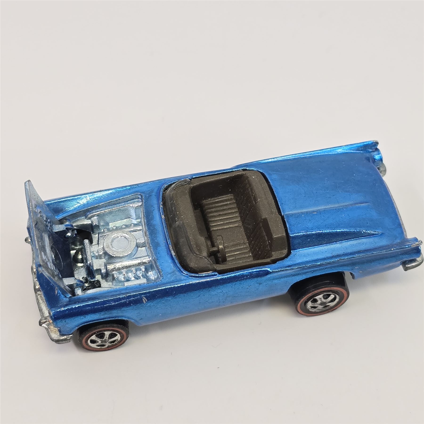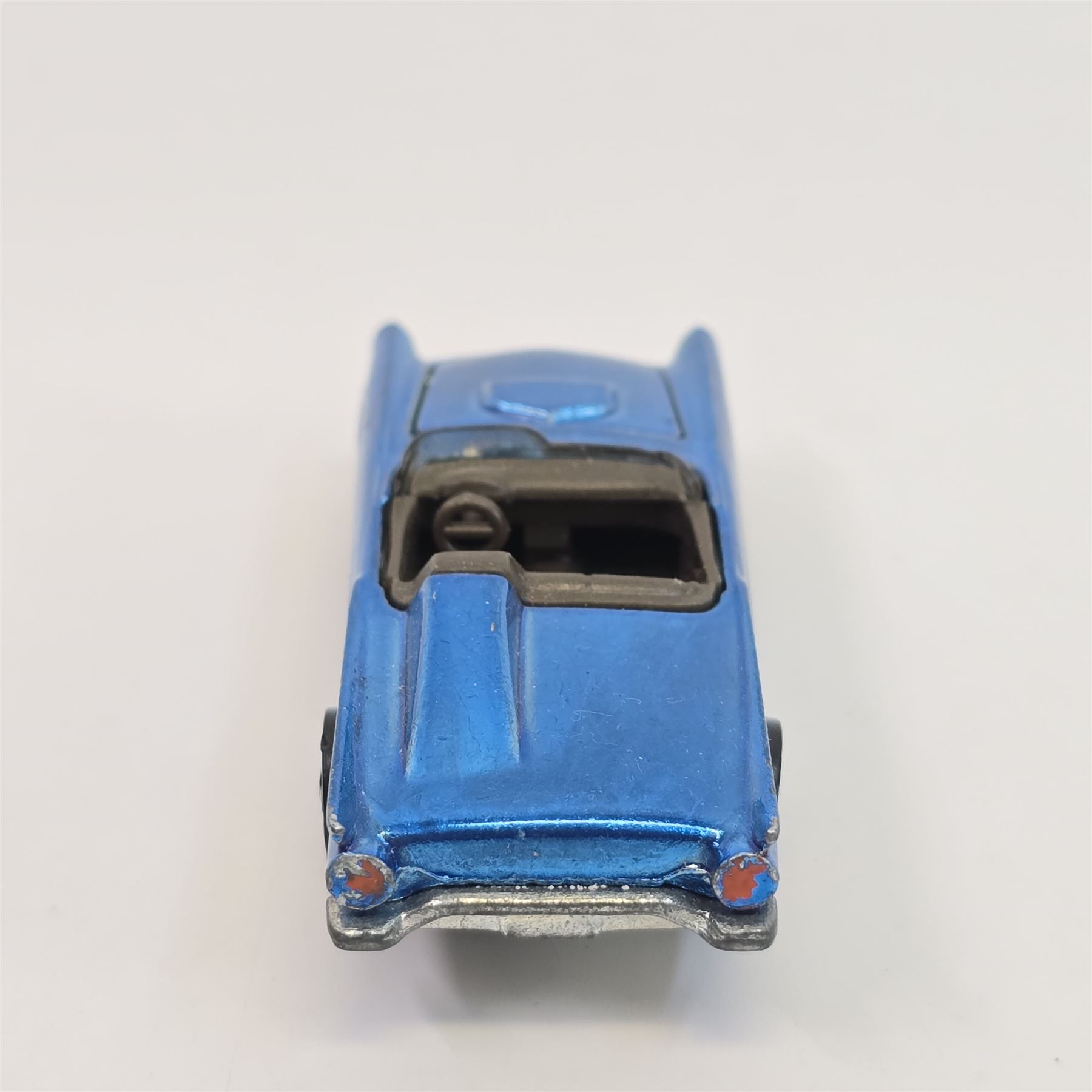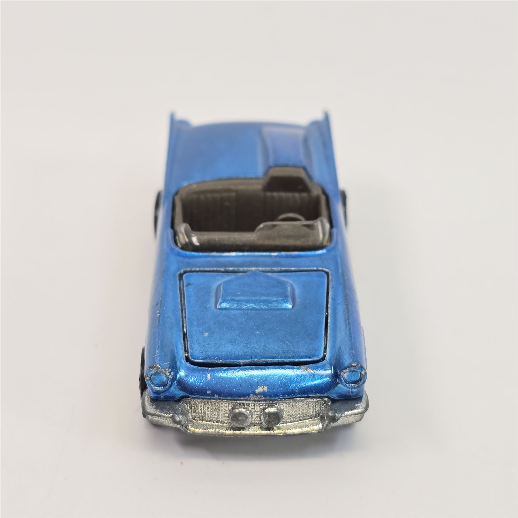 Car body/paint/Interior- US, light (windex) blue, dark interior, has some wispy tone, light chipping at front and rear as seen. Additionally has a few scattered chips, wear at both tail and headlight bezels.& nbsp;