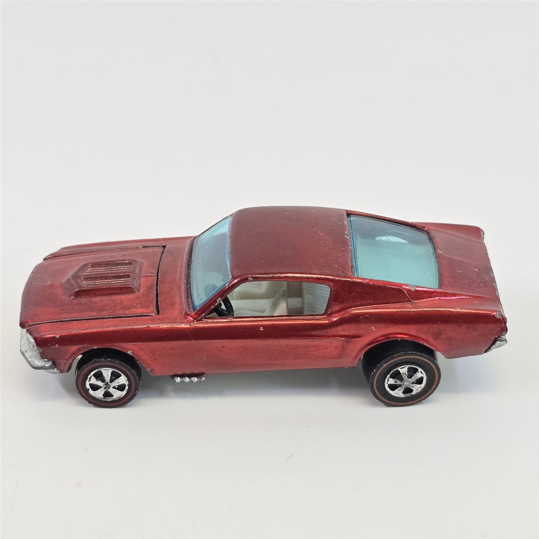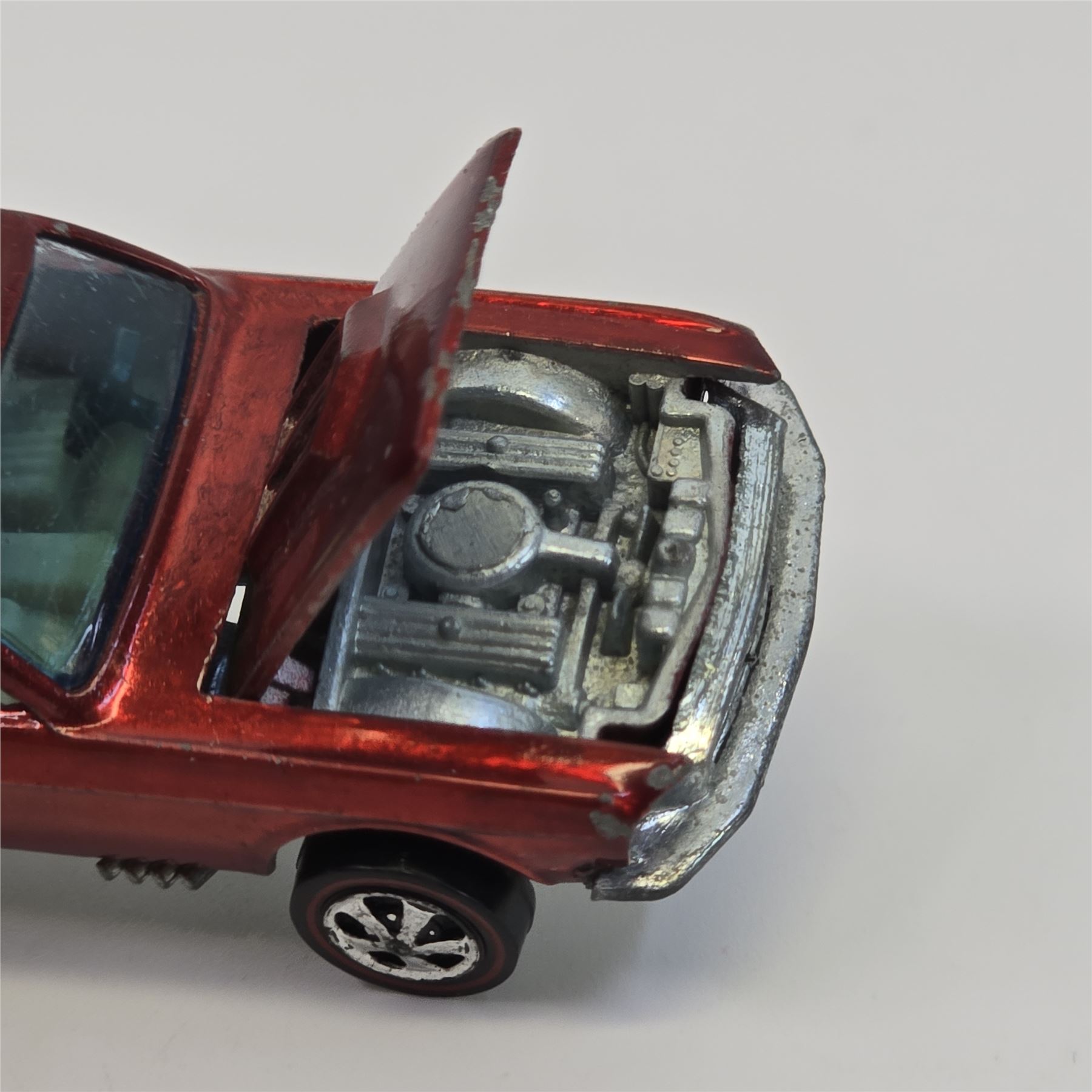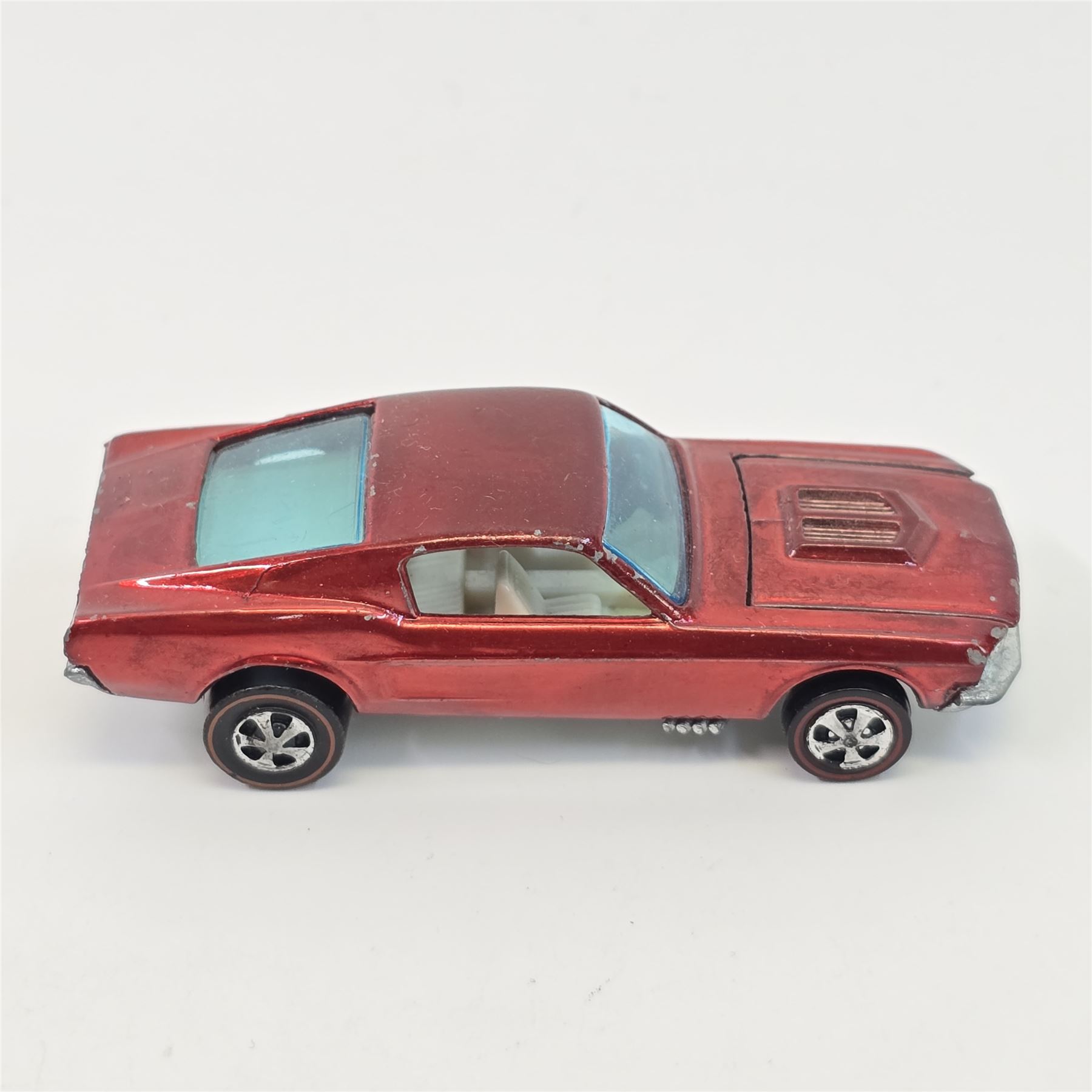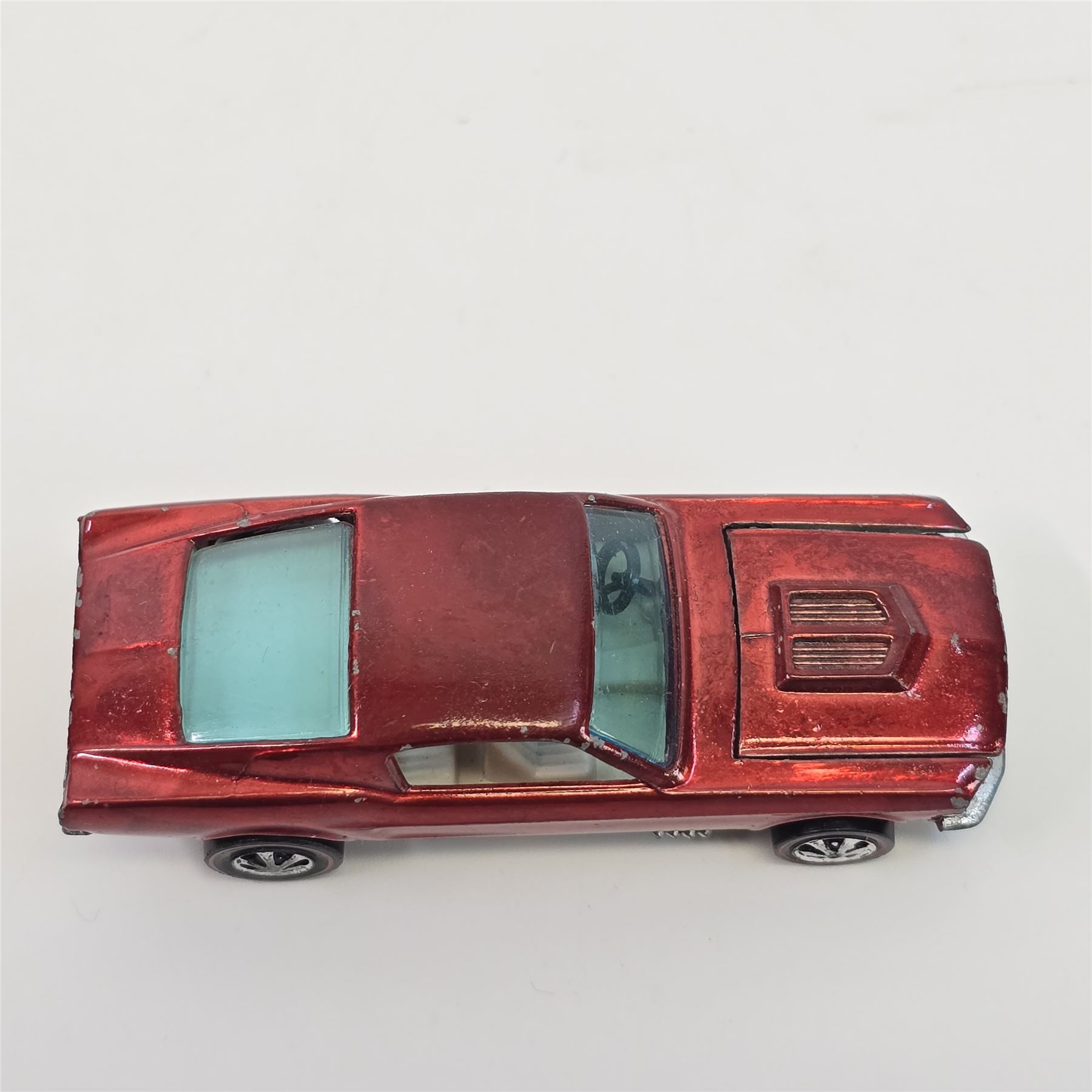 Car body/paint/Interior - HK, red, white interior, paint is good throughout, it has some wispy toning in spots, it has hard edge wear and chips in spots, tail paint is good with a few chips as seen