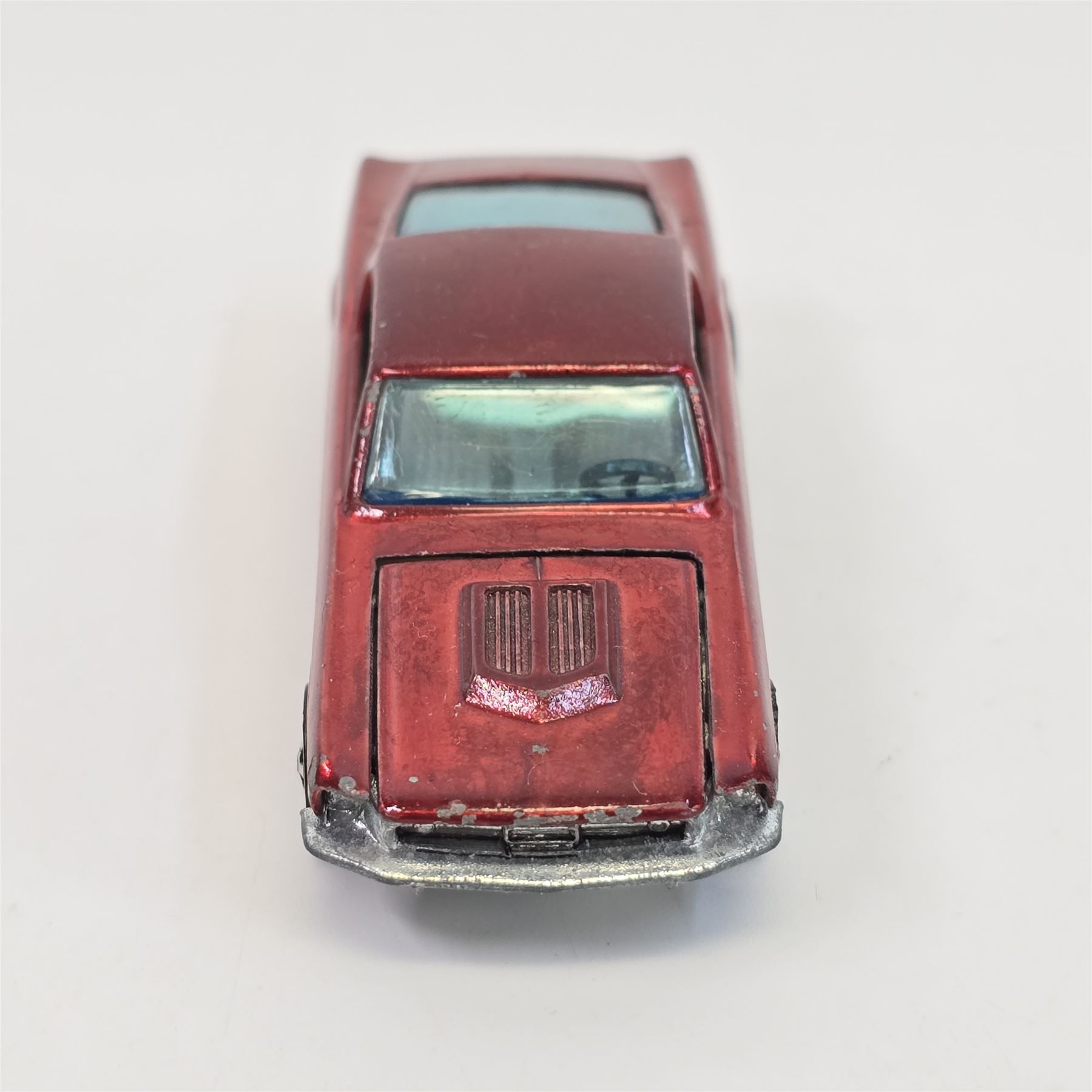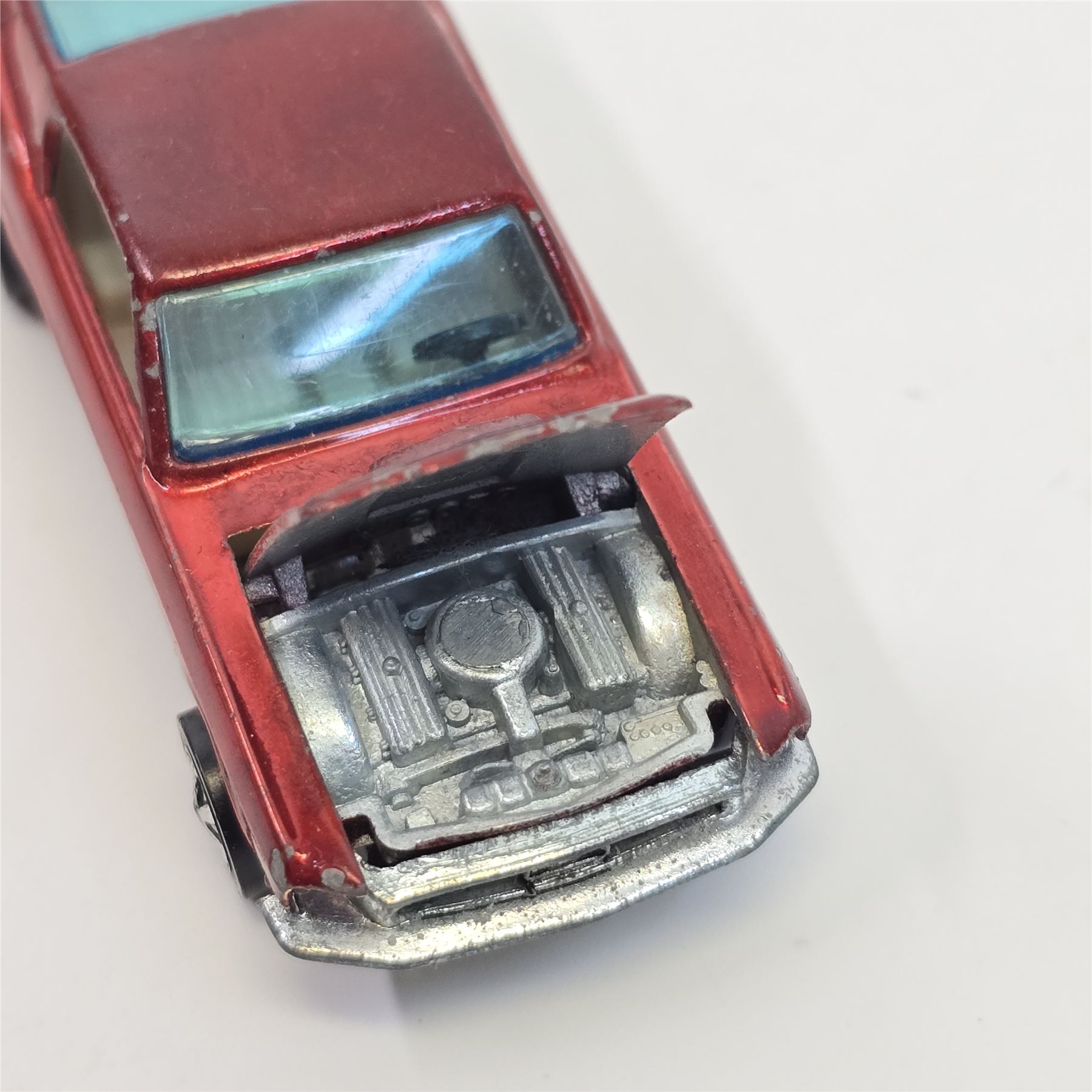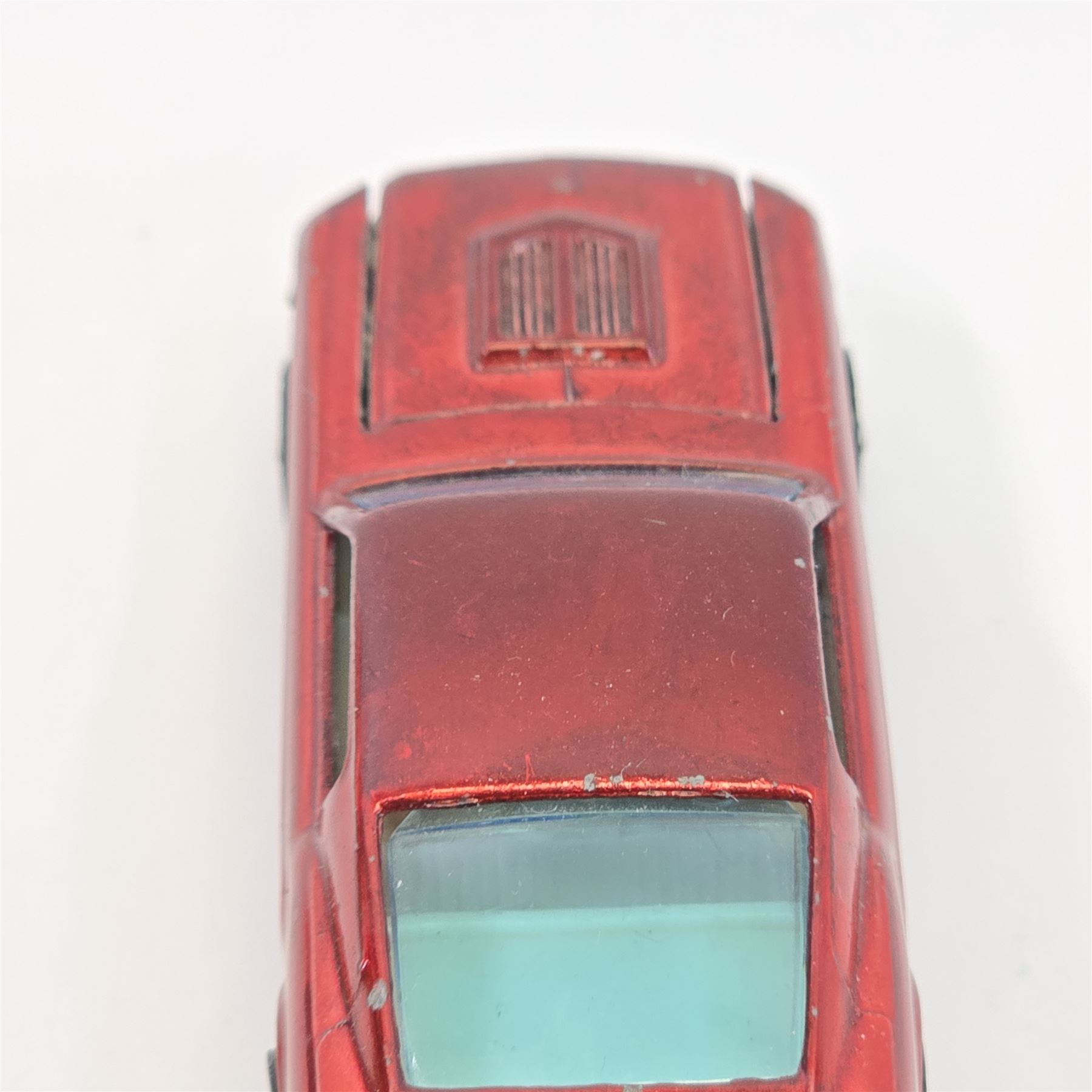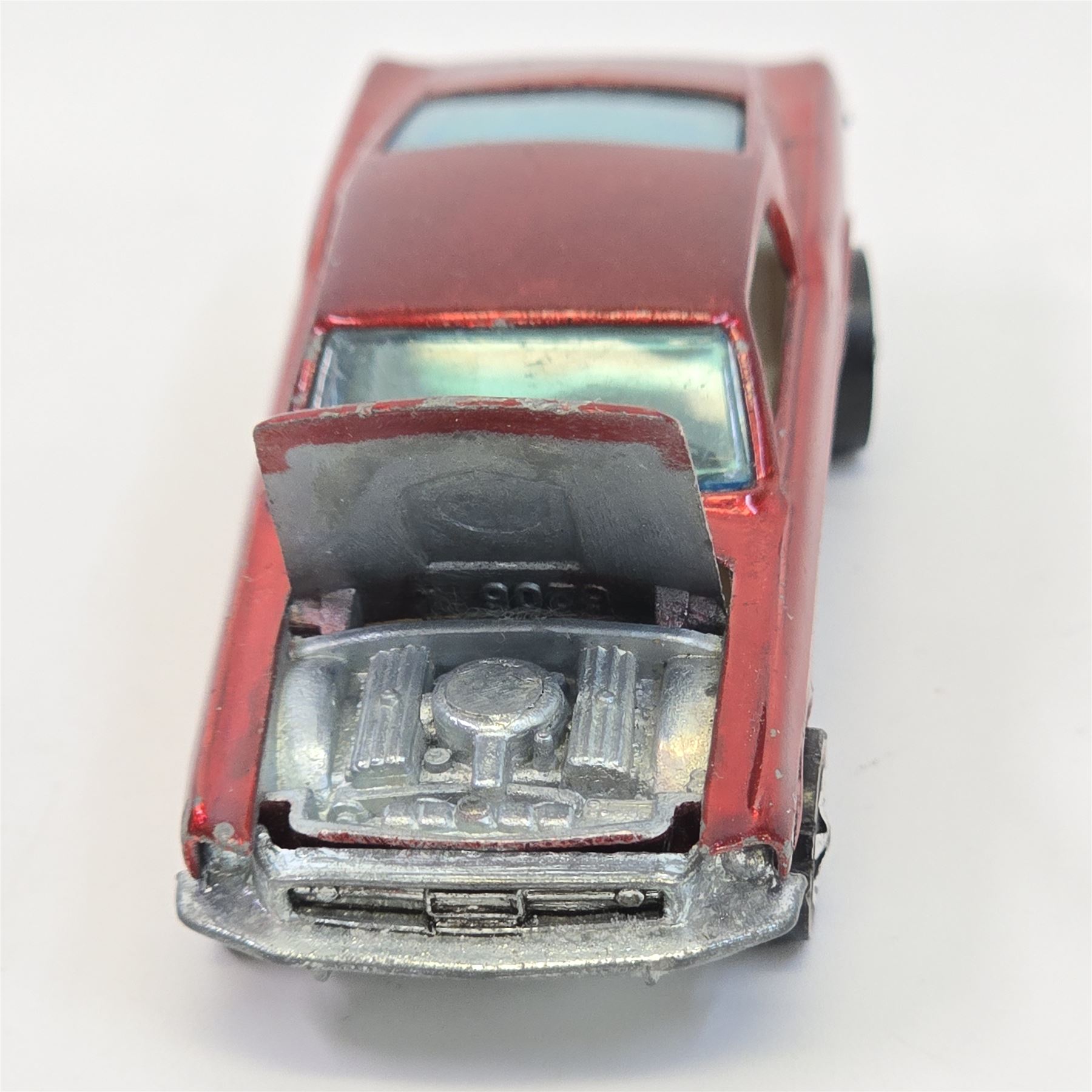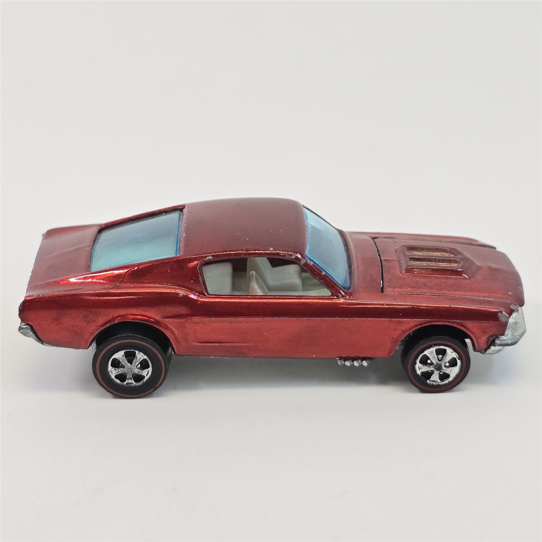 Car body/paint/Interior - HK, red, white interior, paint is good throughout, it has some wispy toning in spots, it has hard edge wear and chips in spots, tail paint is good with a few chips as seen