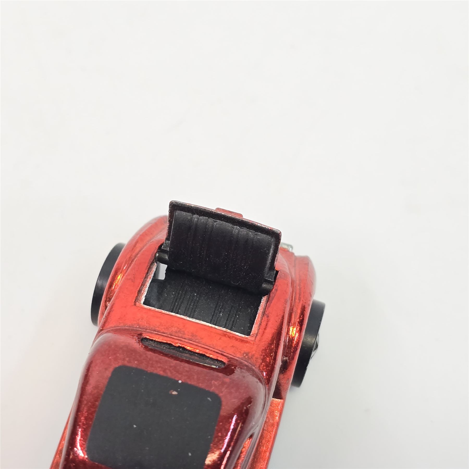 Car body/paint/Interior- Standard red, nice black roof paint with one micro pin prick. seat back looks to be in good shape with a barely noticeable knick. Some foggy toning but pretty uniform paint with little to no wear.& nbsp;