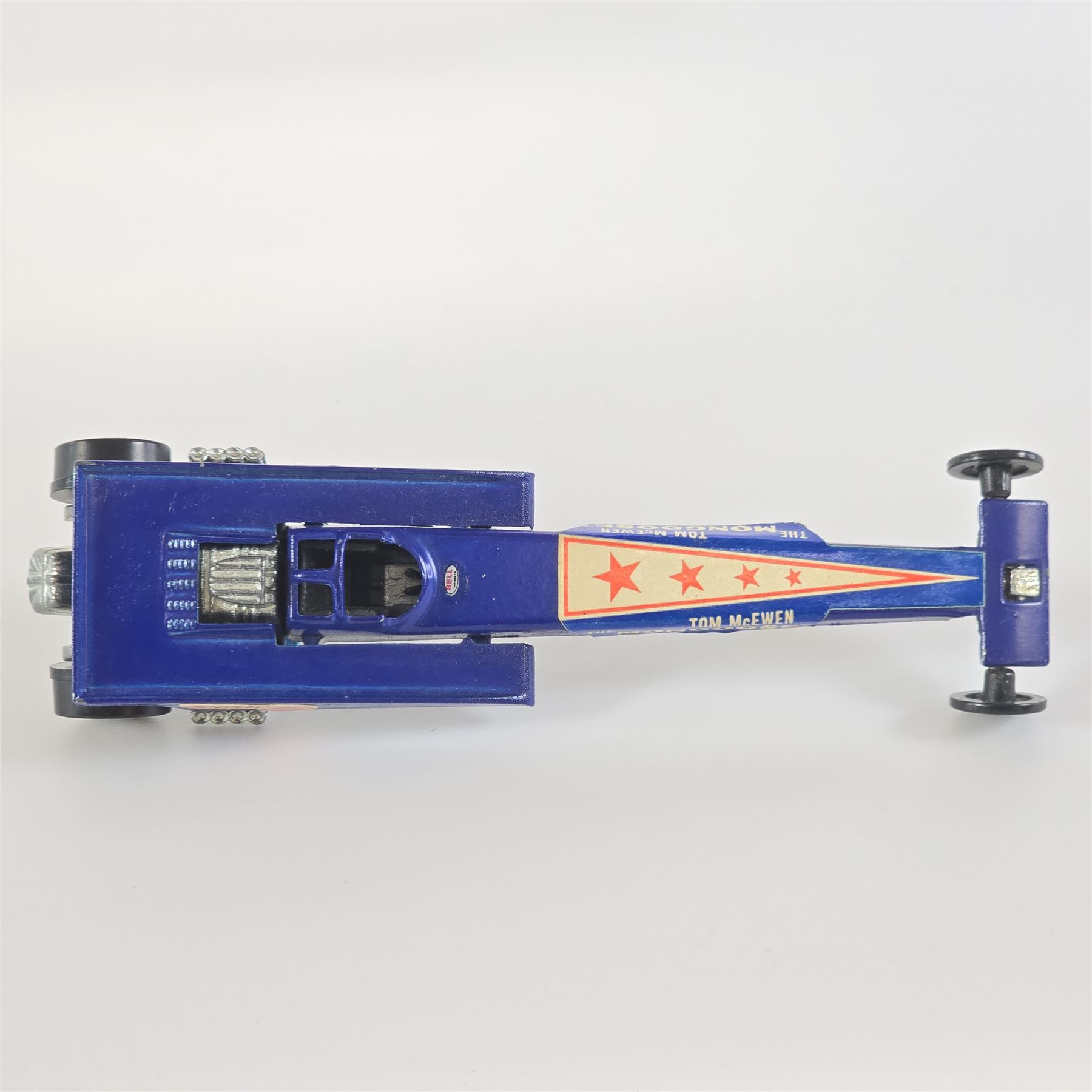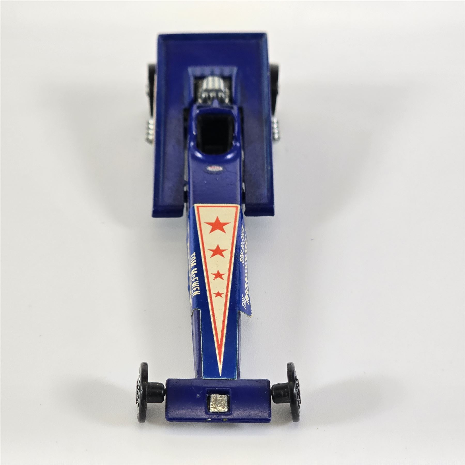 Both dragsters in similar condition - Nice overall with a few light nicks. Original decals intact. Hatches work properly. Wheel chrome overall nice. Bases are lightly tarnished.