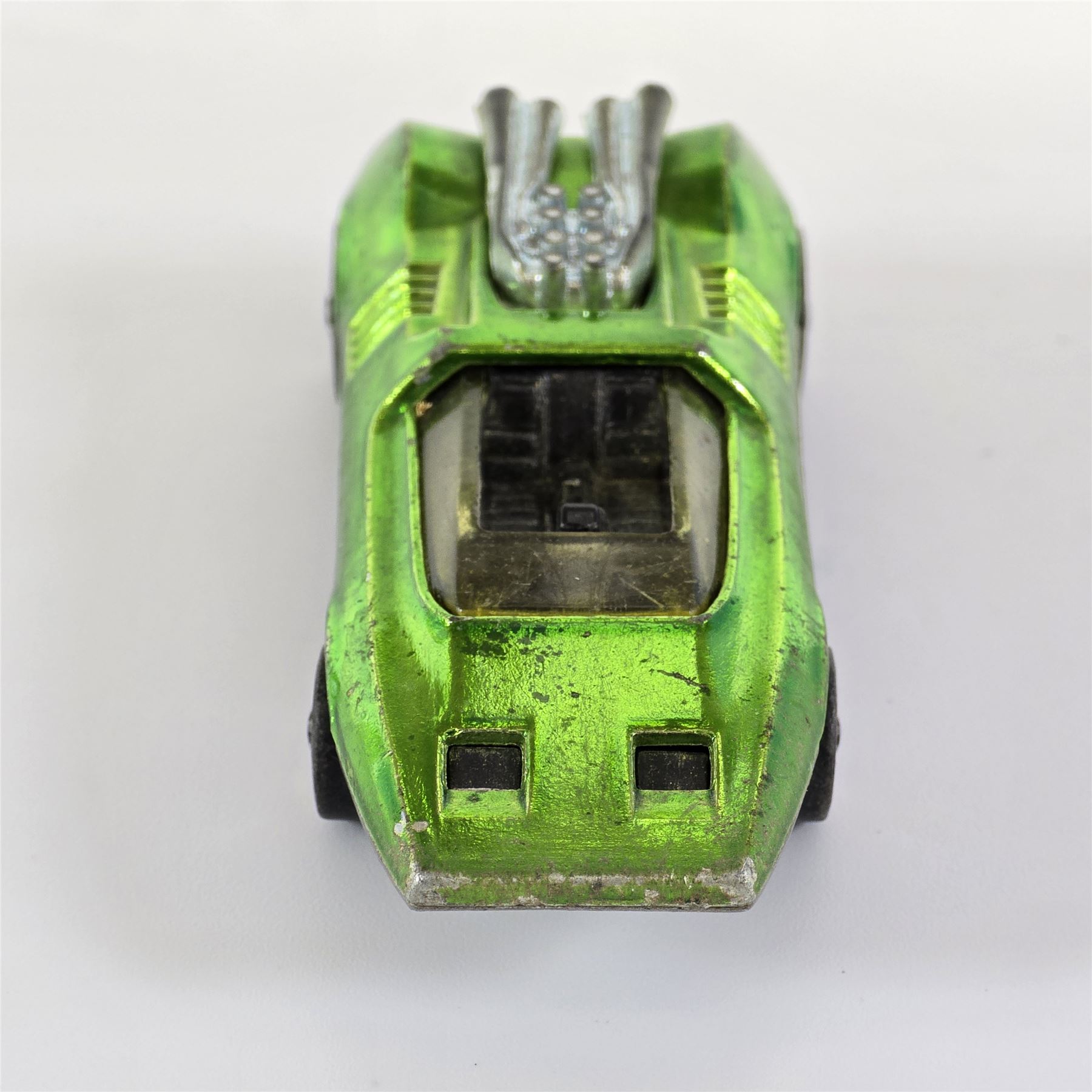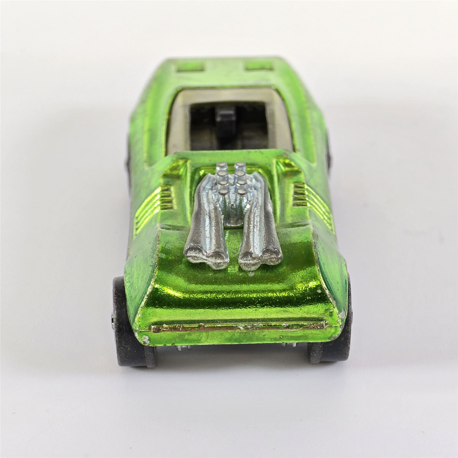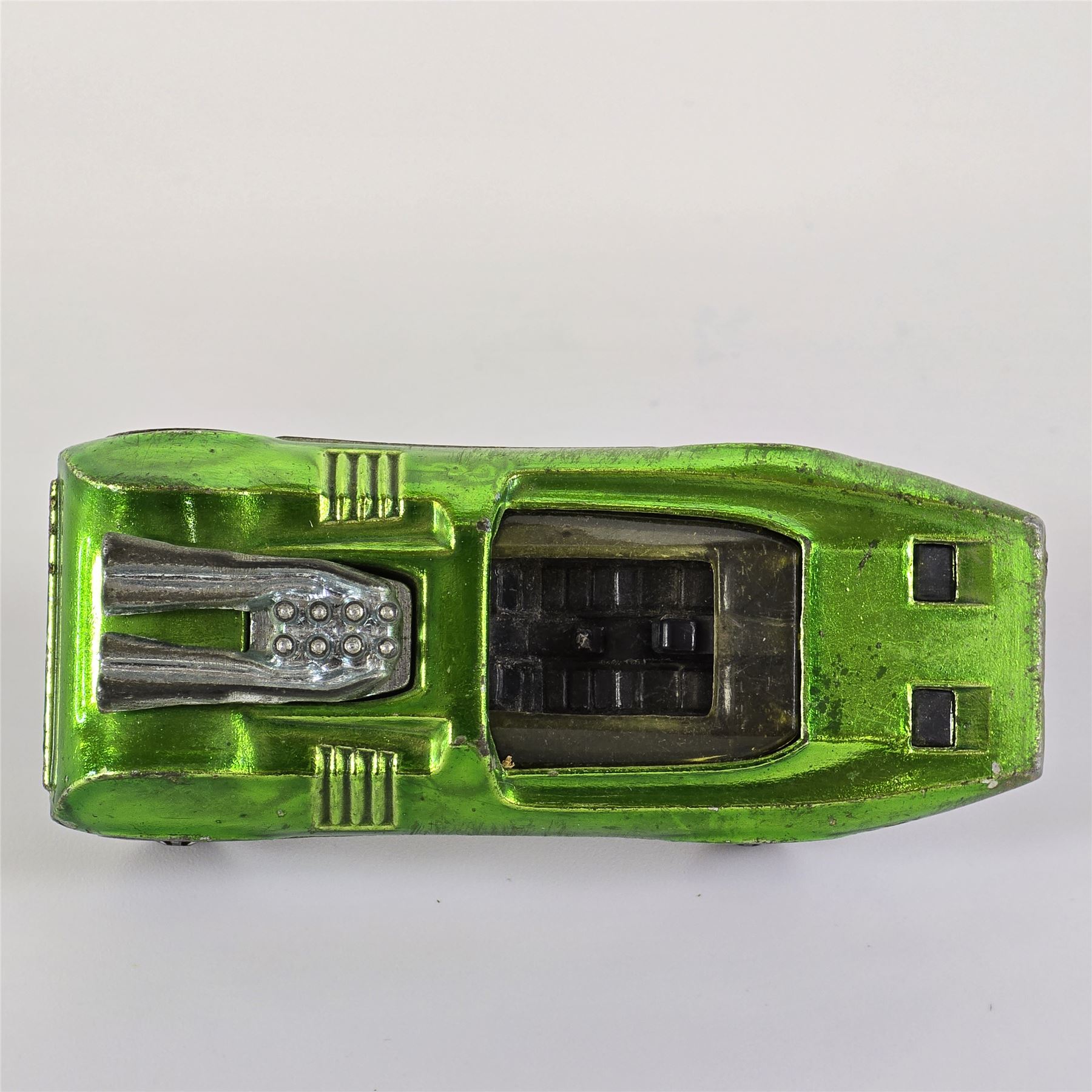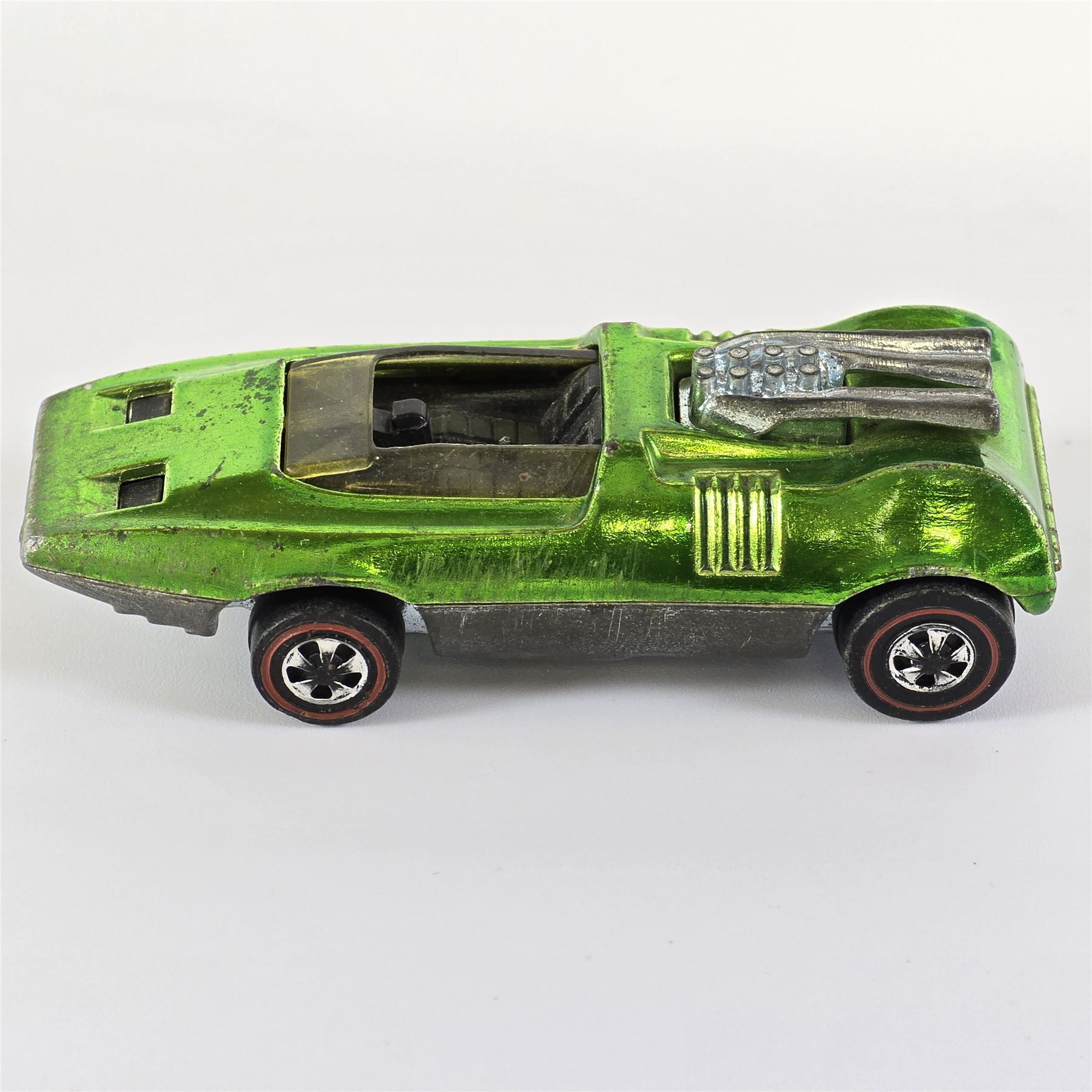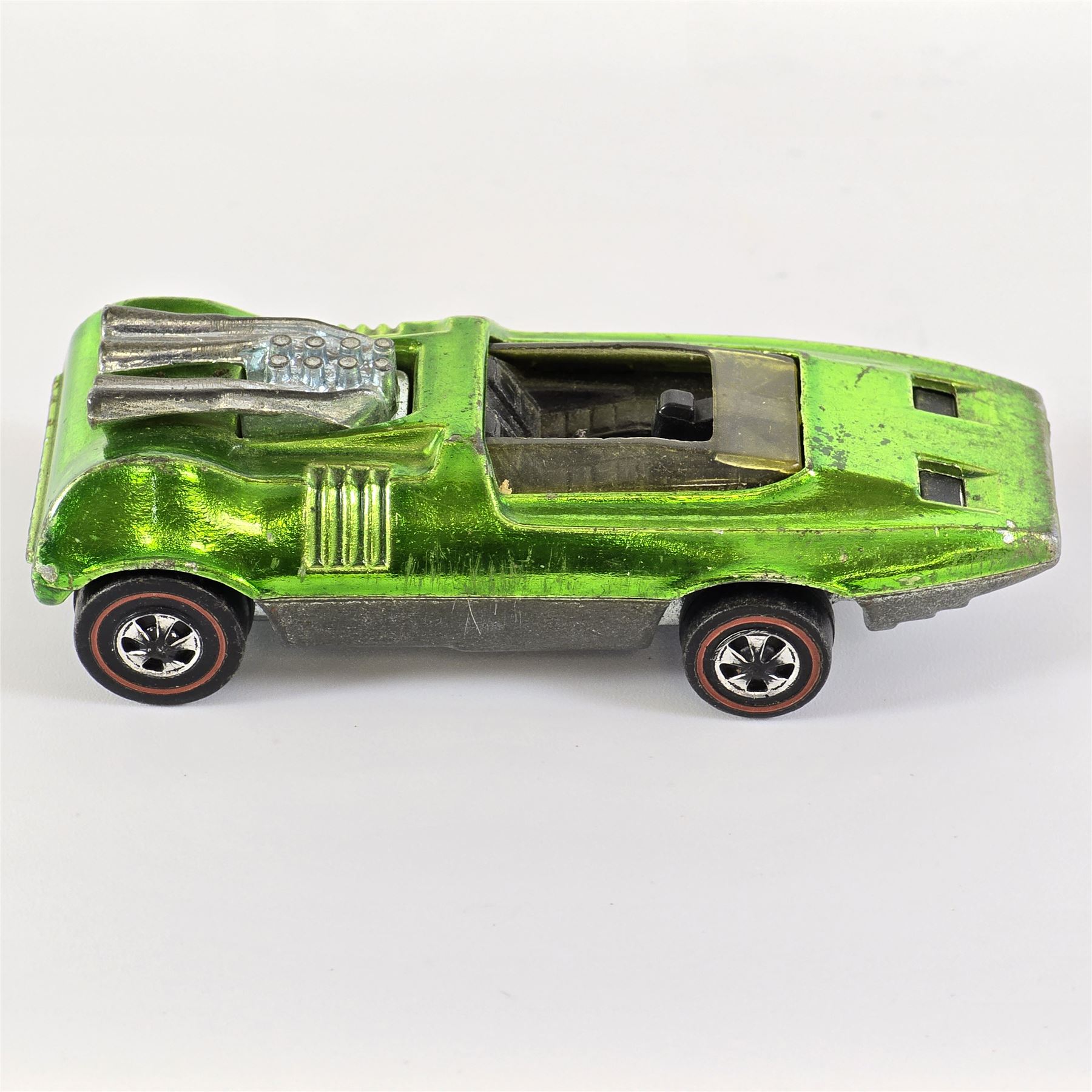 Nice condition overall with some light wear throughout. Has some toning throughout. Glass is crack free. Headlight slider works. Wheel chrome shows light wear. Base is lightly tarnished.