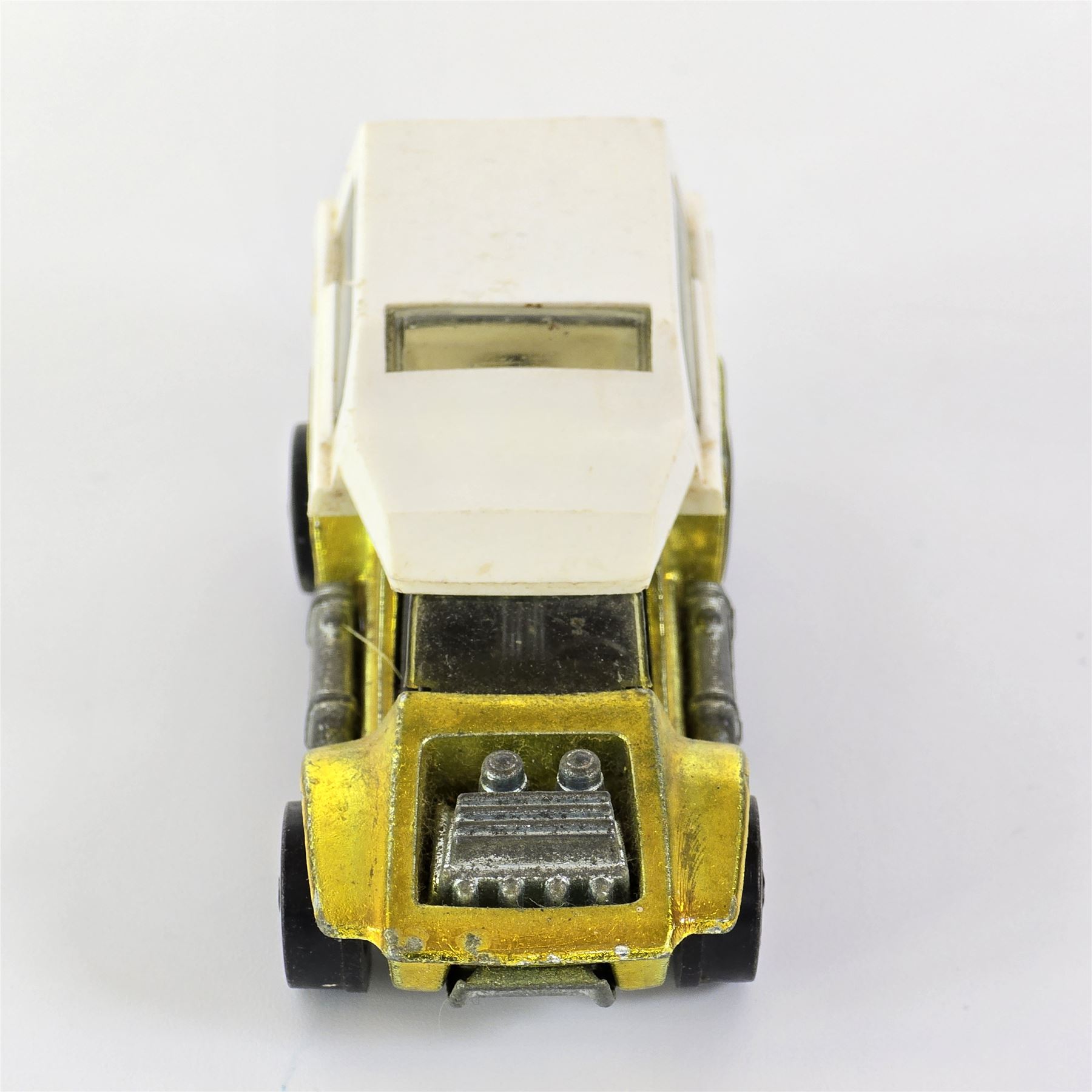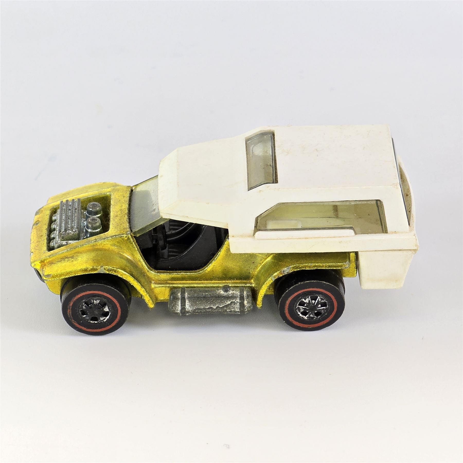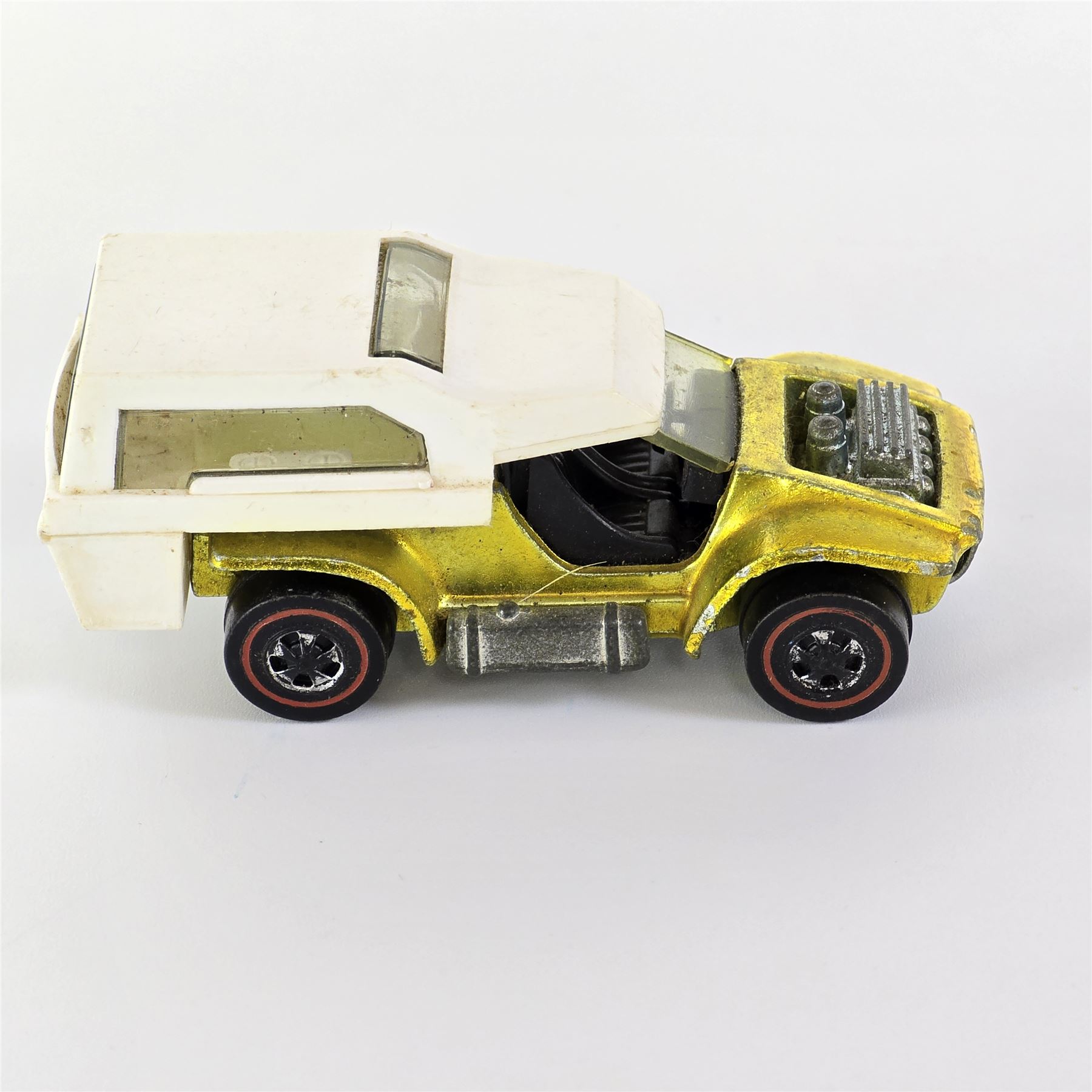 Nice overall condition with some light edge wear and nicks throughout. Has some hazy toning throughout. Glass is clean. Rollbar intact, camper intact. Wheels show chrome wear. Base is lightly tarnished.