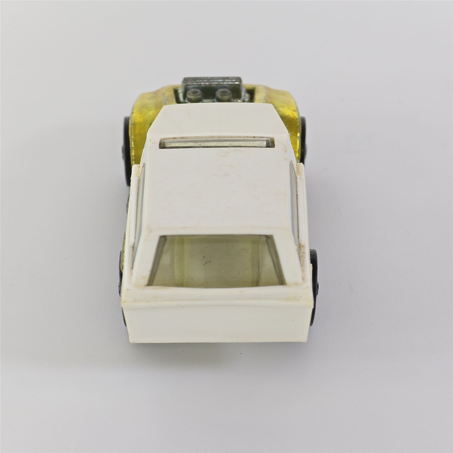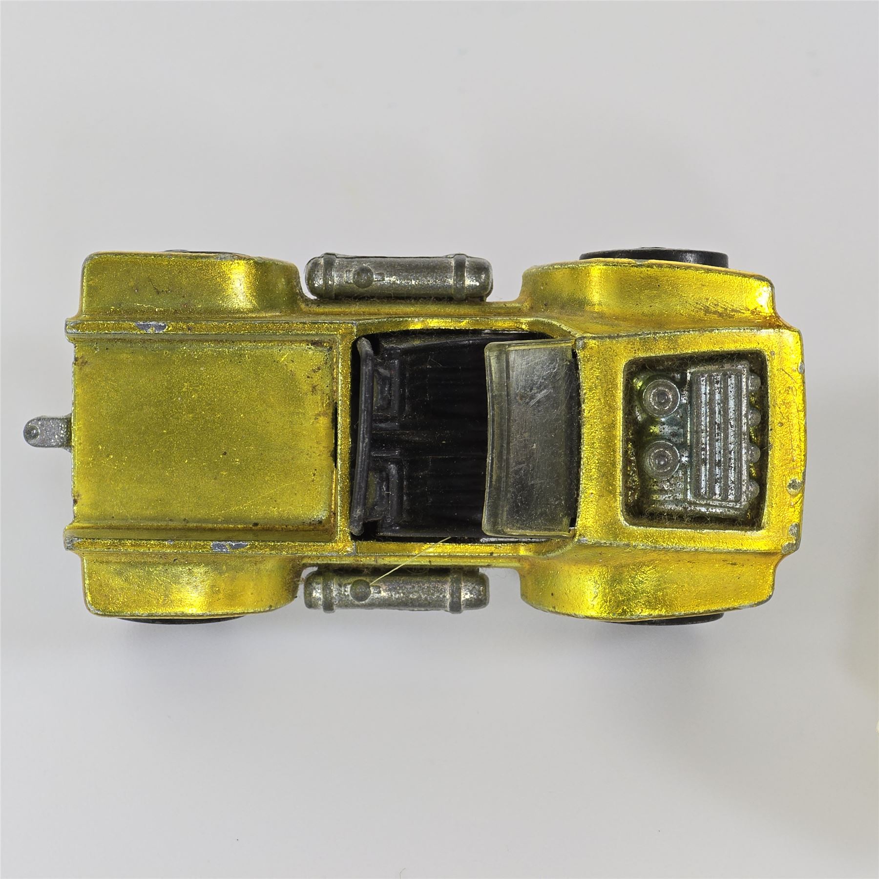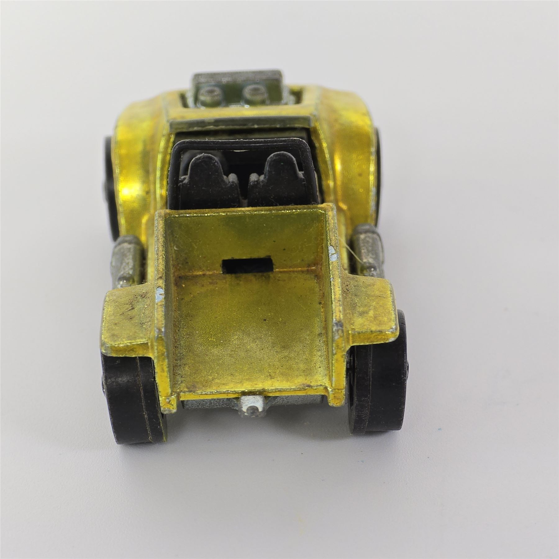 Nice overall condition with some light edge wear and nicks throughout. Has some hazy toning throughout. Glass is clean. Rollbar intact, camper intact. Wheels show chrome wear. Base is lightly tarnished.