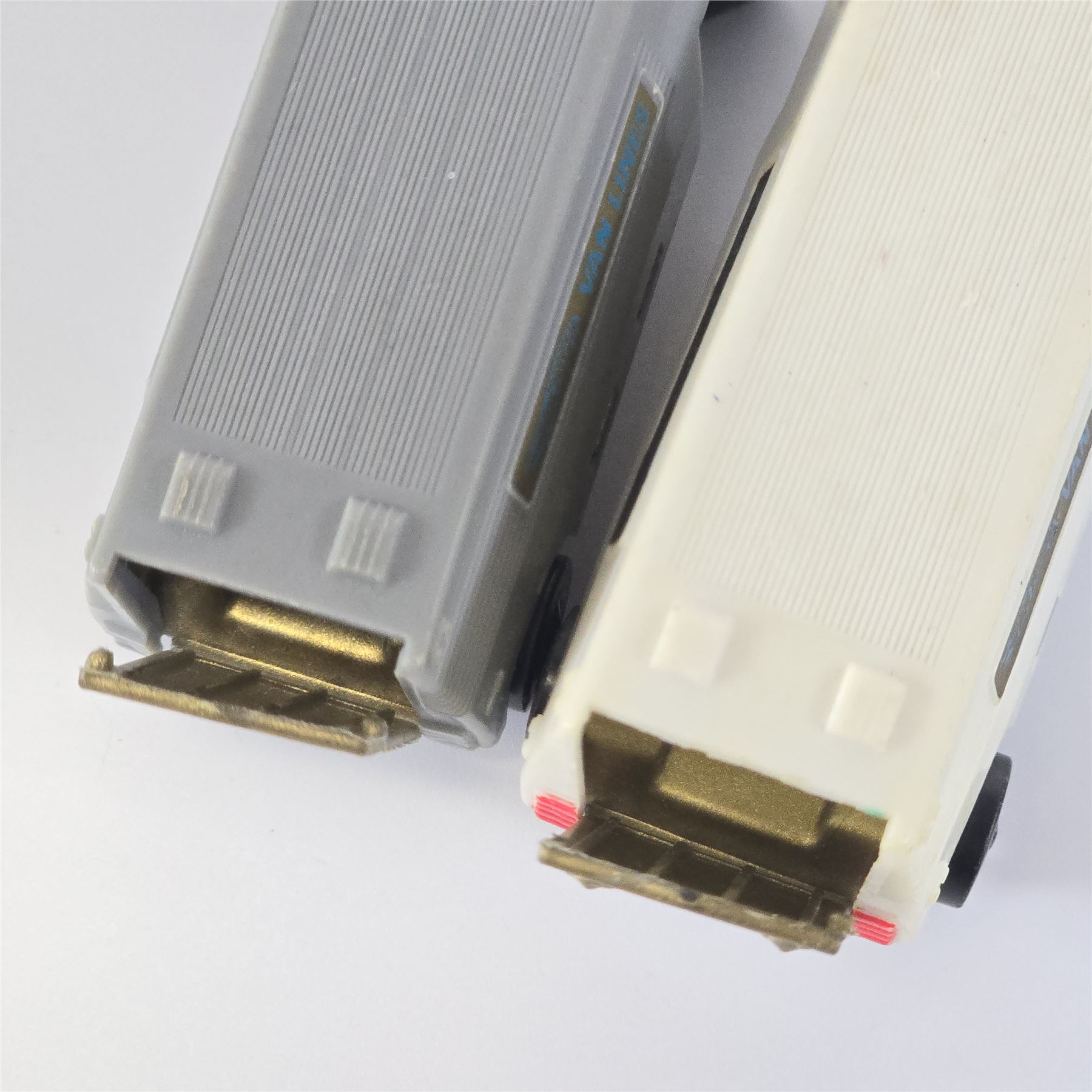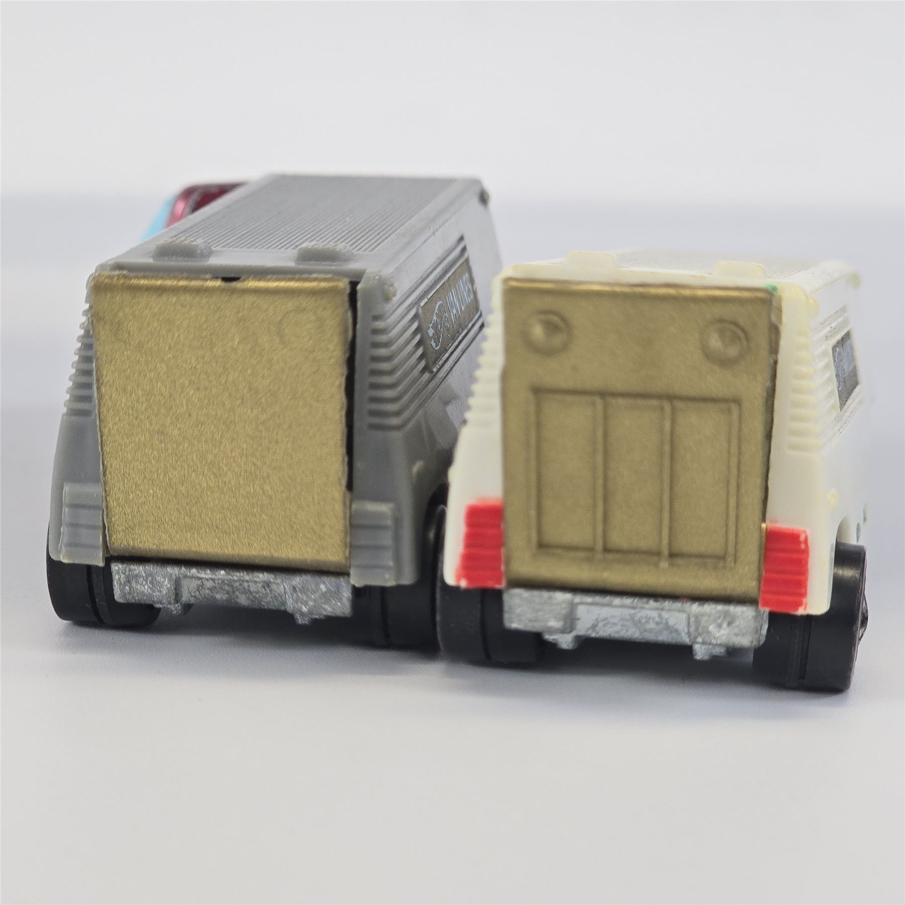 Nice condition overall with slight playwear. Has some light toning throughout. Glass is crack free. Trailer all intact. Smooth rear door variant! Wheel chrome shows light wear. Base is lightly tarnished.