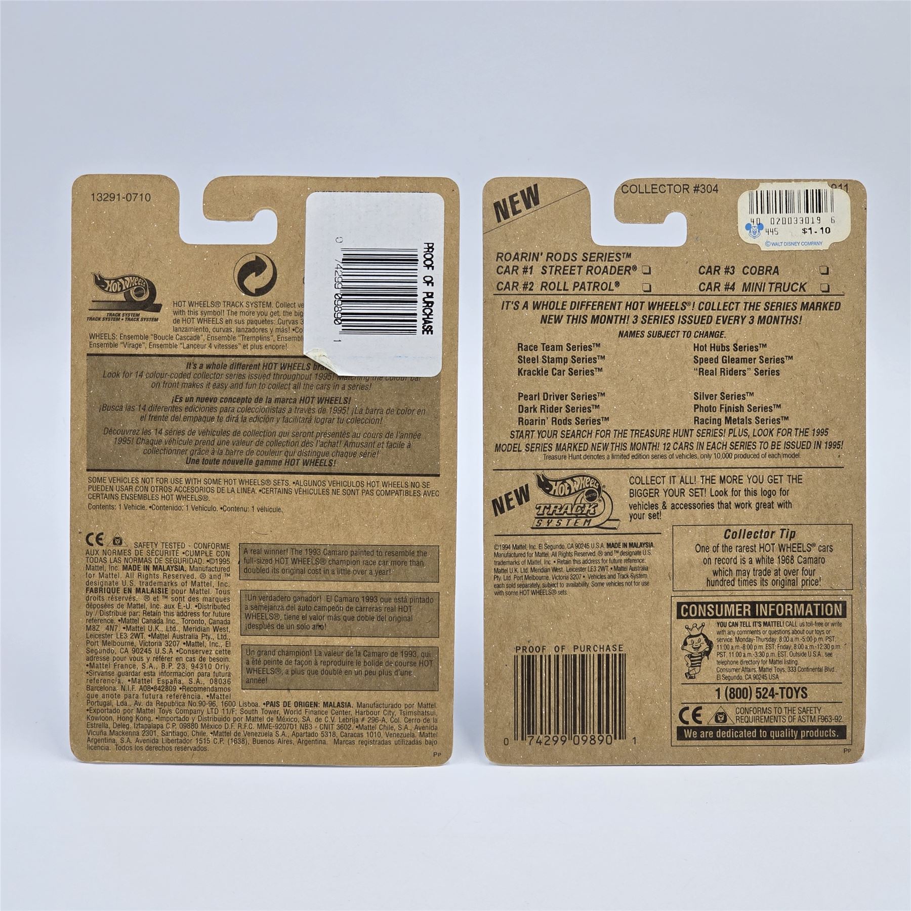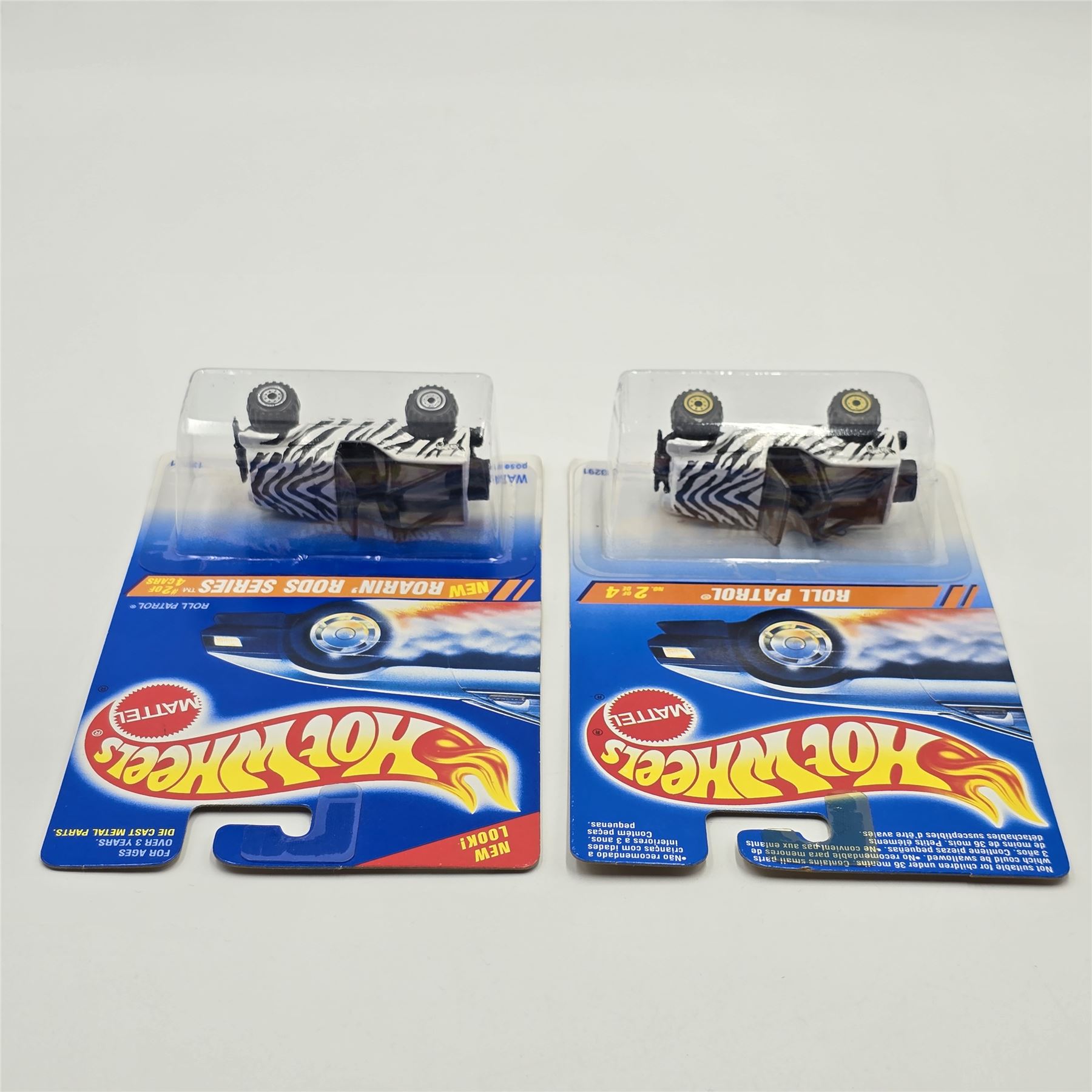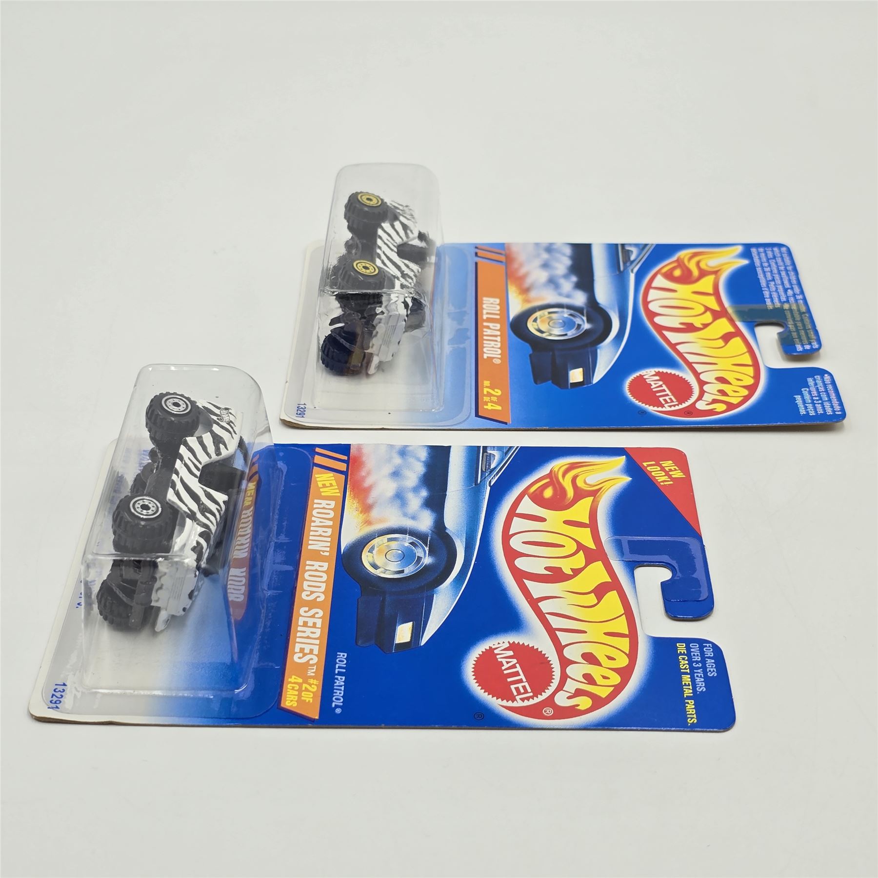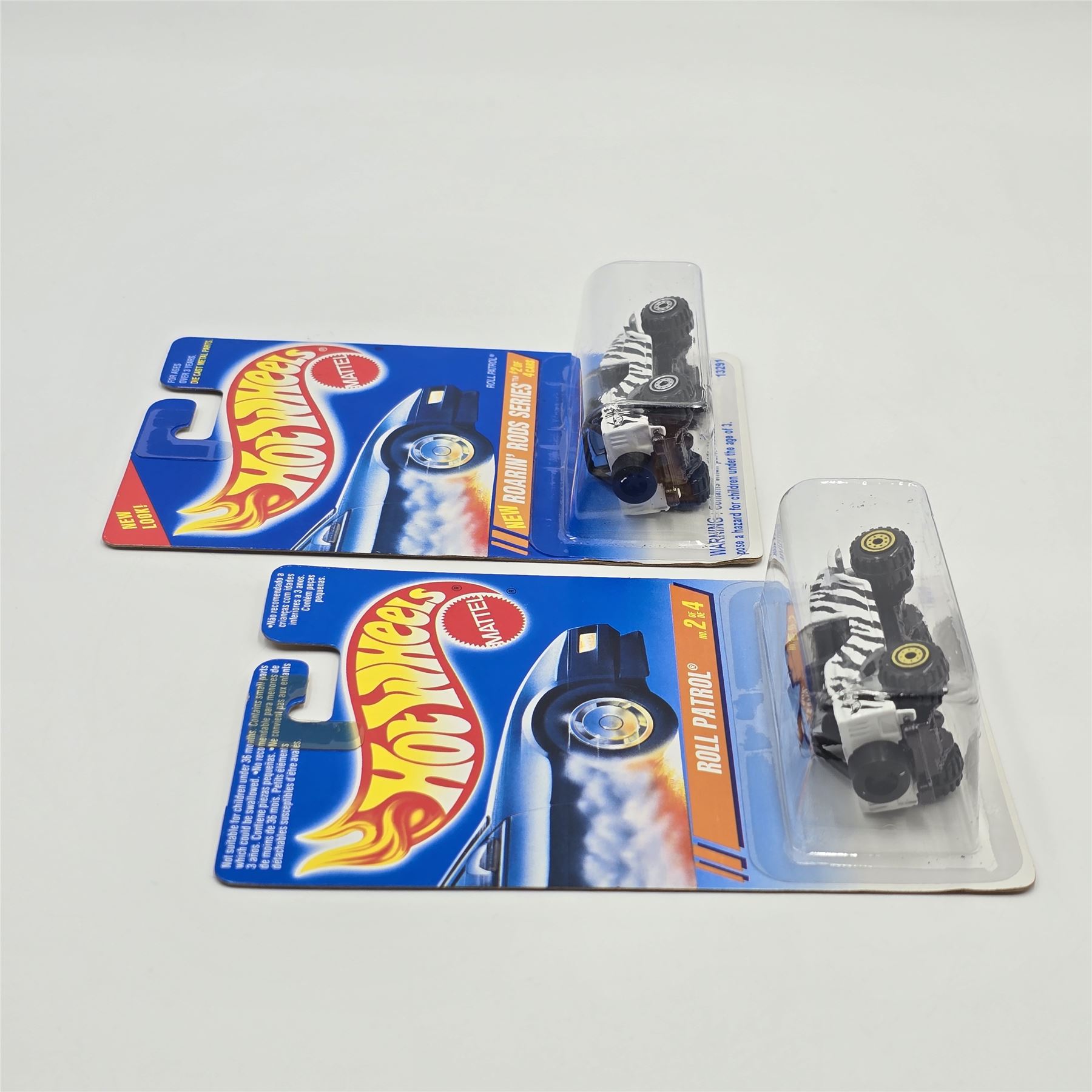 Hot Wheels Roll Patrol Pair, one is on Canadian card and has yellow CT wheels, the other is Roarin Rod Series