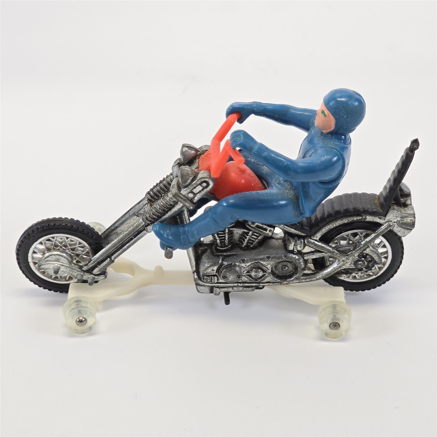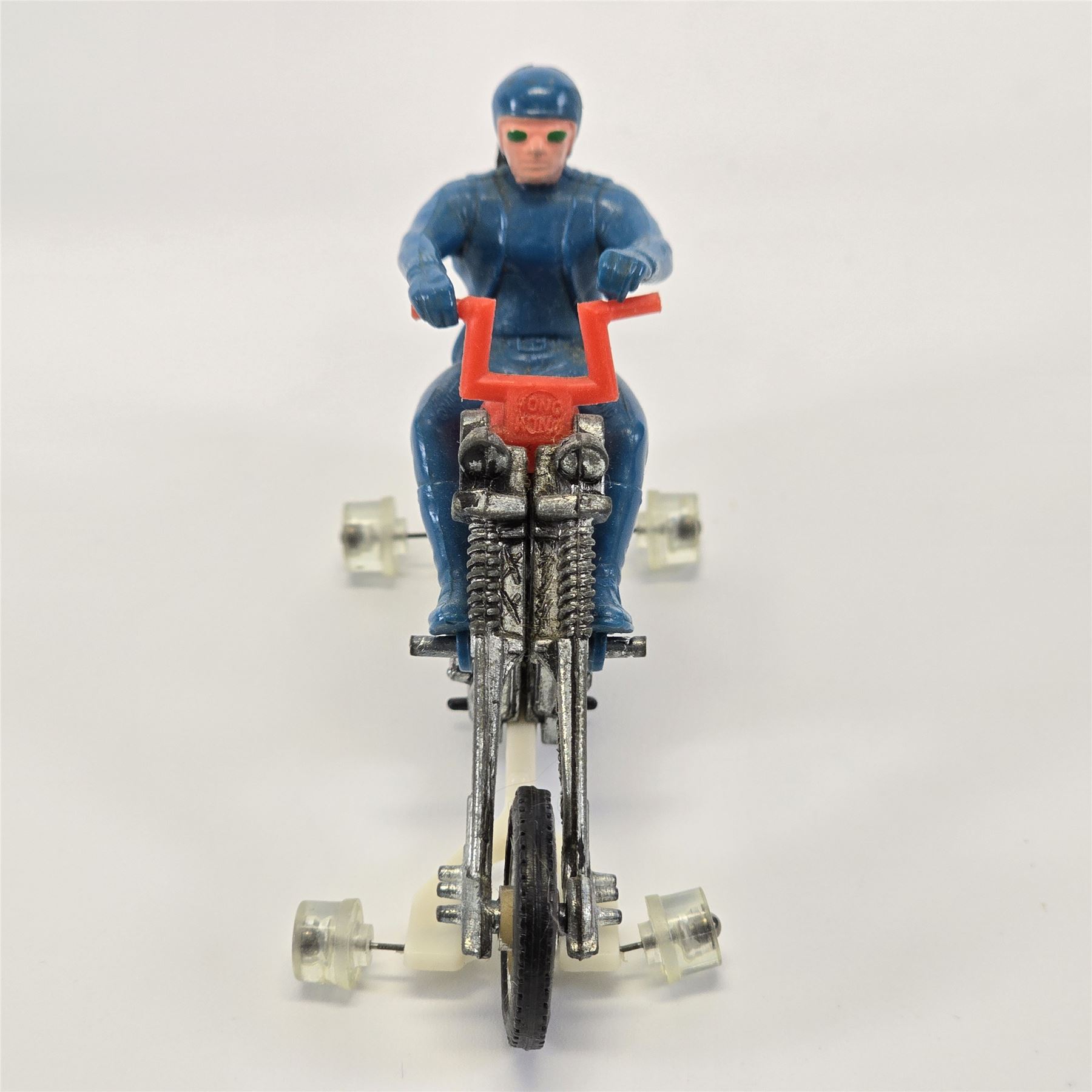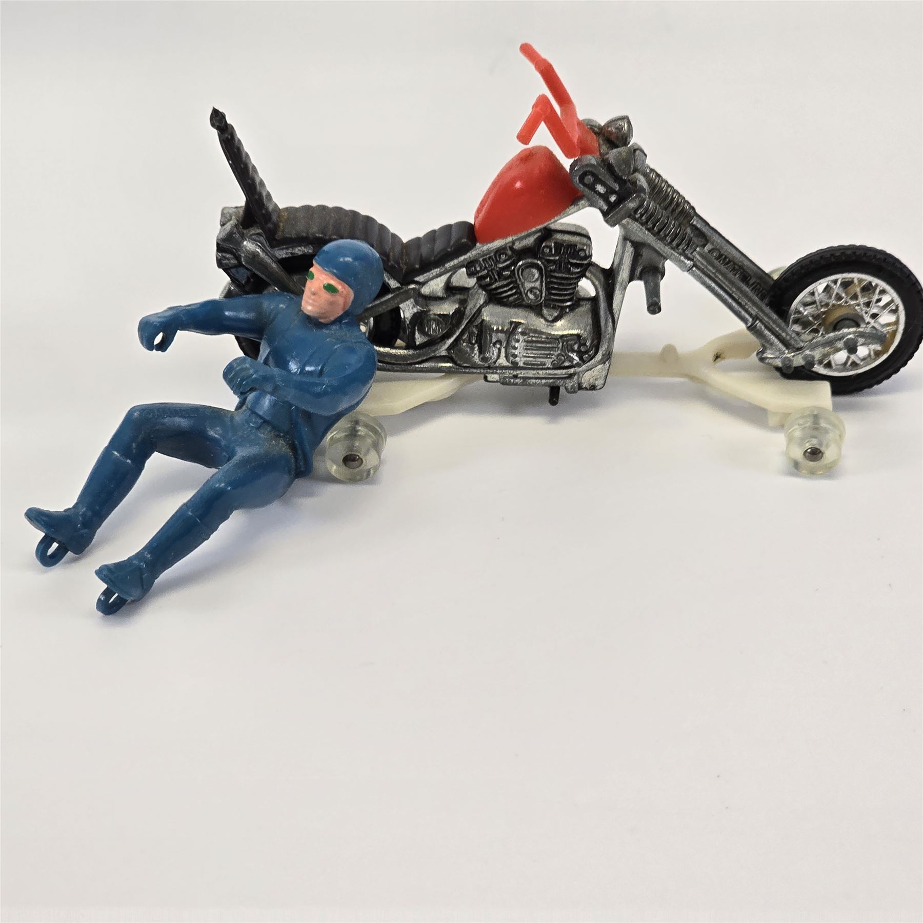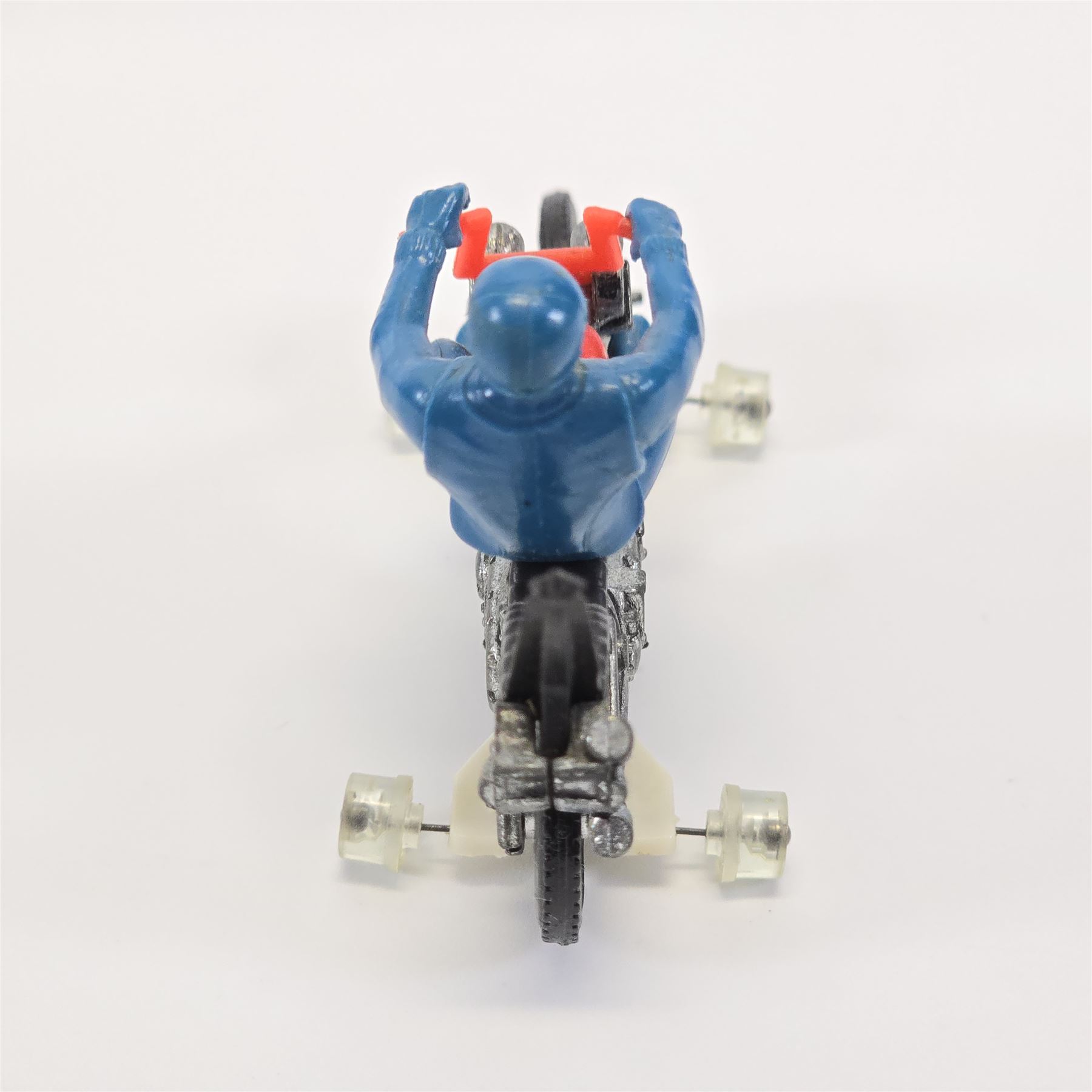 Overall nice condition with some slight tarnish to metals. All plastics appear intact. Blue Shades rider has all loops intact. Bike kickstand intact. 4-wheel track guide intact.