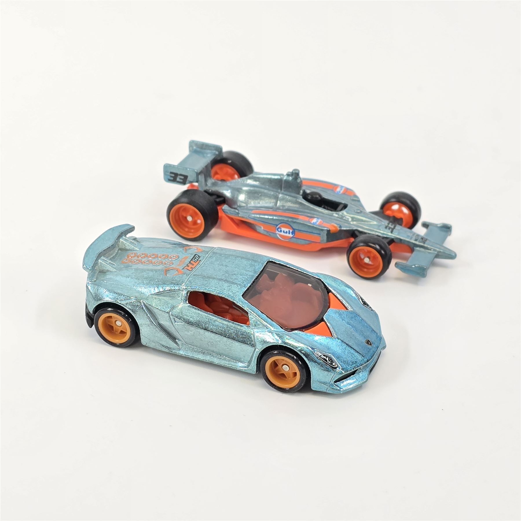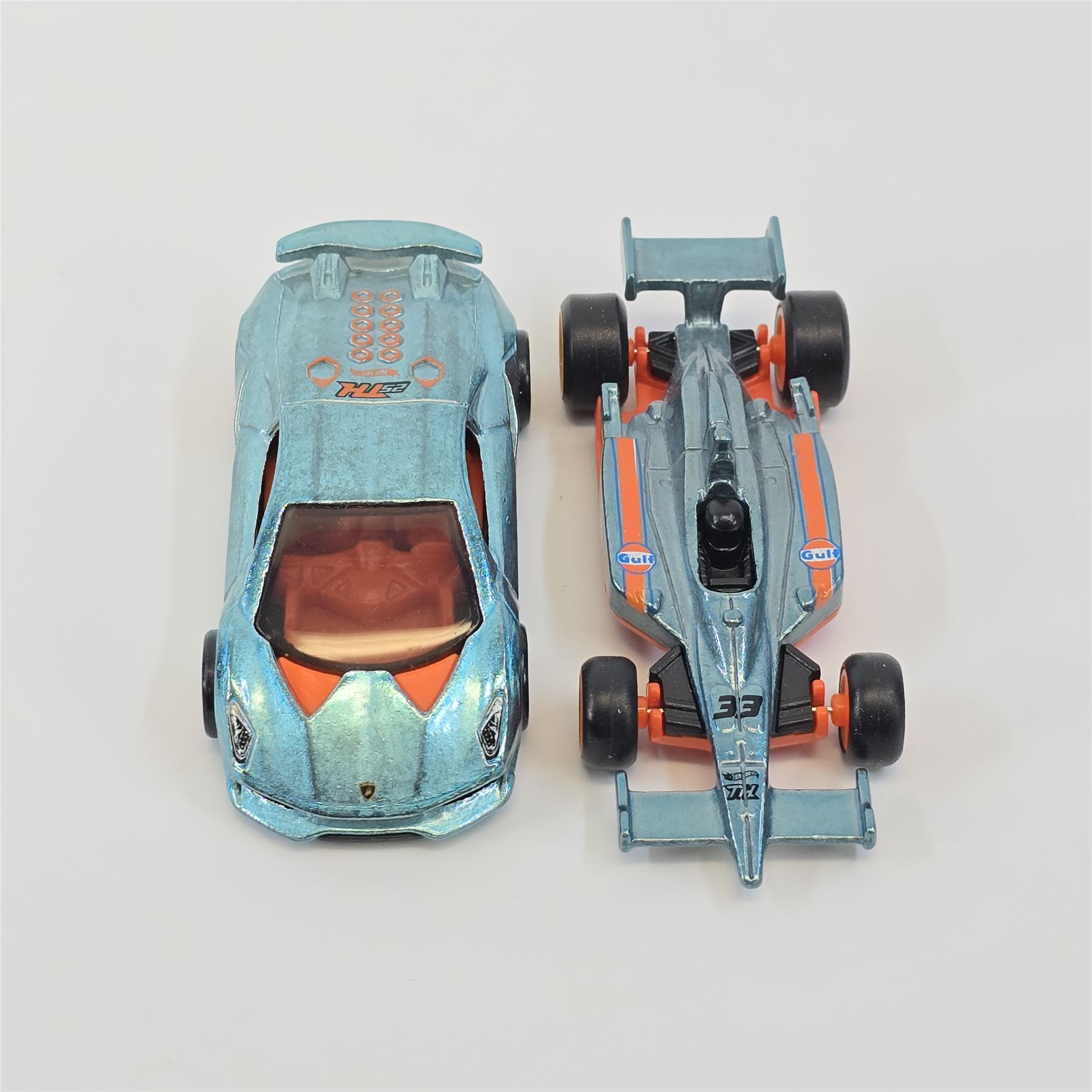 Hot Wheels Lamborghini and Gulf Indy Racer Super Treasure Hunt pair including;