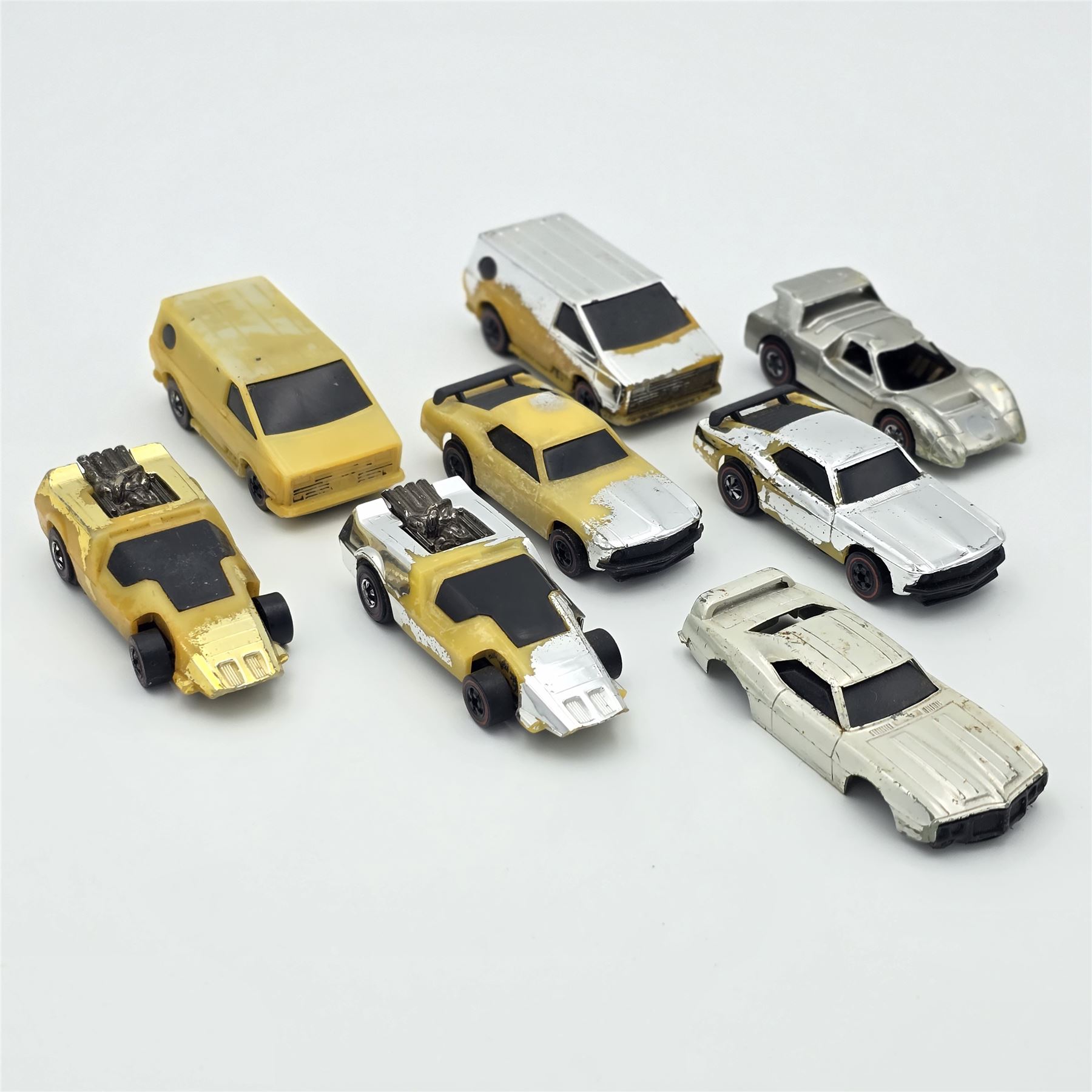 Large lot of cars with issues, mostly faded and missing body chrome as seen, some of these cars were never chrome cars but have been painted silver
