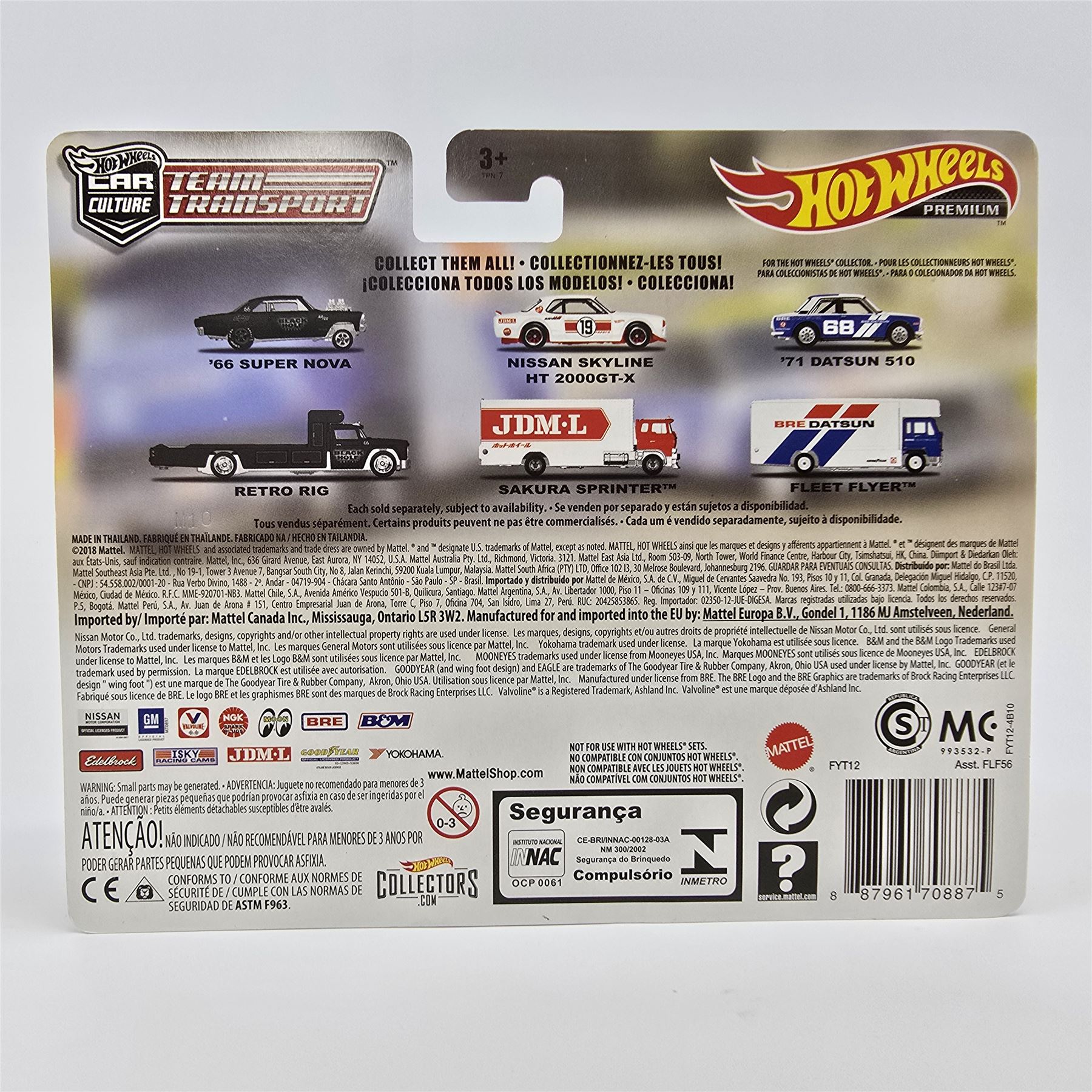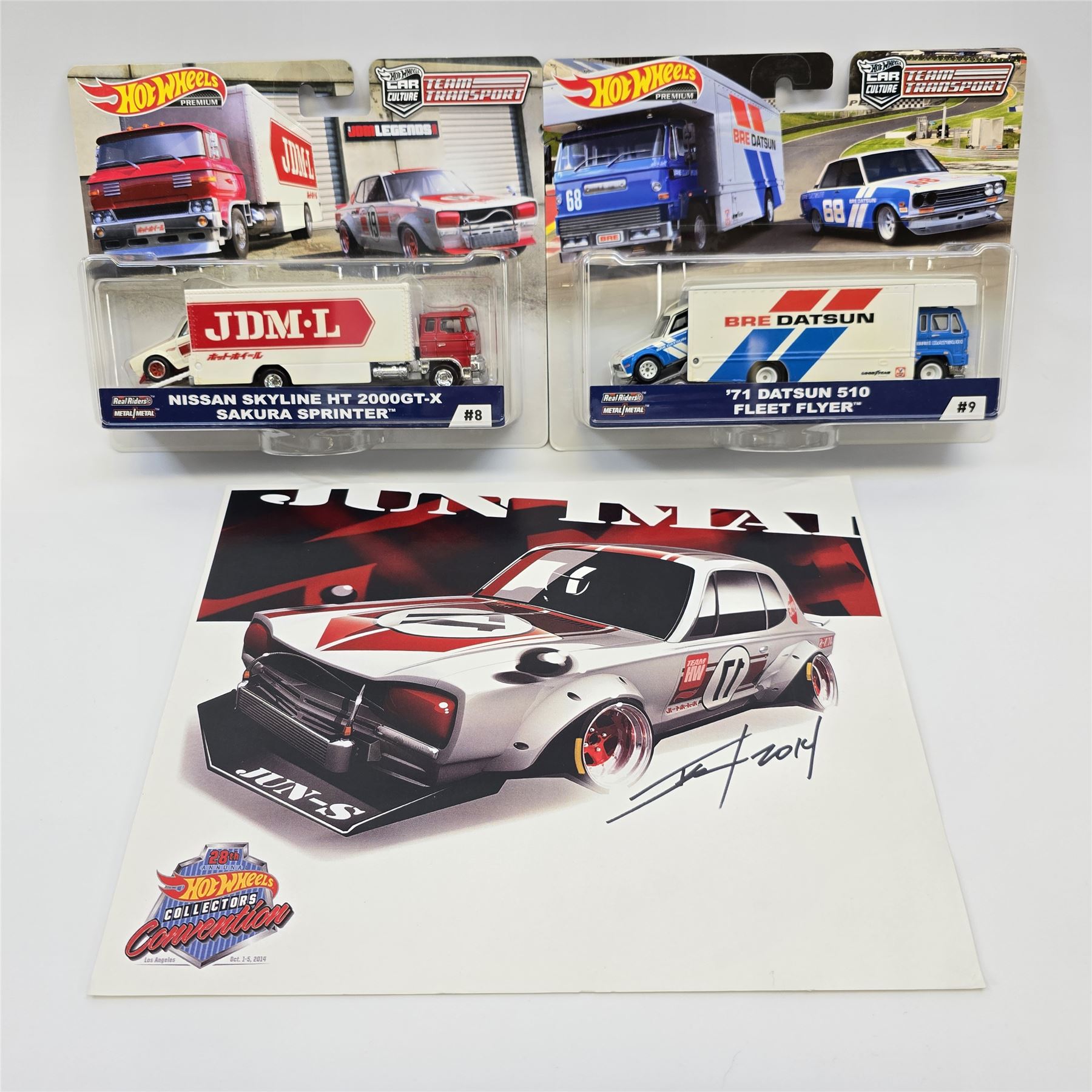2019 Hot Wheels Team Transports #8 & amp; #9 + Jun Imai E-Sheet, Nissan Skyline HT 2000GT-X/Sakura Sprinter and '71 Datsun 510/Fleet Flyer