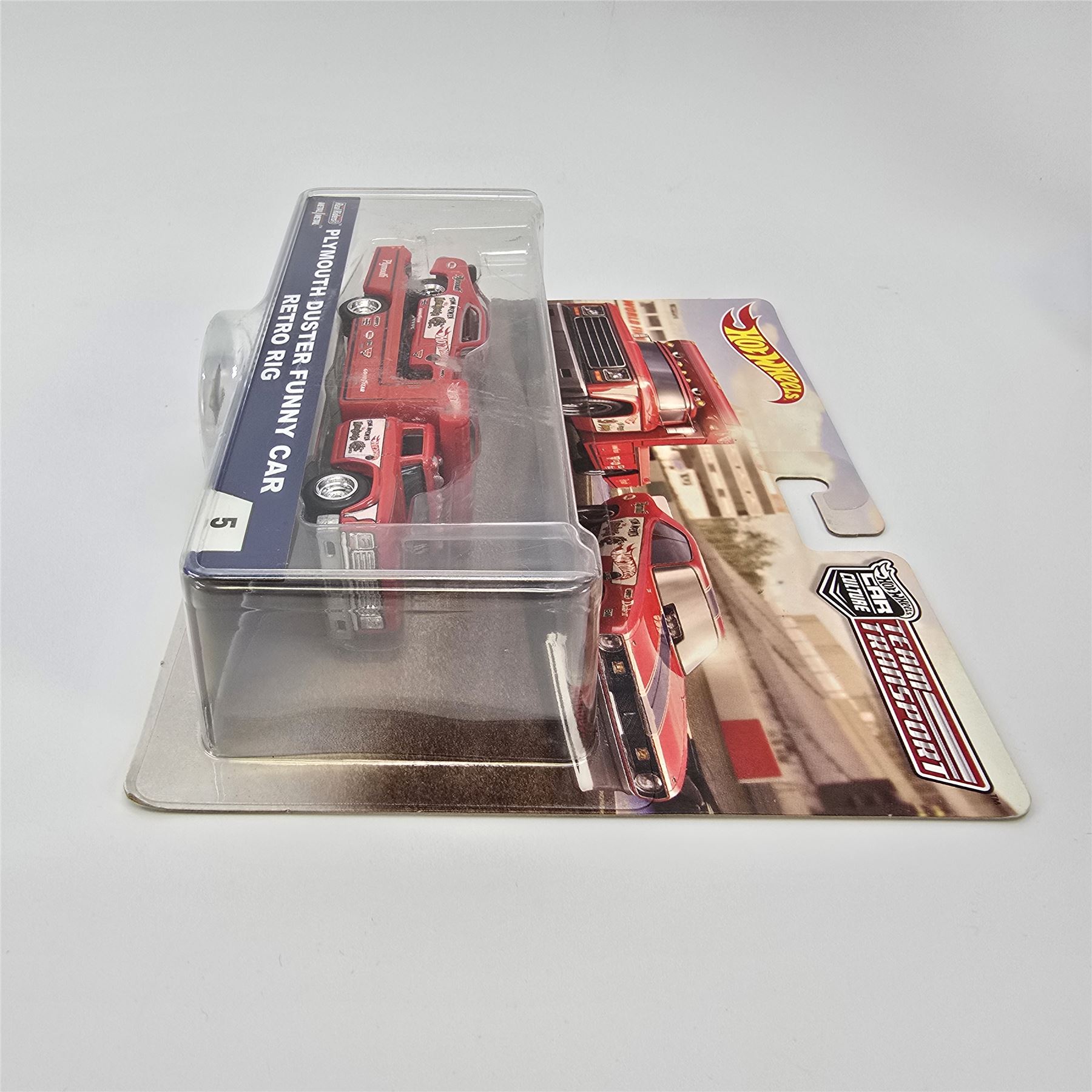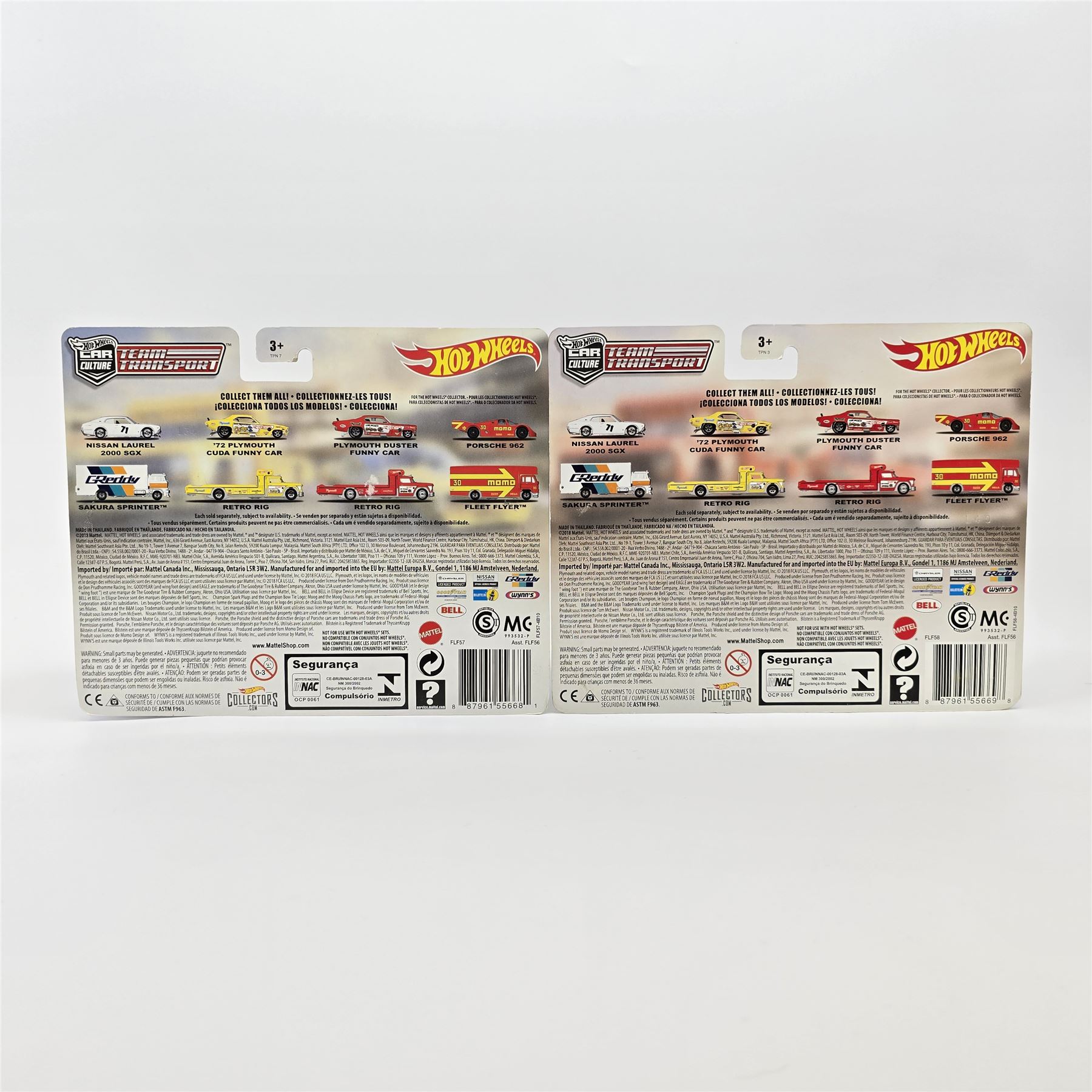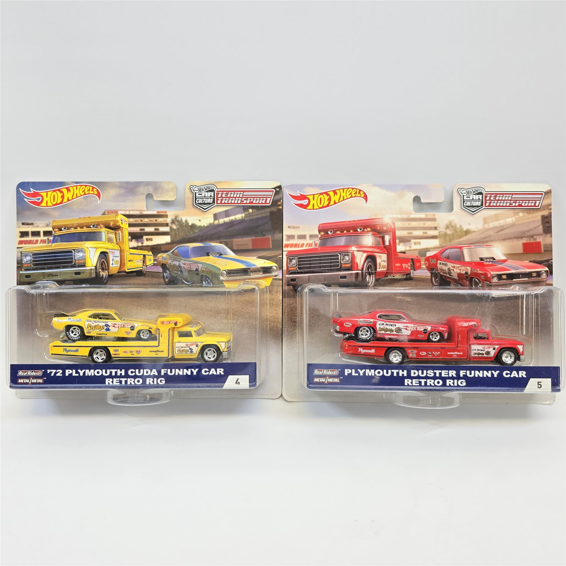 2018 Hot Wheels Team Transports #4 & amp; #5, '72 Plymouth Cuda Funny Car & quot;Snake& quot;/Retro Rig and Plymouth Duster Funny Car & quot;Mongoose& quot;/Retro Rig