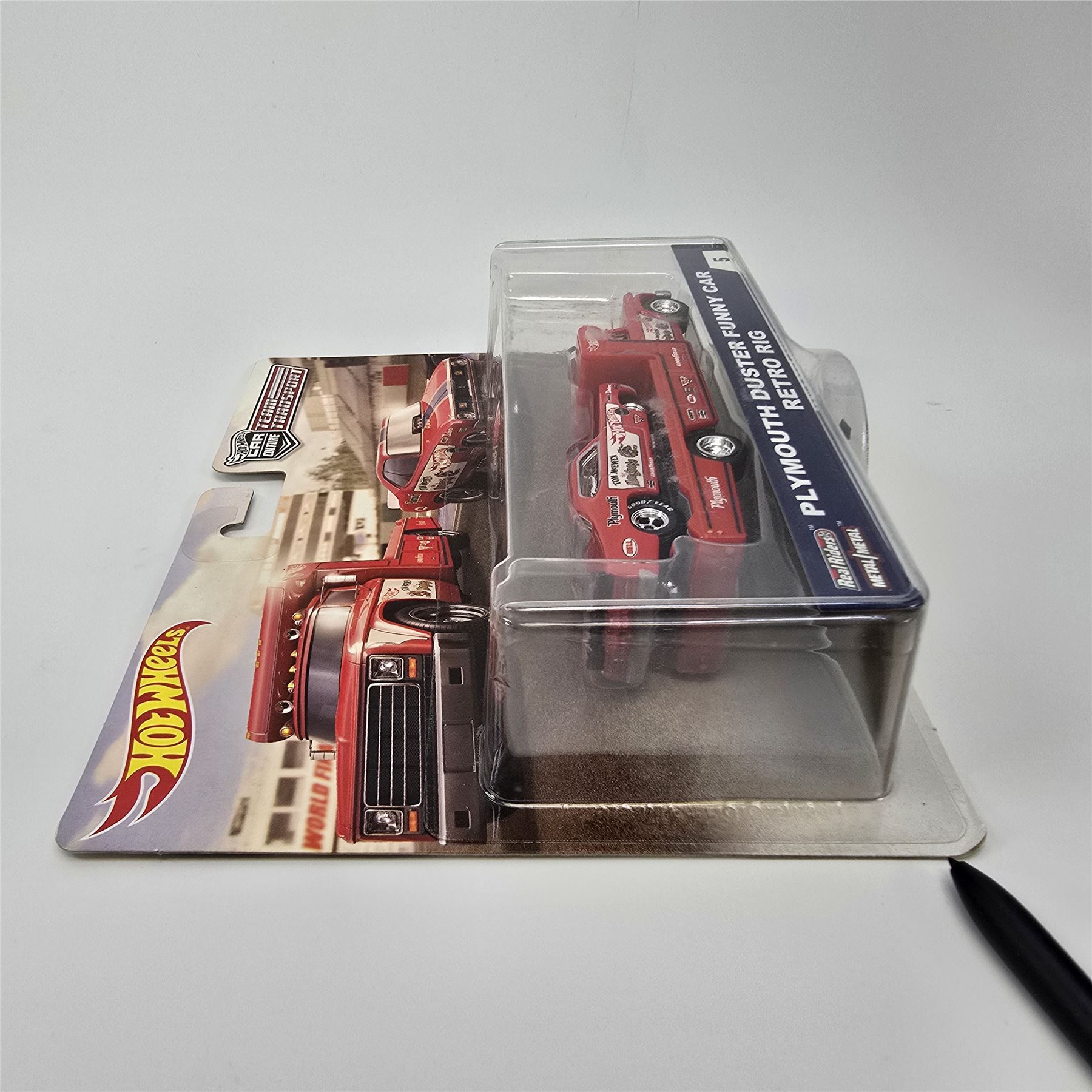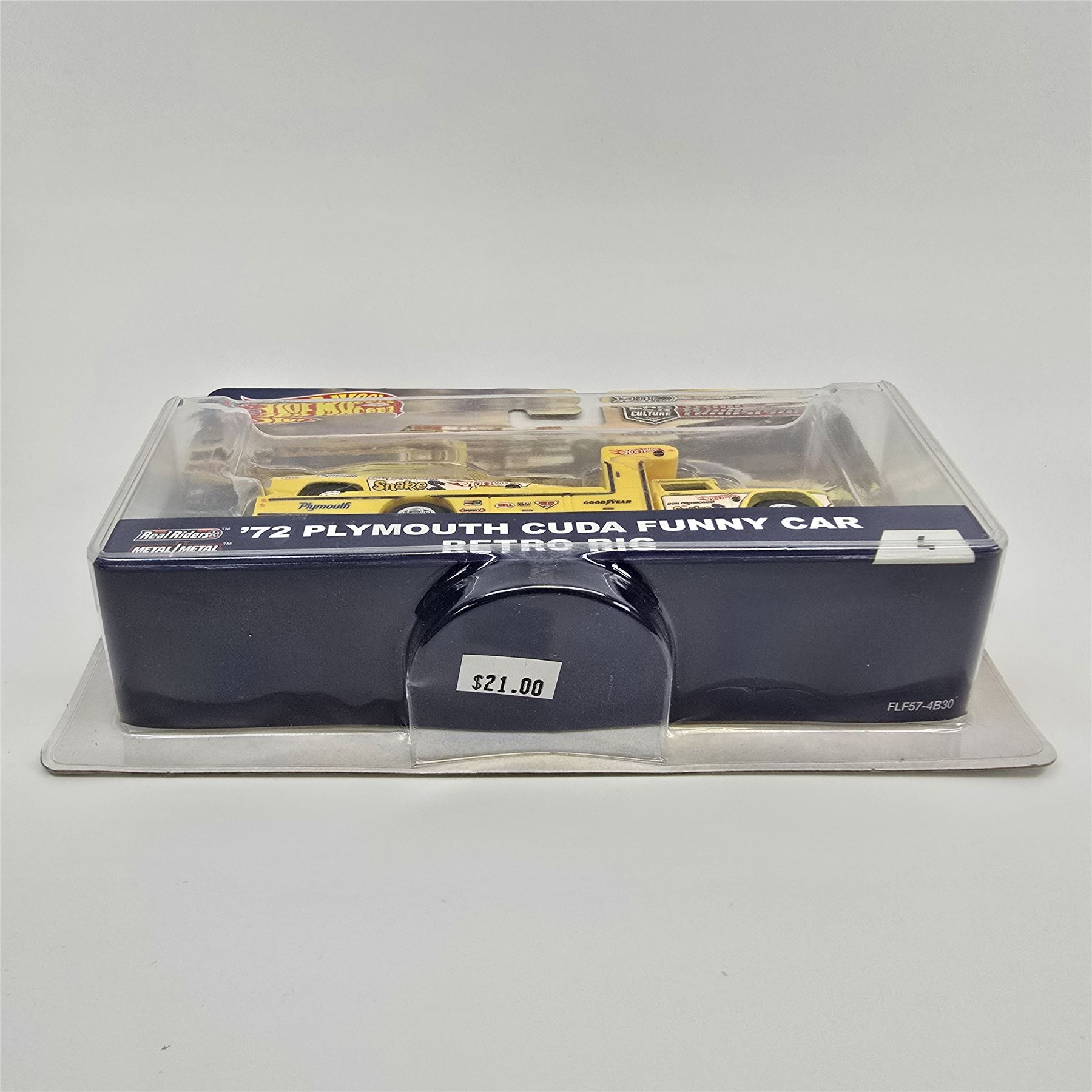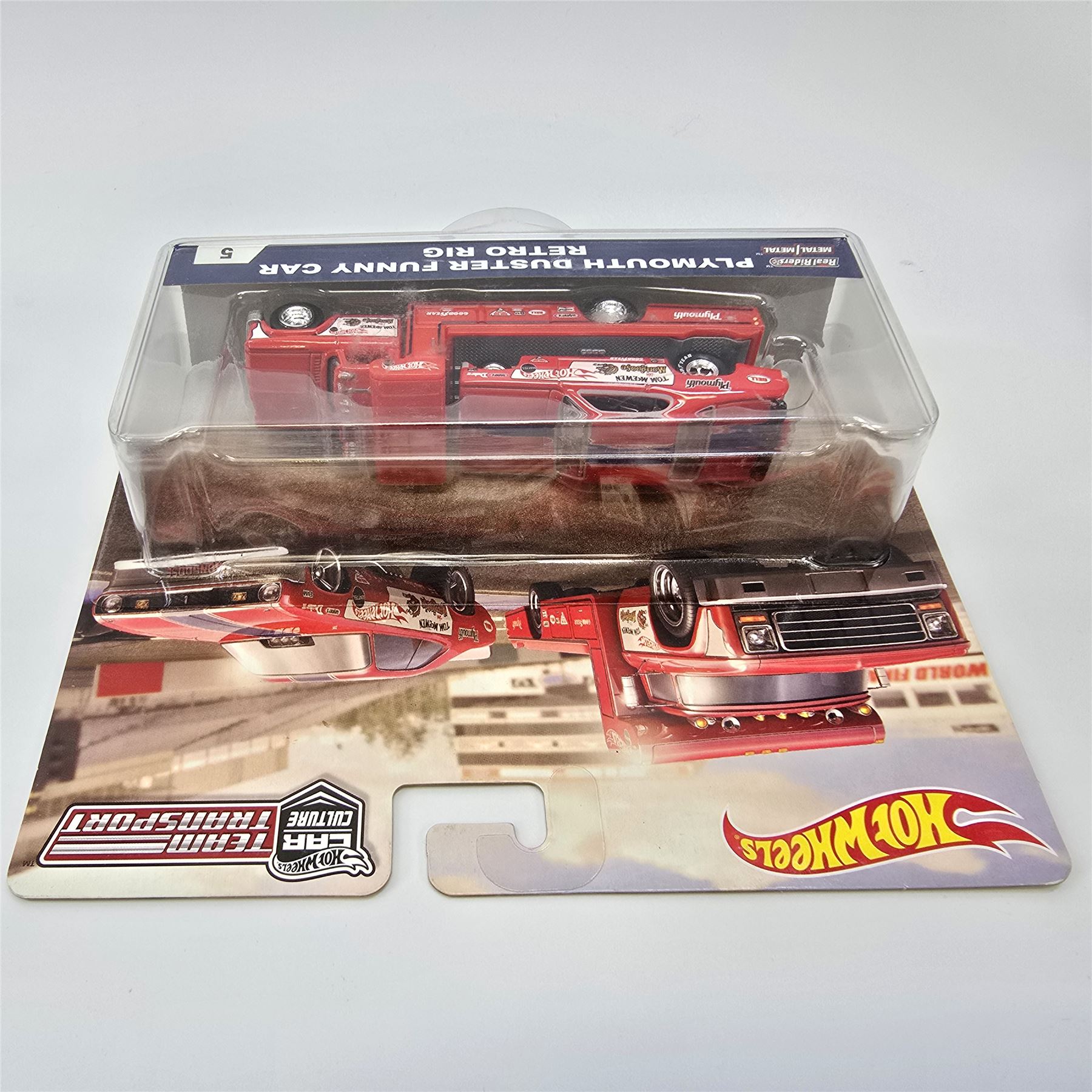 2018 Hot Wheels Team Transports #4 & amp; #5, '72 Plymouth Cuda Funny Car & quot;Snake& quot;/Retro Rig and Plymouth Duster Funny Car & quot;Mongoose& quot;/Retro Rig