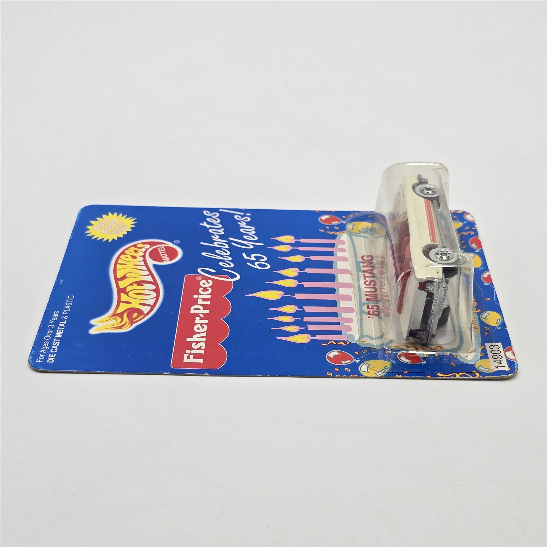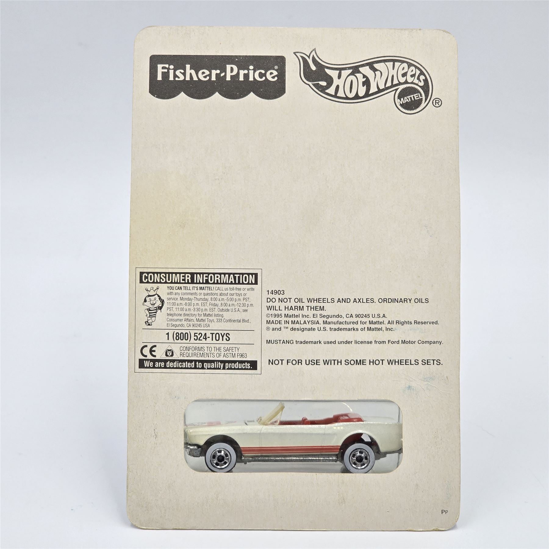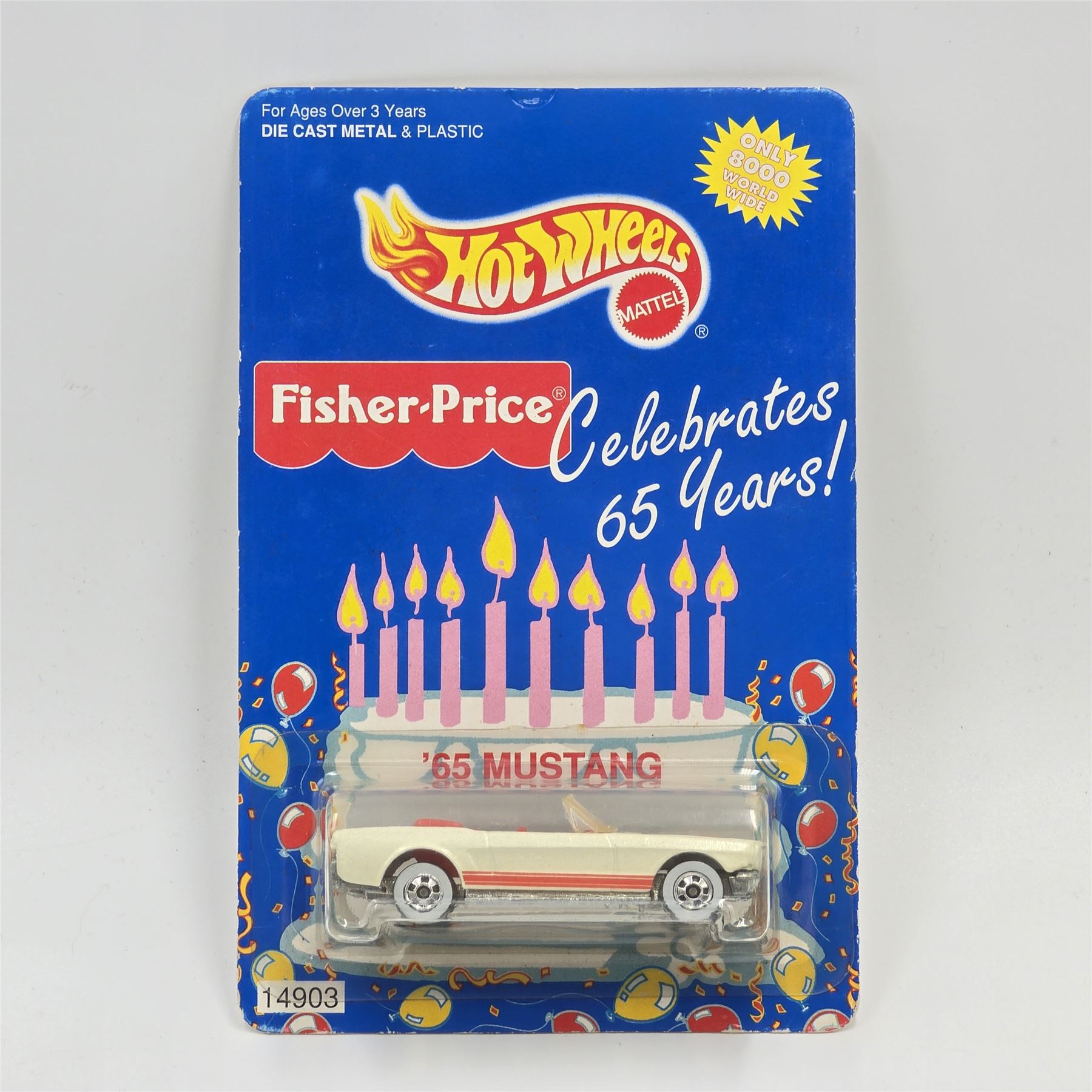 Hot Wheels Fisher Price white 65 Mustang Convertible, car is factory unspun, still sealed in blister