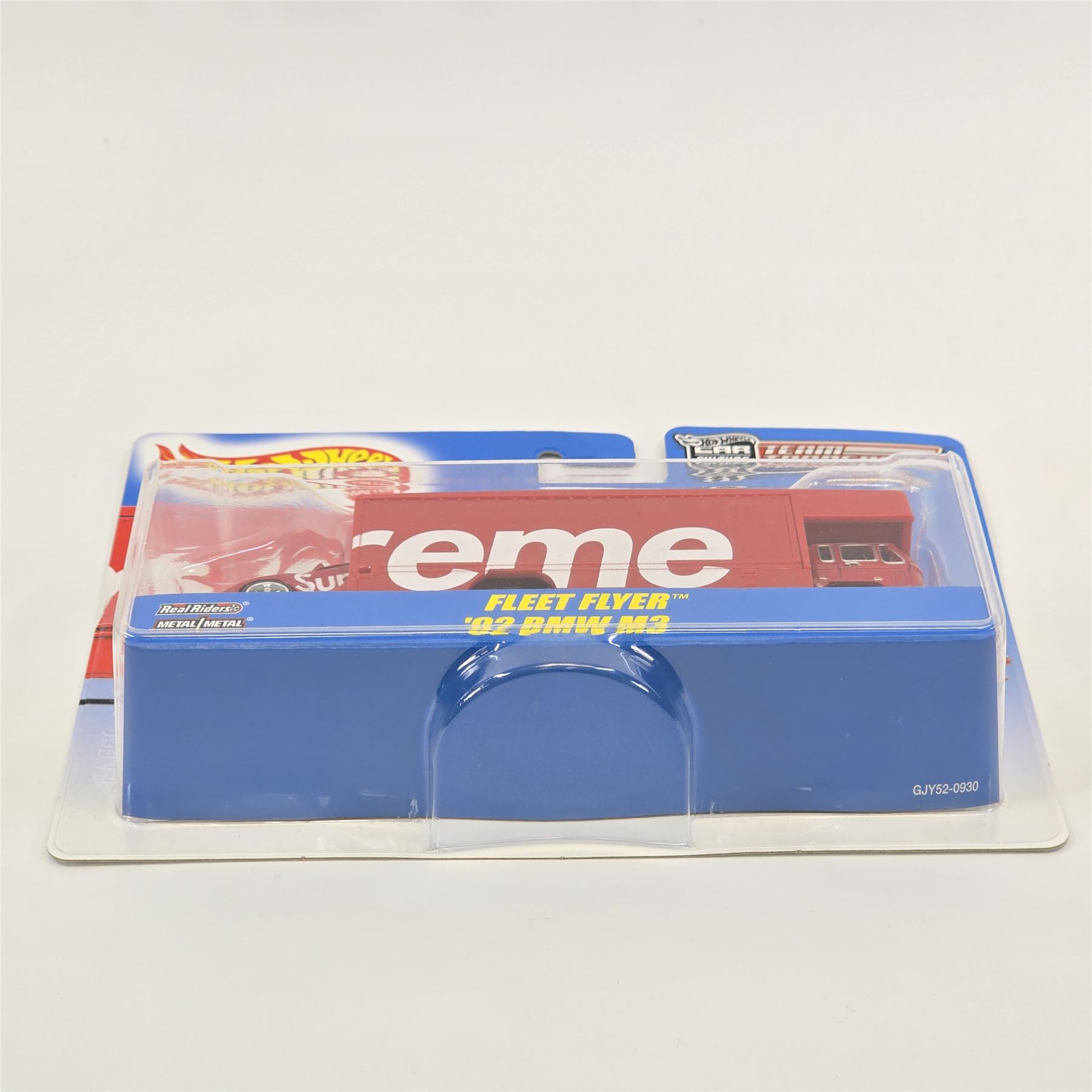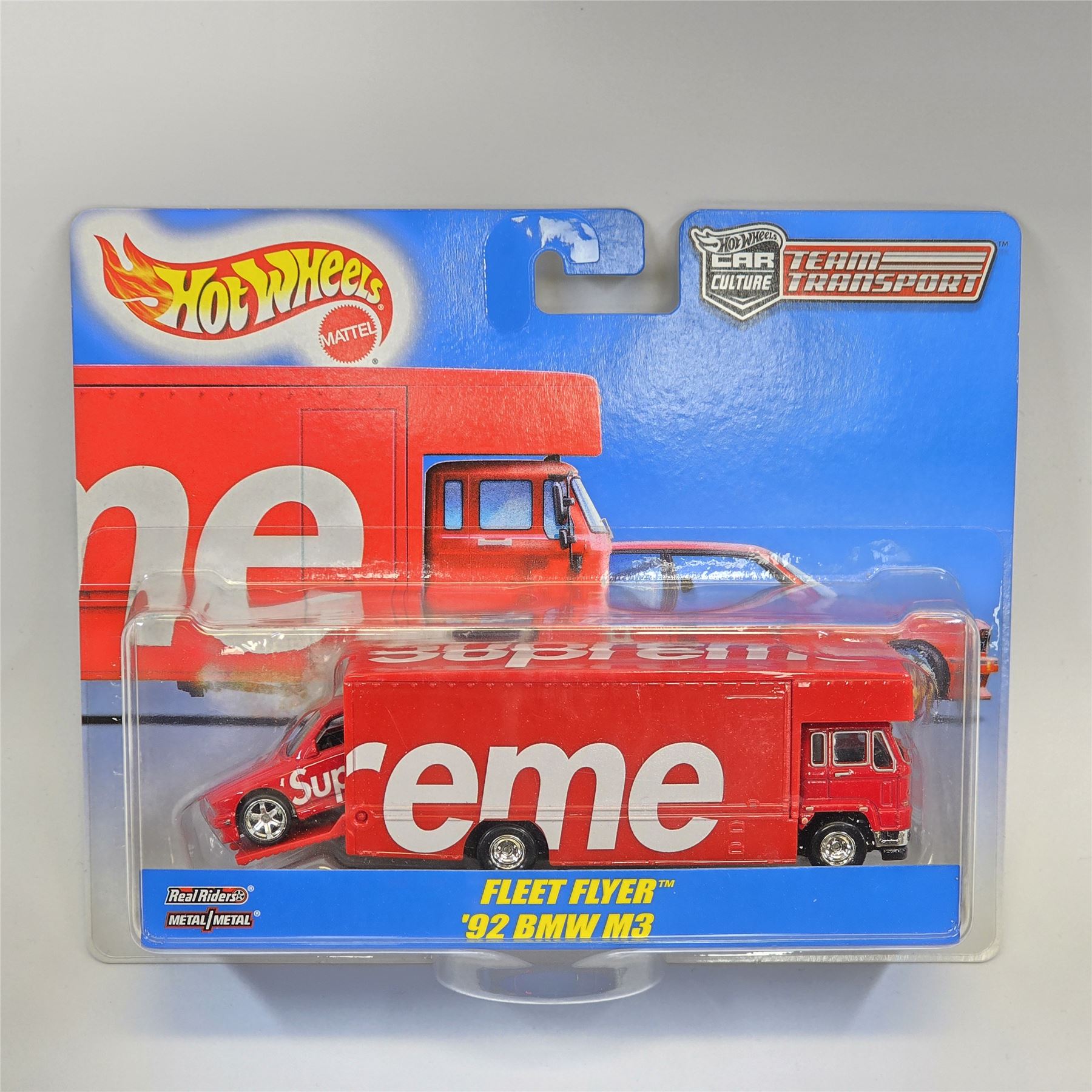 2019 Hot Wheels Car Culture: Team Transport X Supreme Collaboration Fleet Flyer & amp; 92 BMW M3 both in Red & amp; White Supreme deco
