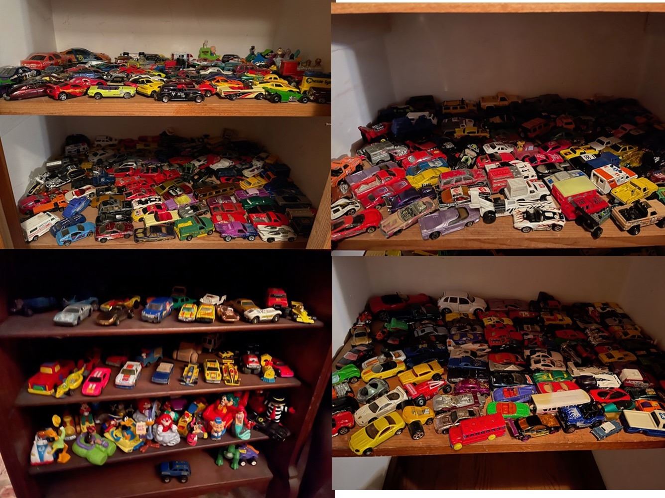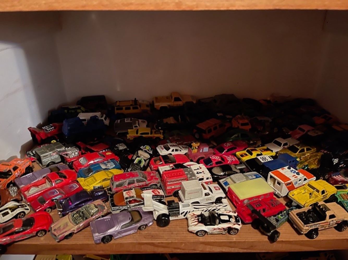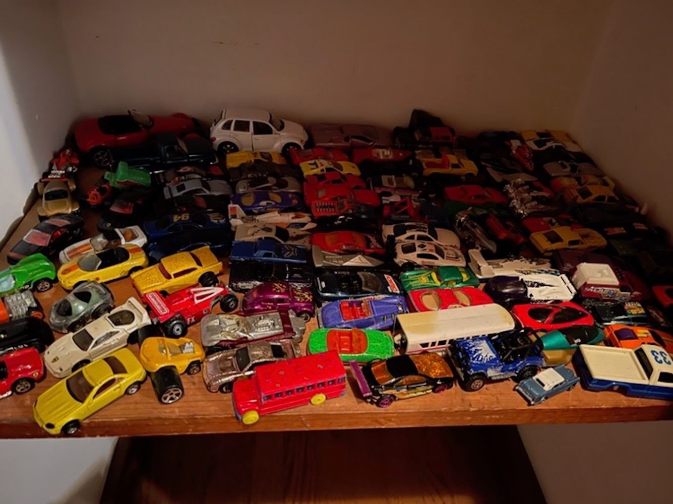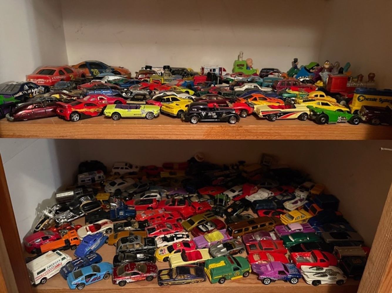7 Shelves full of Hot Wheels and Matchbox cars, all from the lifetime collection, being sold for one money