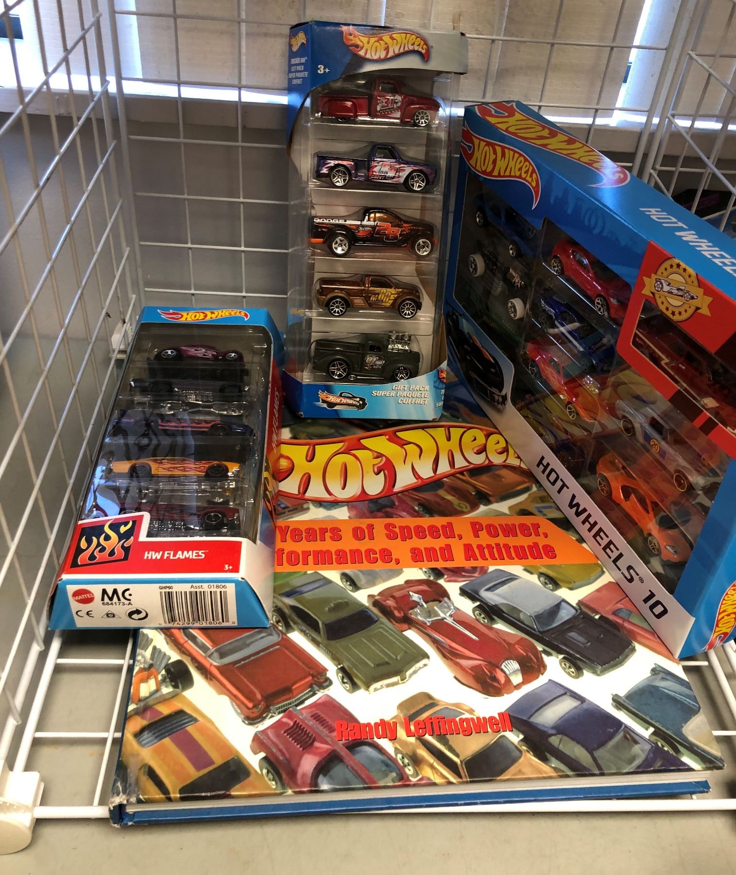Hot Wheels hardcover coffee table book with Hot Wheels 10 multi pack and two 5 packs