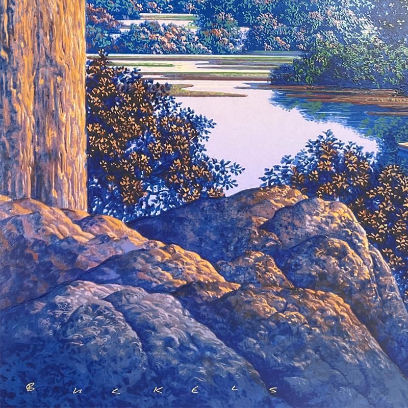 "Hotel De L'ecluse" is a limited edition printer's proof serigraph on clayboard by Jim Buckels, numbered 1/10 and hand signed by the artist. Includes Letter of Authenticity. Measures approx. 24.5" x 30.5" (image).