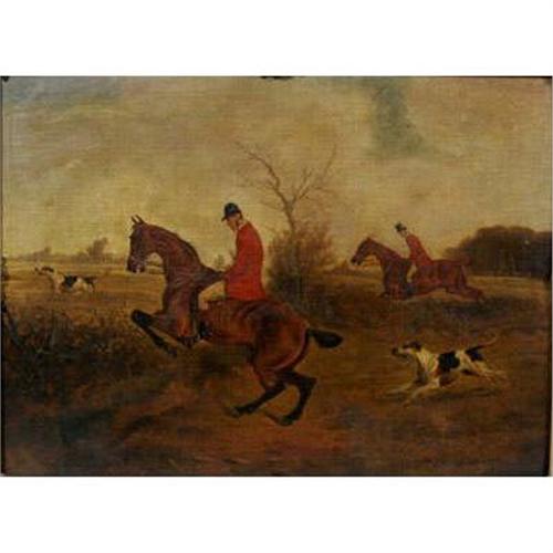 Huntsmen and Hounds taking a ditch by Edward Benjamin Herberte </em></td>