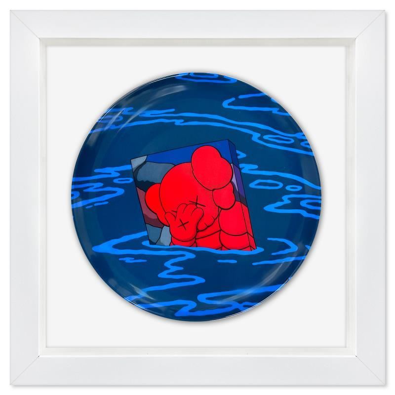 "Hours, Nights, Weeks, Months" is a limited edition fine bone china plate by KAWS. This plate is custom framed and floated on linen. Measures approx. 15.5" x 15.5" (frame), 10.5" (plate diameter).