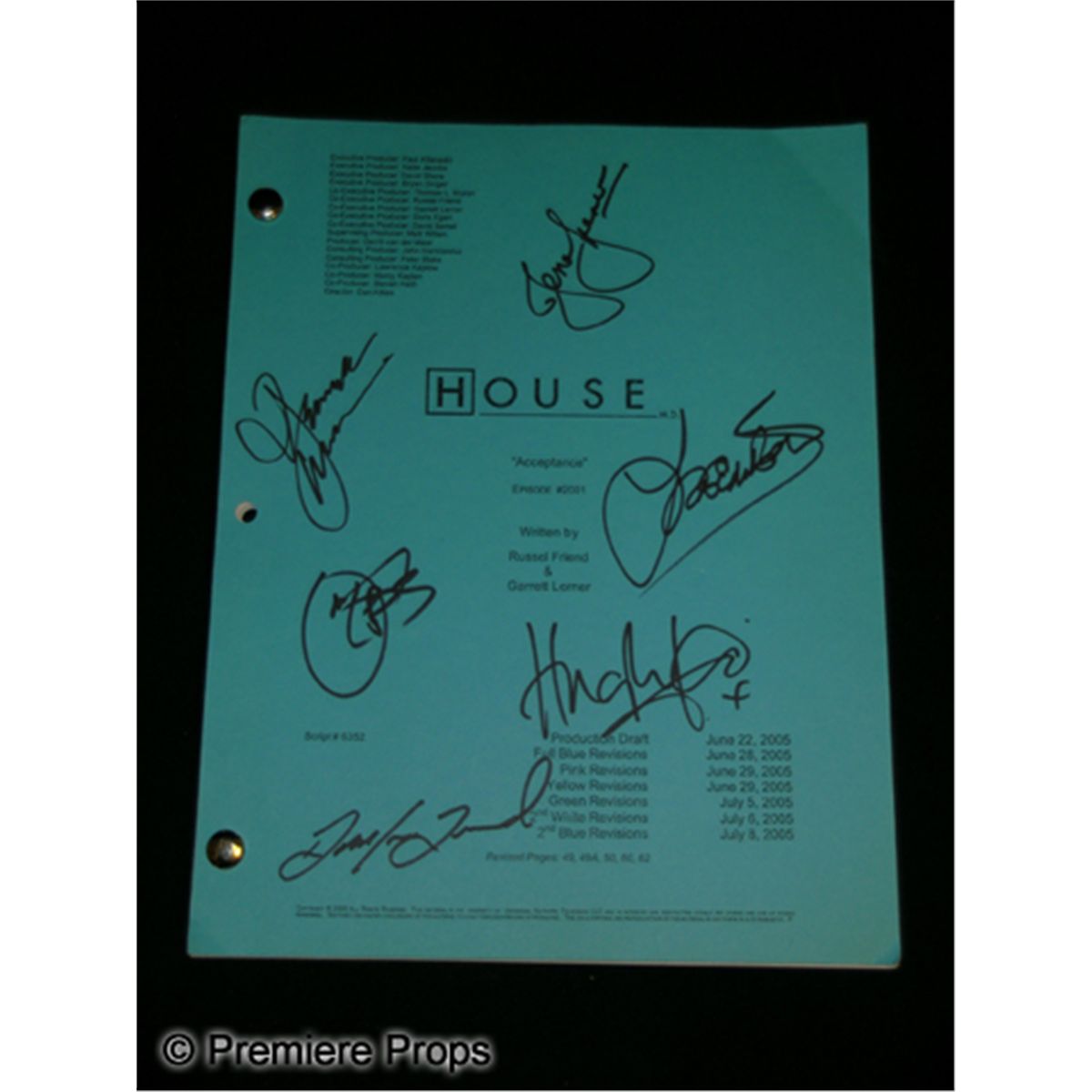 From the first episode of the second season of “HOUSE” comes this cast autographed production script and tennis ball, which can often be seen on the desk in House’s office! The script has been signed by Hugh Laurie (Gregory House), Lisa Edelstein (Lisa Cuddy), Omar Epps (Eric Foreman), Robert Sean Leonard (James Wilson), Jennifer Morrison (Allison Cameron) and Jesse Spencer (Robert Chase). Purchased in a charity auction for the National Coalition Against Domestic Violence.