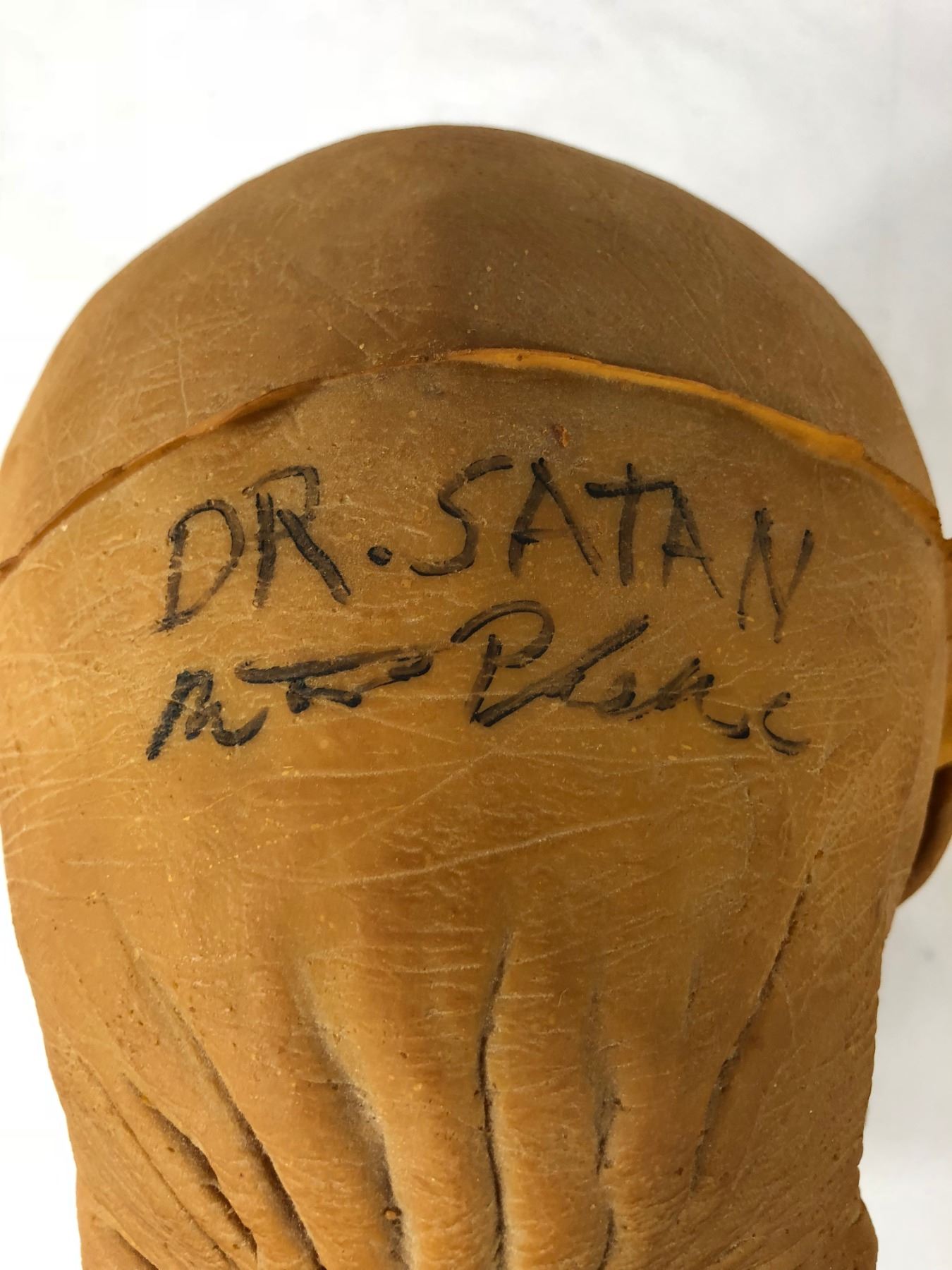 Unused head casting of "Dr. Satan", played by Walter Phelan in the Rob Zombie directed exploitation horror production of House of 1000 Corpses (2003), where two young couples traveling across the backwoods of Texas searching for urban legends of murder end up as prisoners of a bizarre and sadistic backwater family of serial killers.