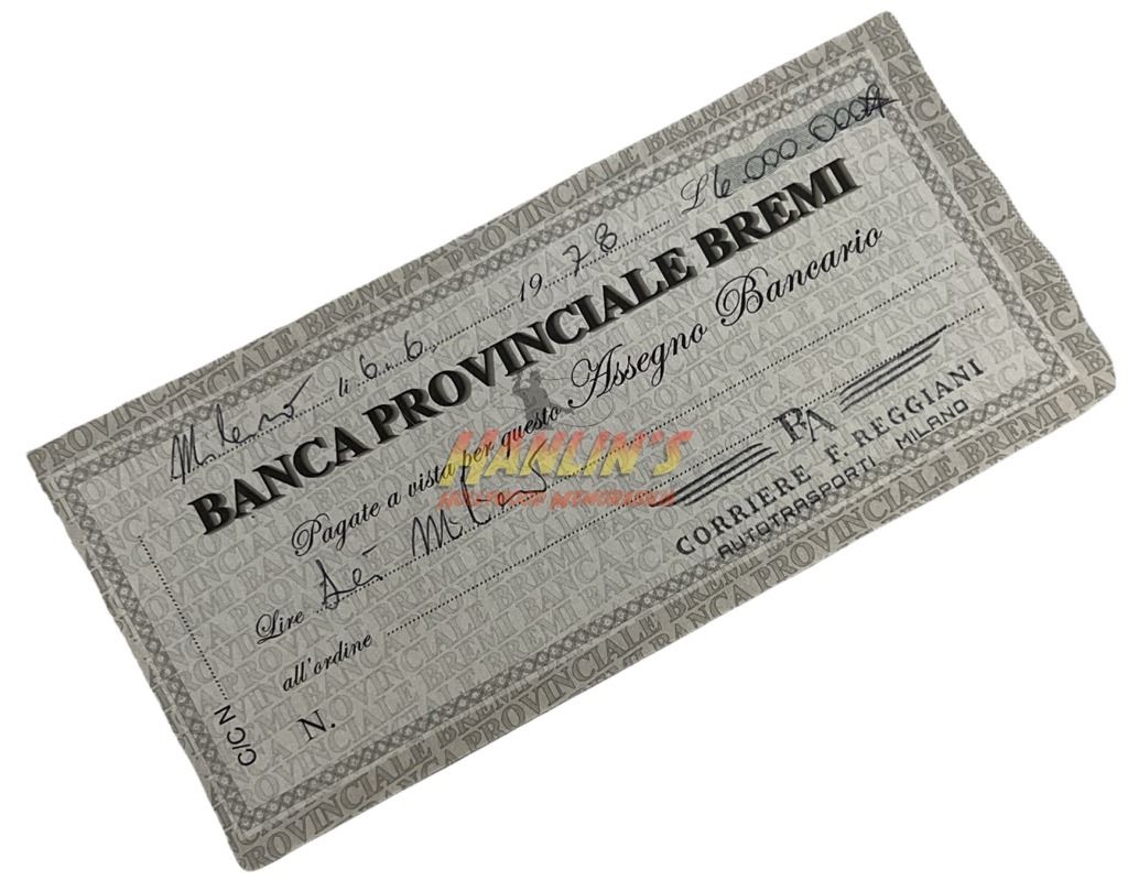 Original prop bank check filled out in her own hand for "Patrizia Teggiani", played by Lady Gaga in the production of the Ridley Scott directed biographical crime drama film 'House of Gucci' (2021), which follows Patrizia Reggiani (Lady Gaga) and Maurizio Gucci (Adam Driver), as their romance transforms into a fight for control of the Italian fashion brand Gucci.