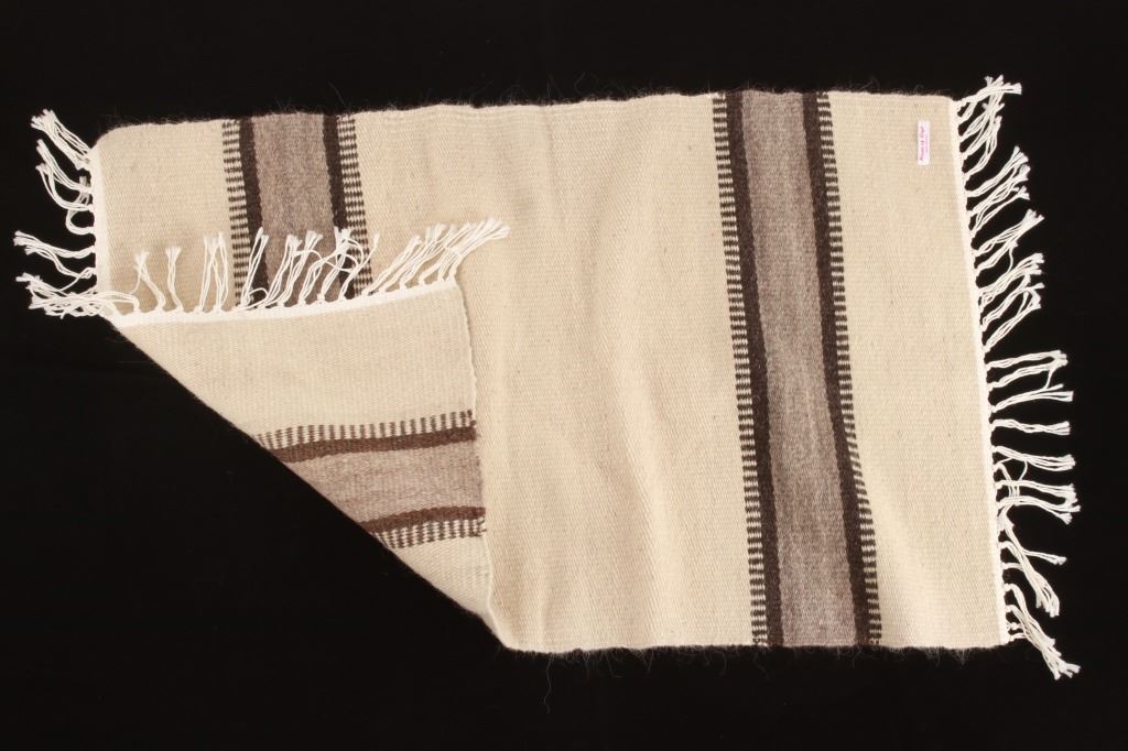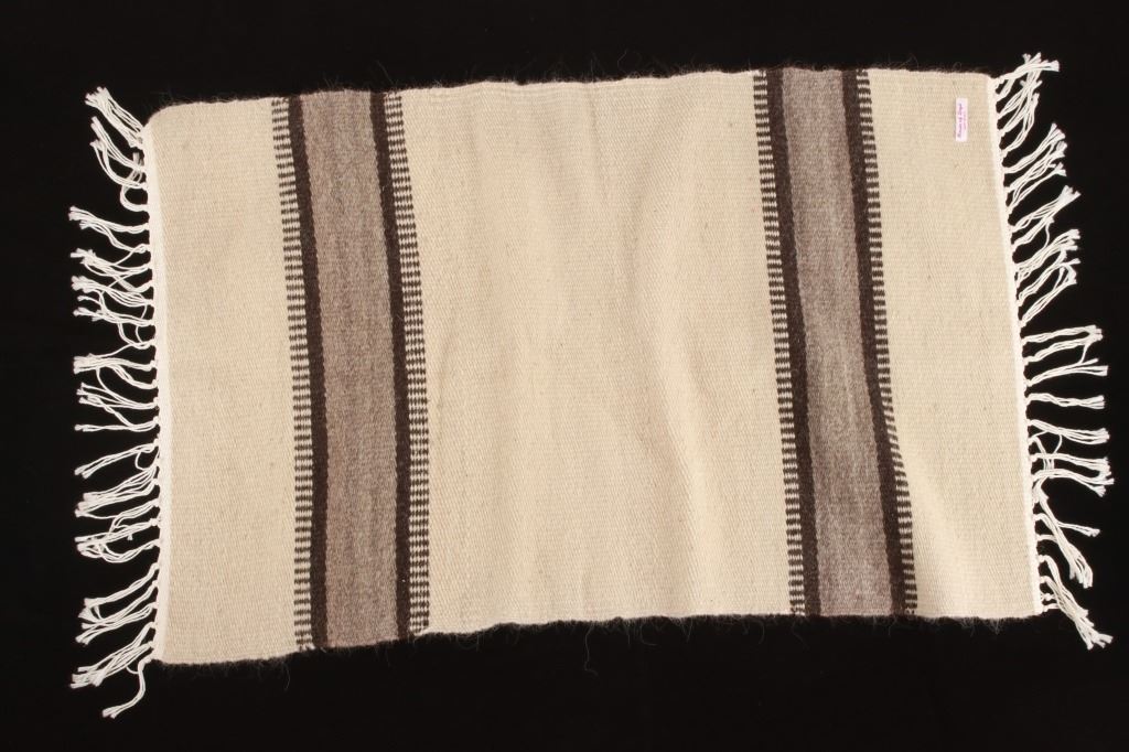 Featured in this lot is this House of Loyd hand woven Zapotec style Saltillo rug circa mid 1900's. This a beautifully hand woven Zapotec style Saltillo from the company House of Loyd, that shows a cream field with a stepped band that includes colors such as dark brown and grey. The condition of this rug is good with no obvious signs of damage and in good overall condition. The measurements of this rug are 41" x 25 1/4".