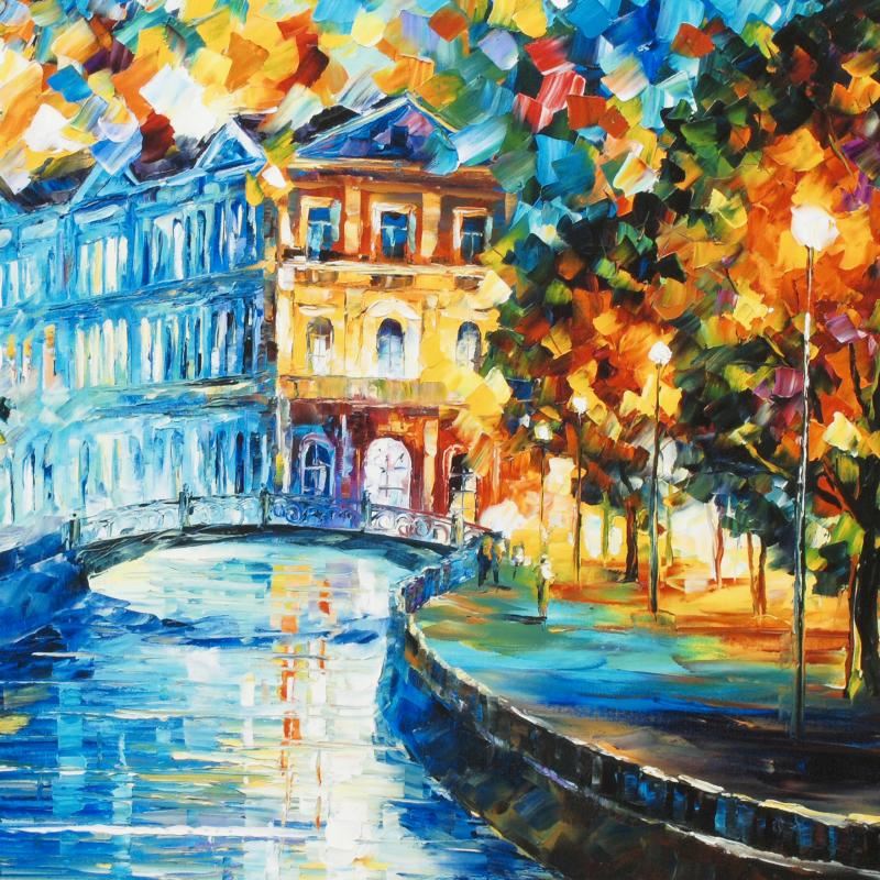 Leonid Afremov's masterful use of color and texture make his paintings unique collectibles that are sure to brighten any wall. "House on the Hill" is a limited edition giclee on stretched canvas, numbered and bears Afremov's authorized signature. This piece comes gallery wrapped and ready to hang. Includes Certificate of Authenticity! Measures approx. 24" x 18" (image).