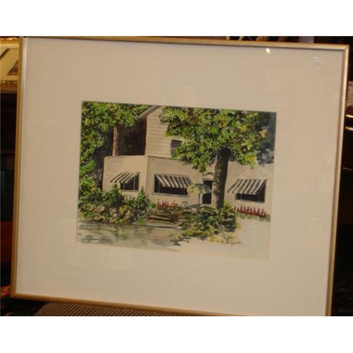 House with Awnings. Possible Watercolor, Signed M. Fulginiti