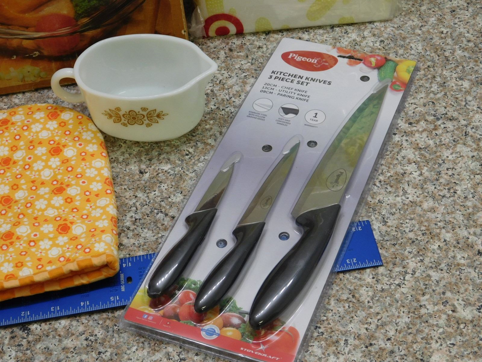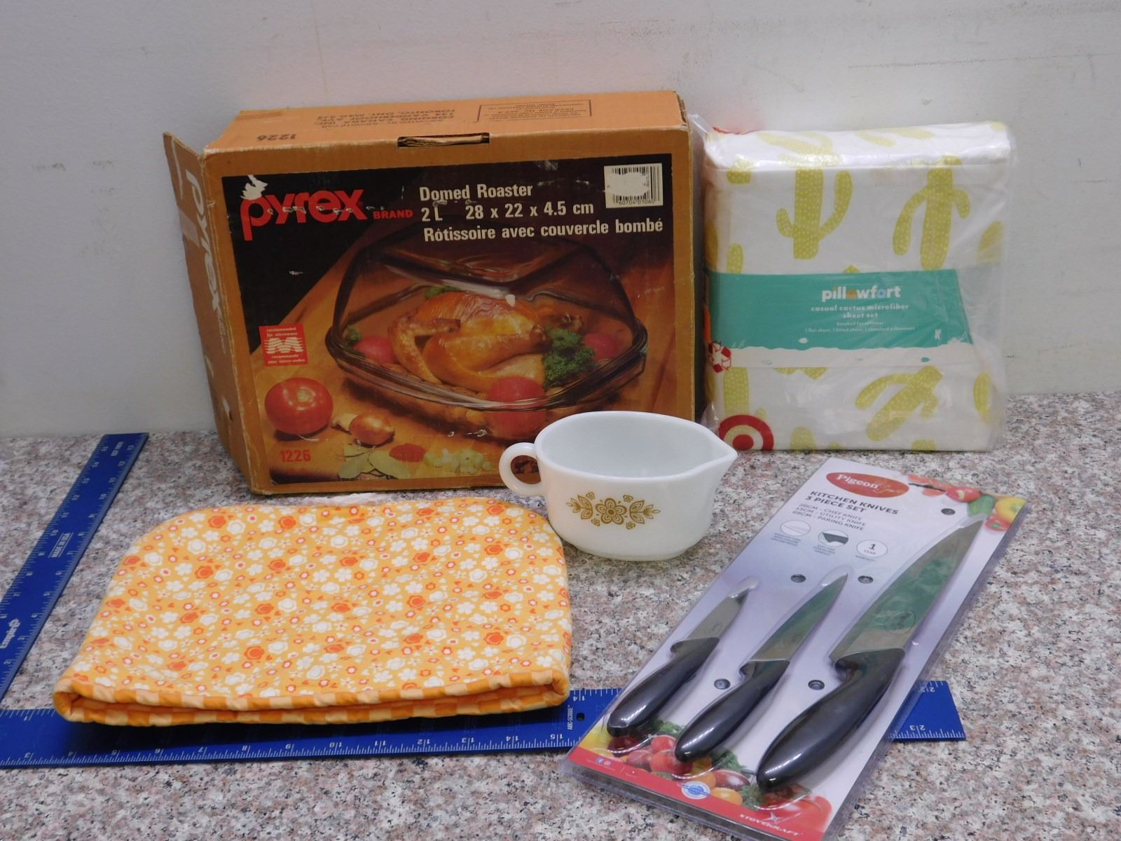 Household Turkey Dinner Bundle Lot of 5 Pcs Knife Set Roaster Dish Bedset and Serving Mitt