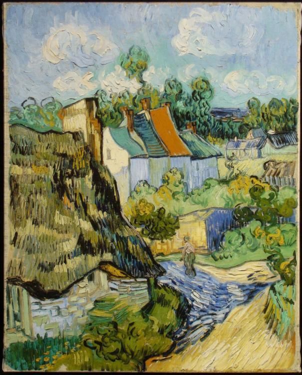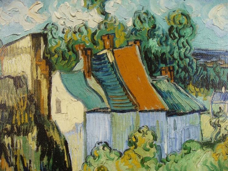 This is a Van Gogh canvas print in abstract and Impressionist styles, portraying a house in the south of France, originally done in 1890. * Artist: Vincent Van GoghTitle: Houses in AuversMedium: Print on canvas stretchedSheet Size: 14" x 18" Condition: Excellent