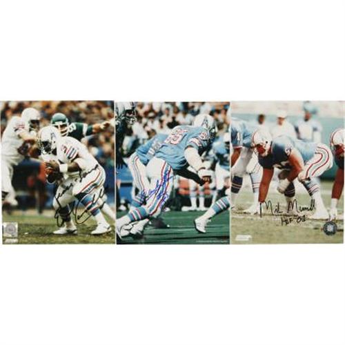 <B>Houston Oilers Hall of Famers Signed Photographs Lot of 3.</B></I> Trio of Hall of Fame signed 8x10" photos from former members of the Houston Oilers. Mike Munchak, Elvin Bethea and Earl Campbell are all here. <I>LOA from PSA/DNA.</B></I><BR><BR><b>Shipping:</b> Flat Material, Small (<a target="_blank" href="http://www.heritageauctions.com/common/shipping.php">view shipping information</a>)
