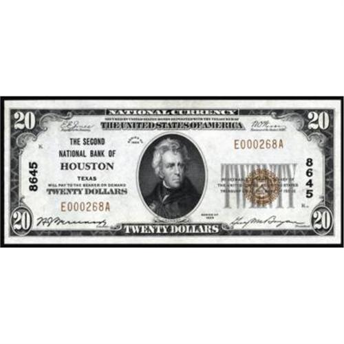 Houston, TX. $20 1929 Ty. 1. Ch #8645. CH Crisp