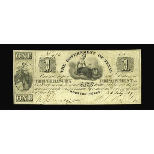 Houston, TX- Government of Texas $1 Feb. 26, 1839 Cr. H
